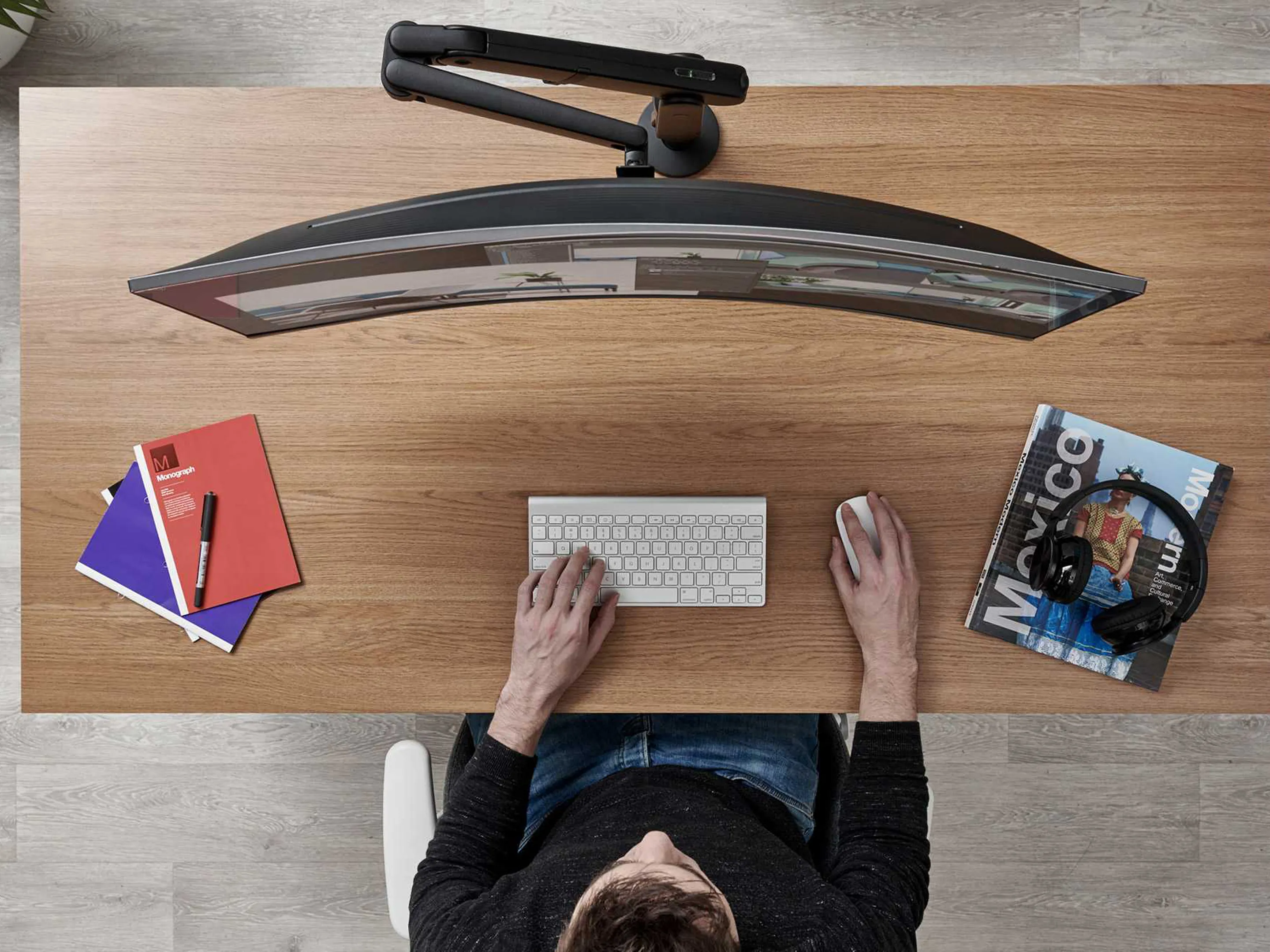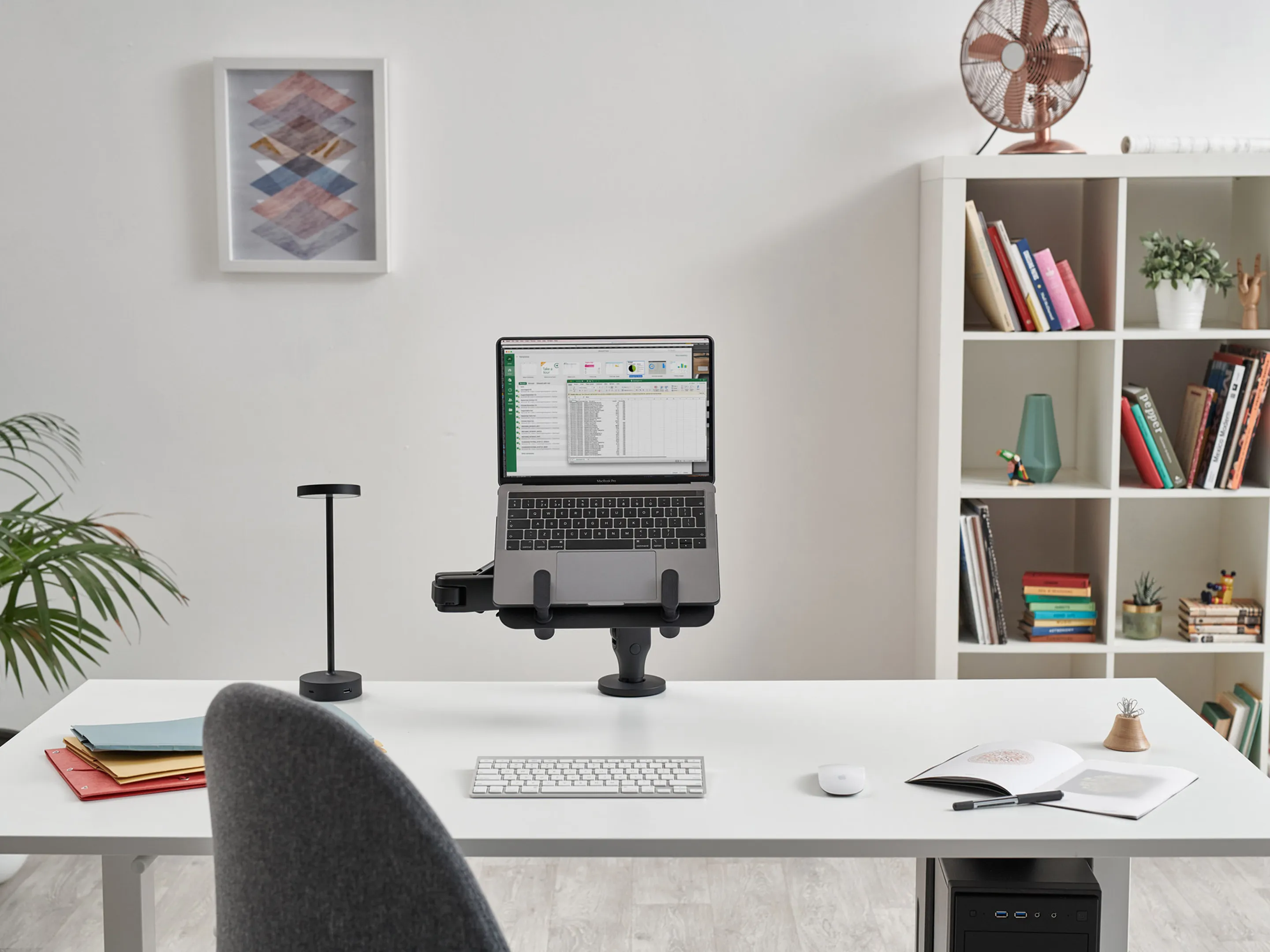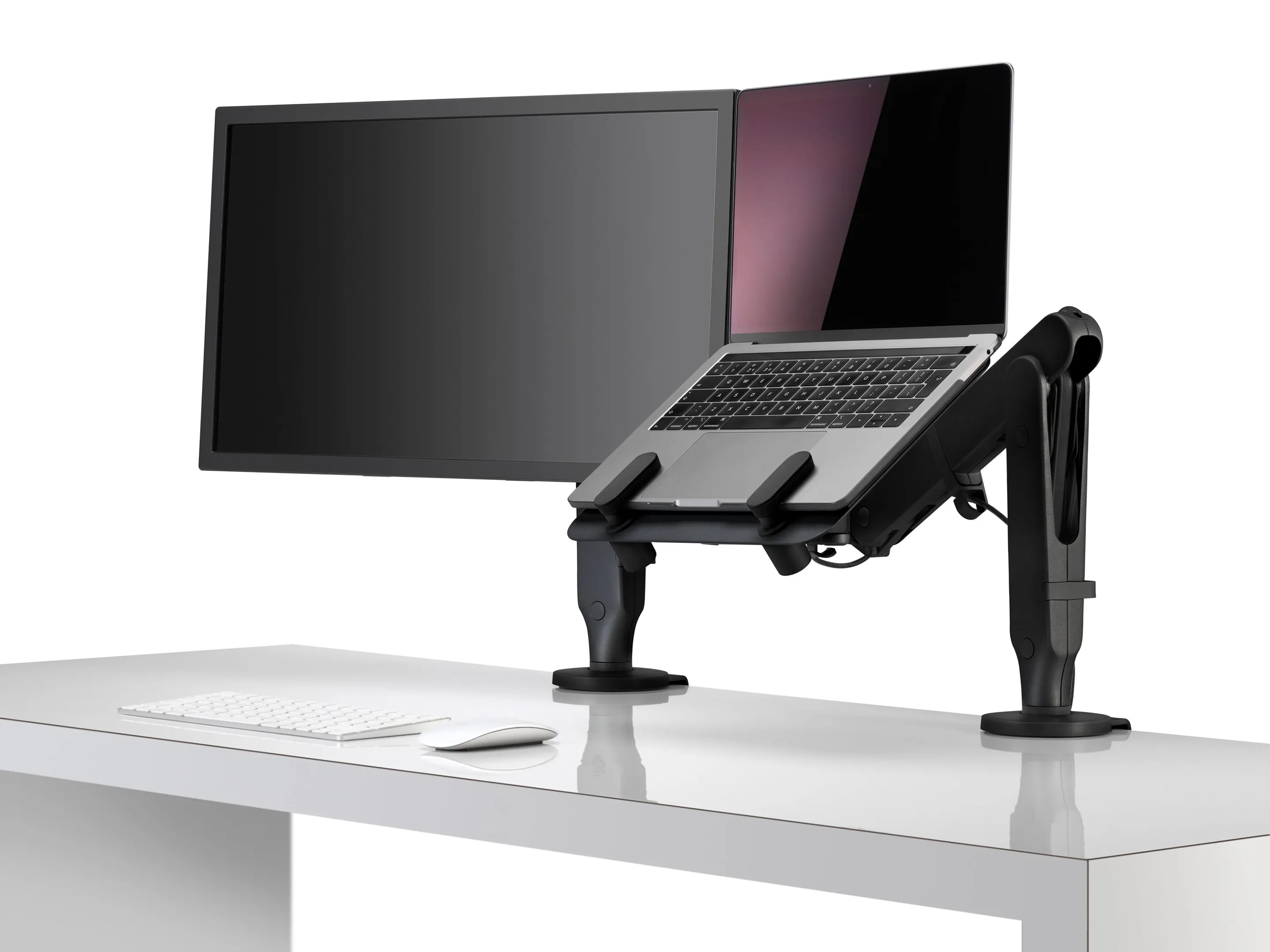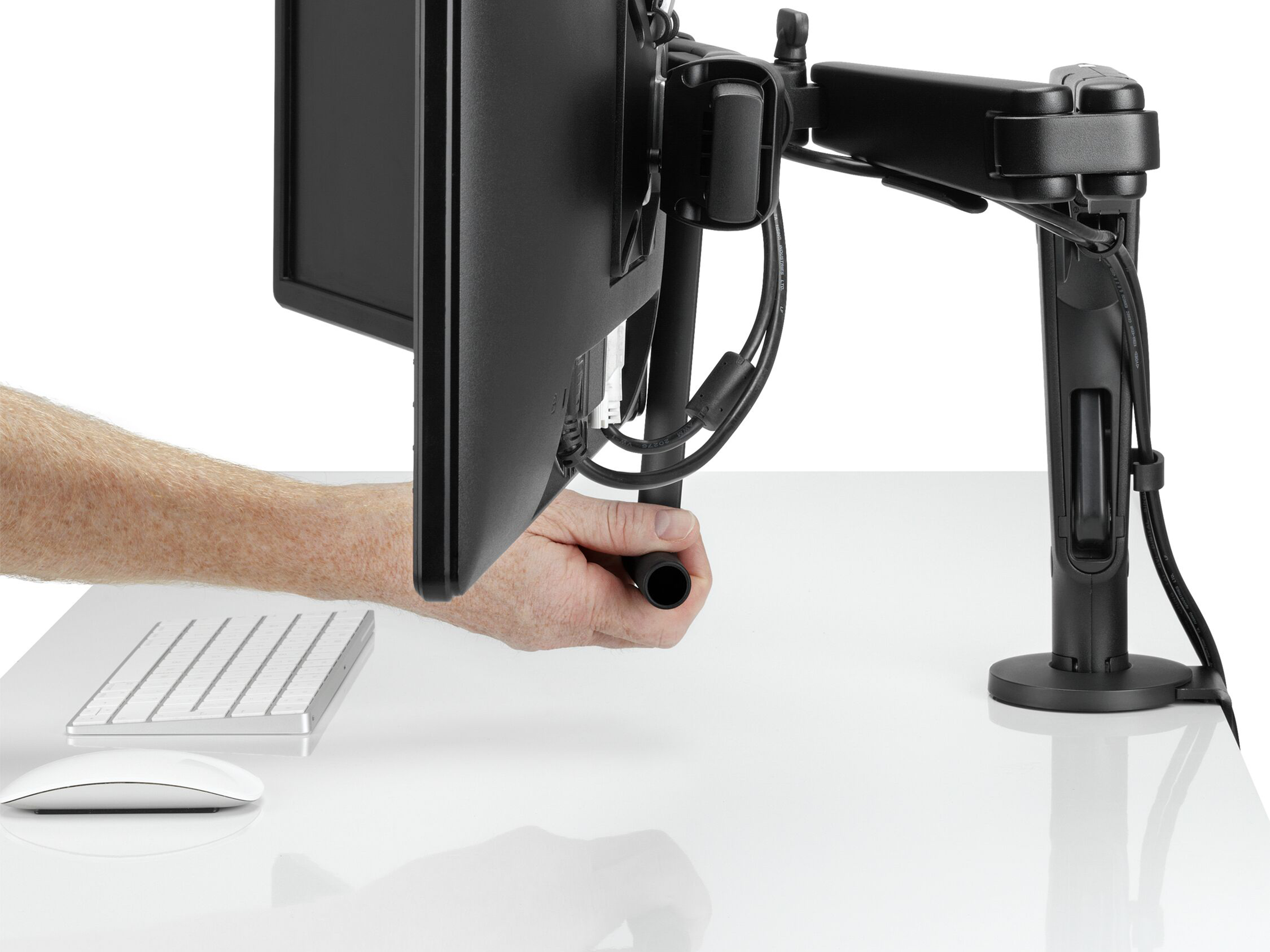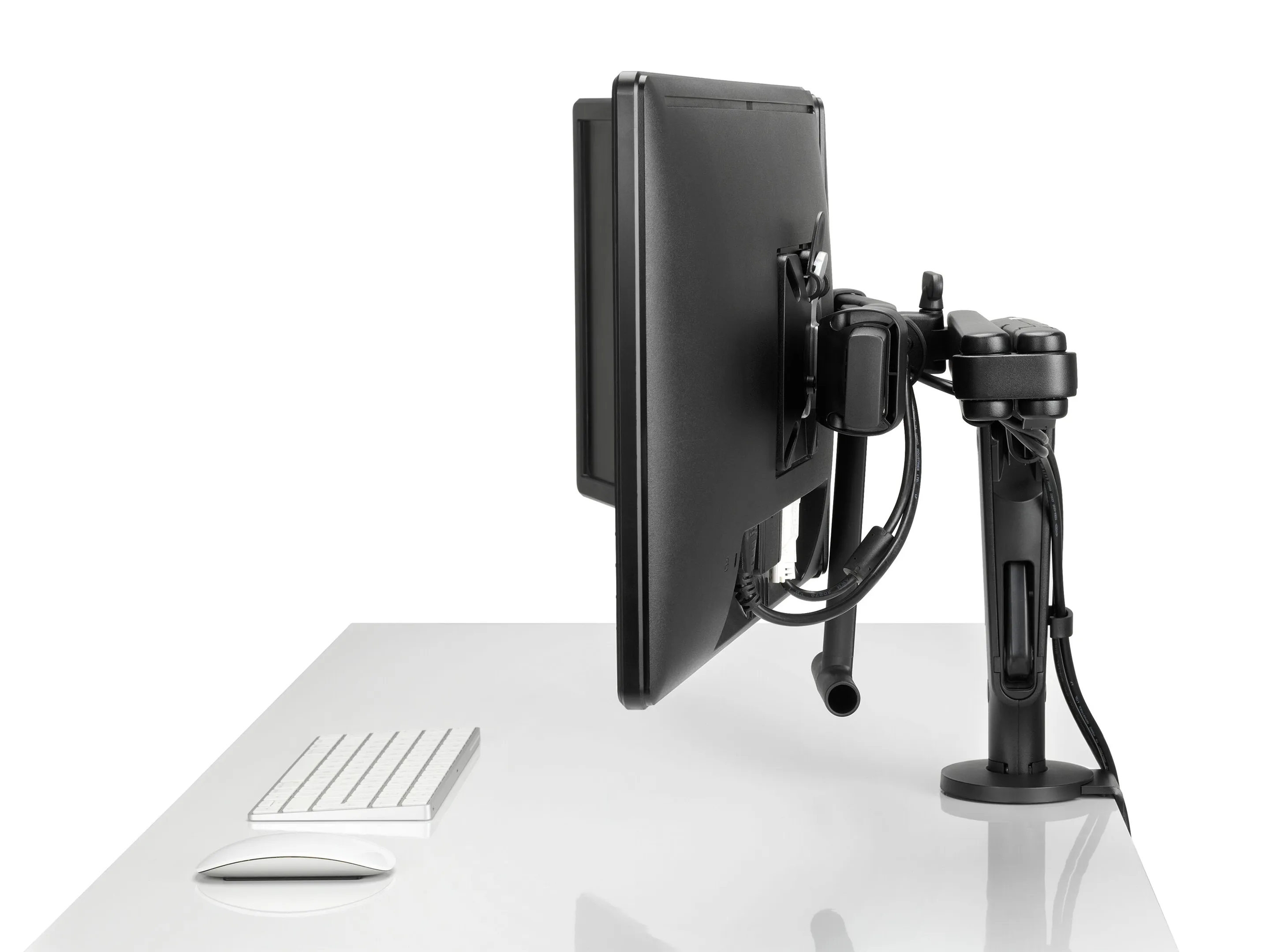 Gasveergestuurde, zeer dynamische monitorarm. Door een belastbaarheid tussen 0-9kg, zeer breed toepasbaar. Horzontaal bereik:674mm, Maximale hoogte: 508mm, Vertikaal bereik: 367mm.
