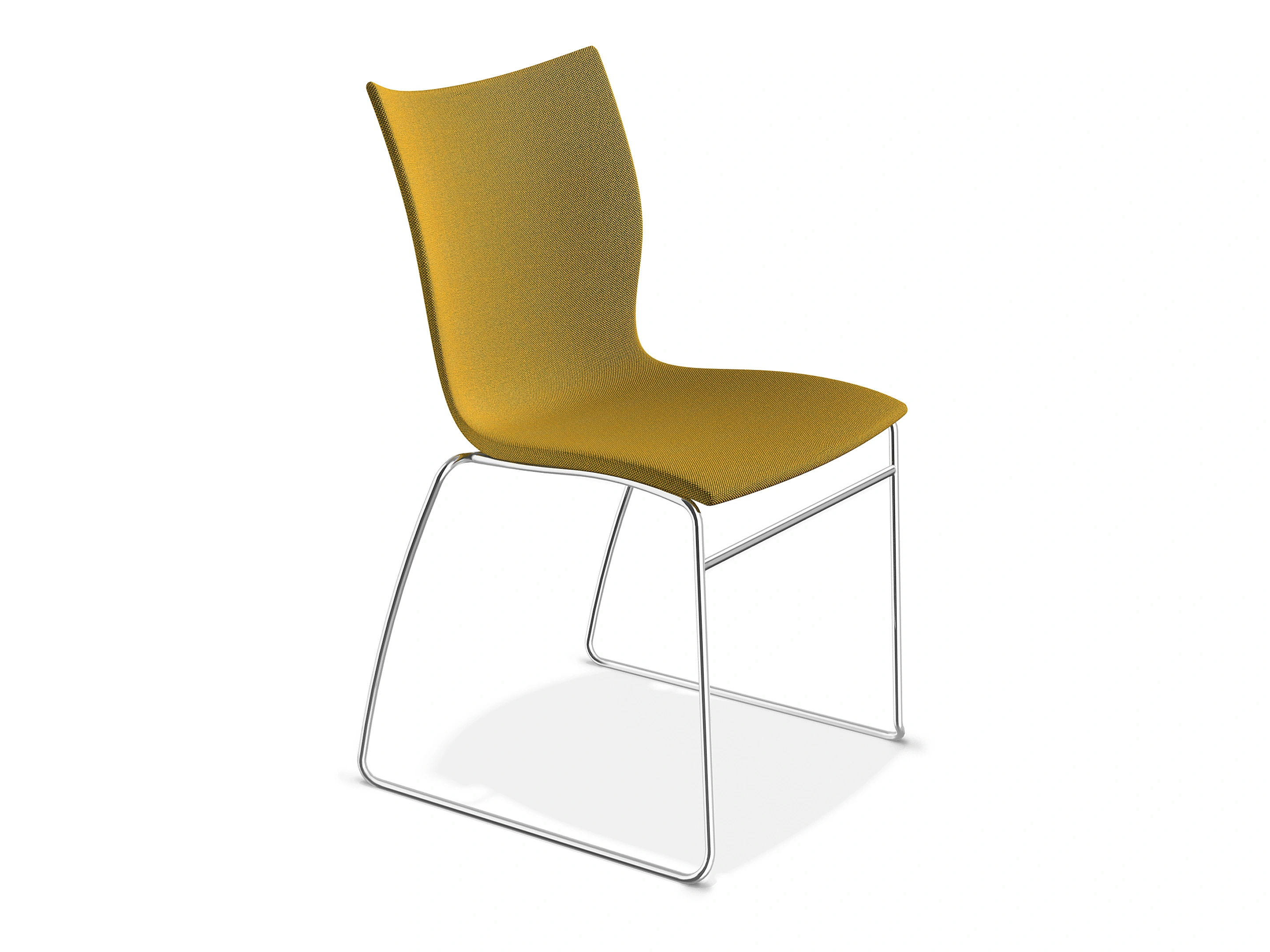 Sledeframe met een volledig gestoffeerde kuip. Exclusief armleggers. Stapelbaar tot 15 stuks op transportwagen en tot 6 stuks vrijstaand.