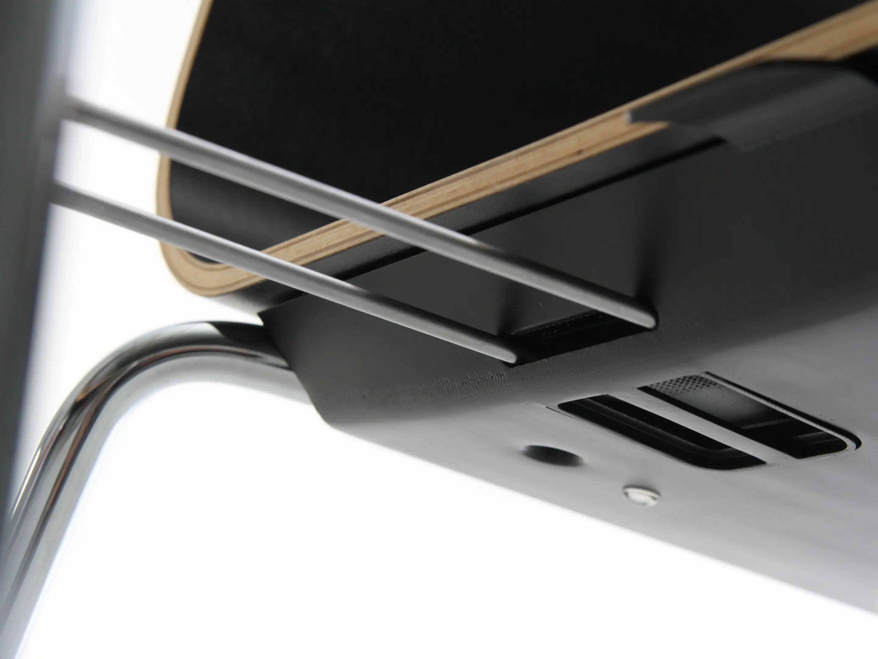 Stoel met CPL kuip, 4-poots frame, exclusief armleggers. Stapelbaar tot 10 stuks.