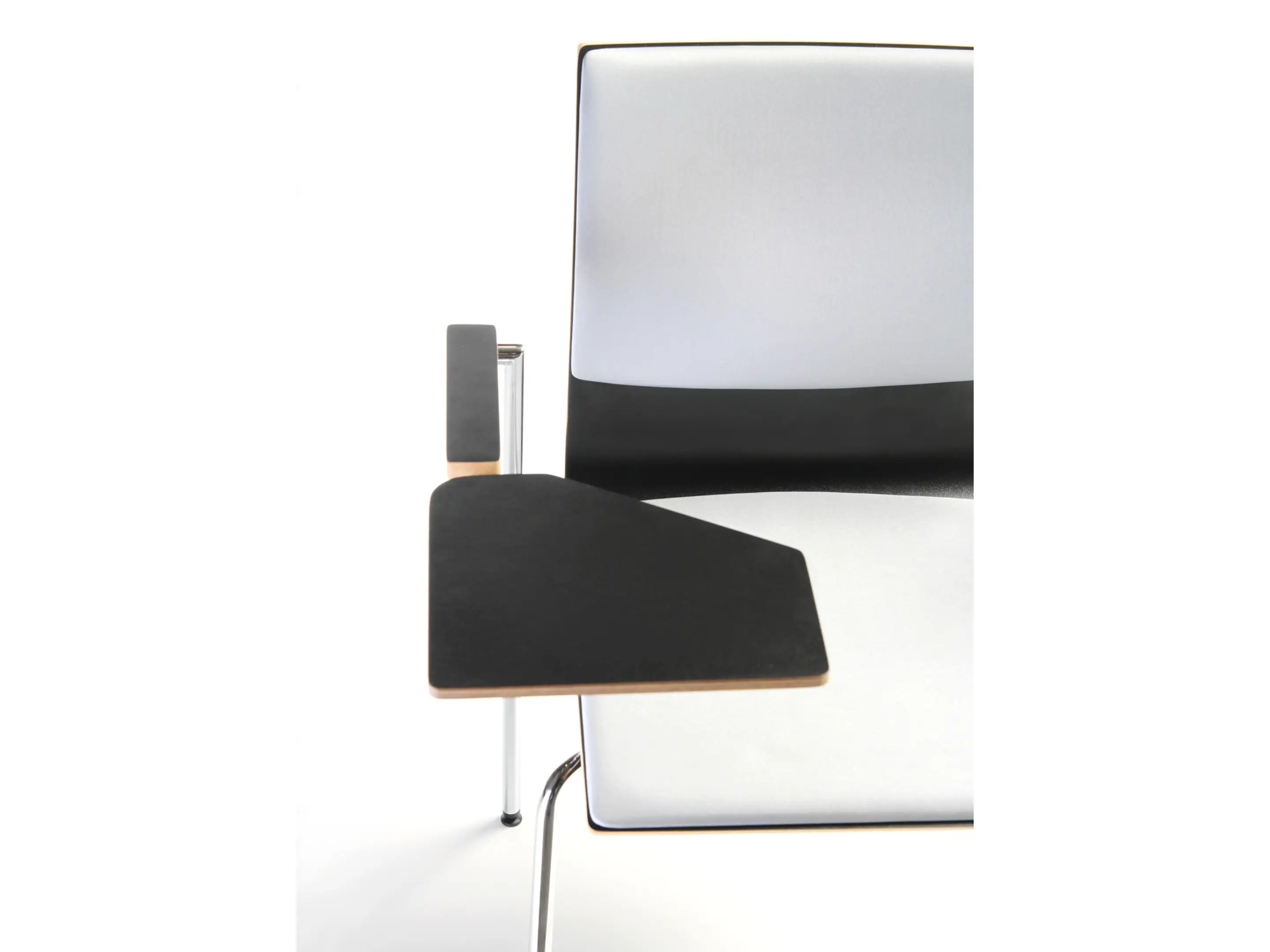 Stoel met CPL kuip met gestoffeerde zitting, 4-poots frame, inclusief armleggers met pads. Stapelbaar tot 10 stuks.
