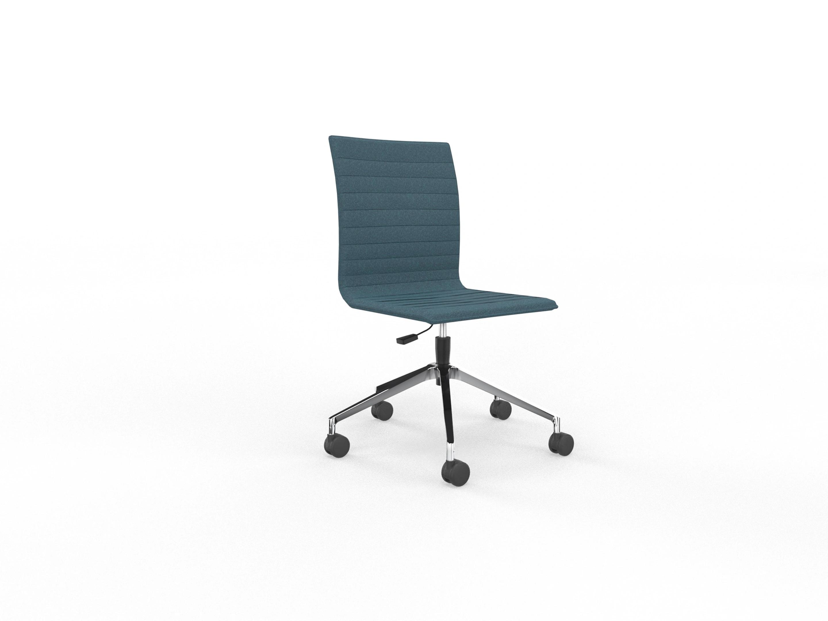Stoel met volledig gestoffeerde kuip en 4-poots frame met wielen voorzien van remfunctie