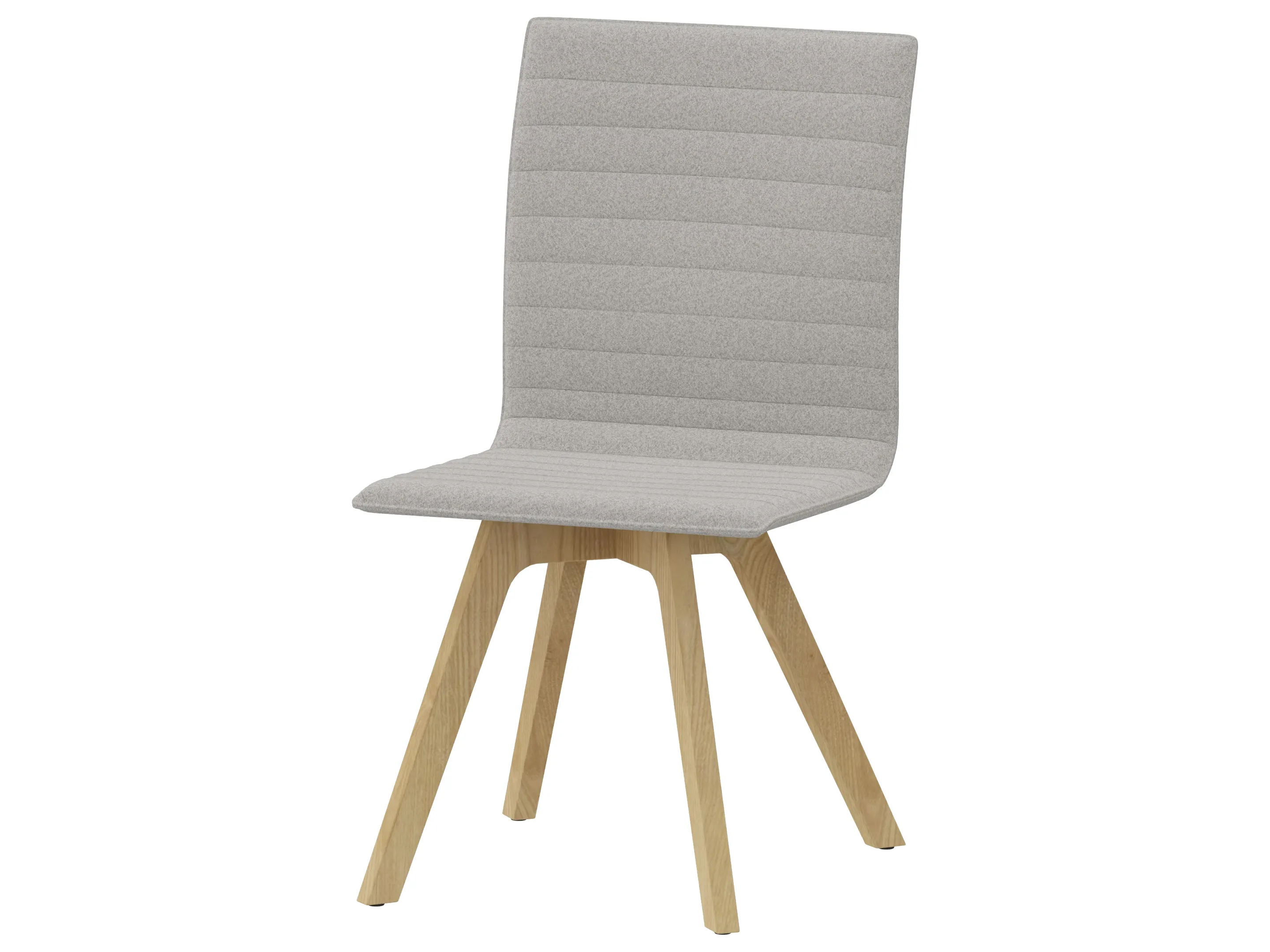 Stoel met volledig gestoffeerde kuip met horizontaal stiksel, 4-poots houten frame, exclusief armleggers.