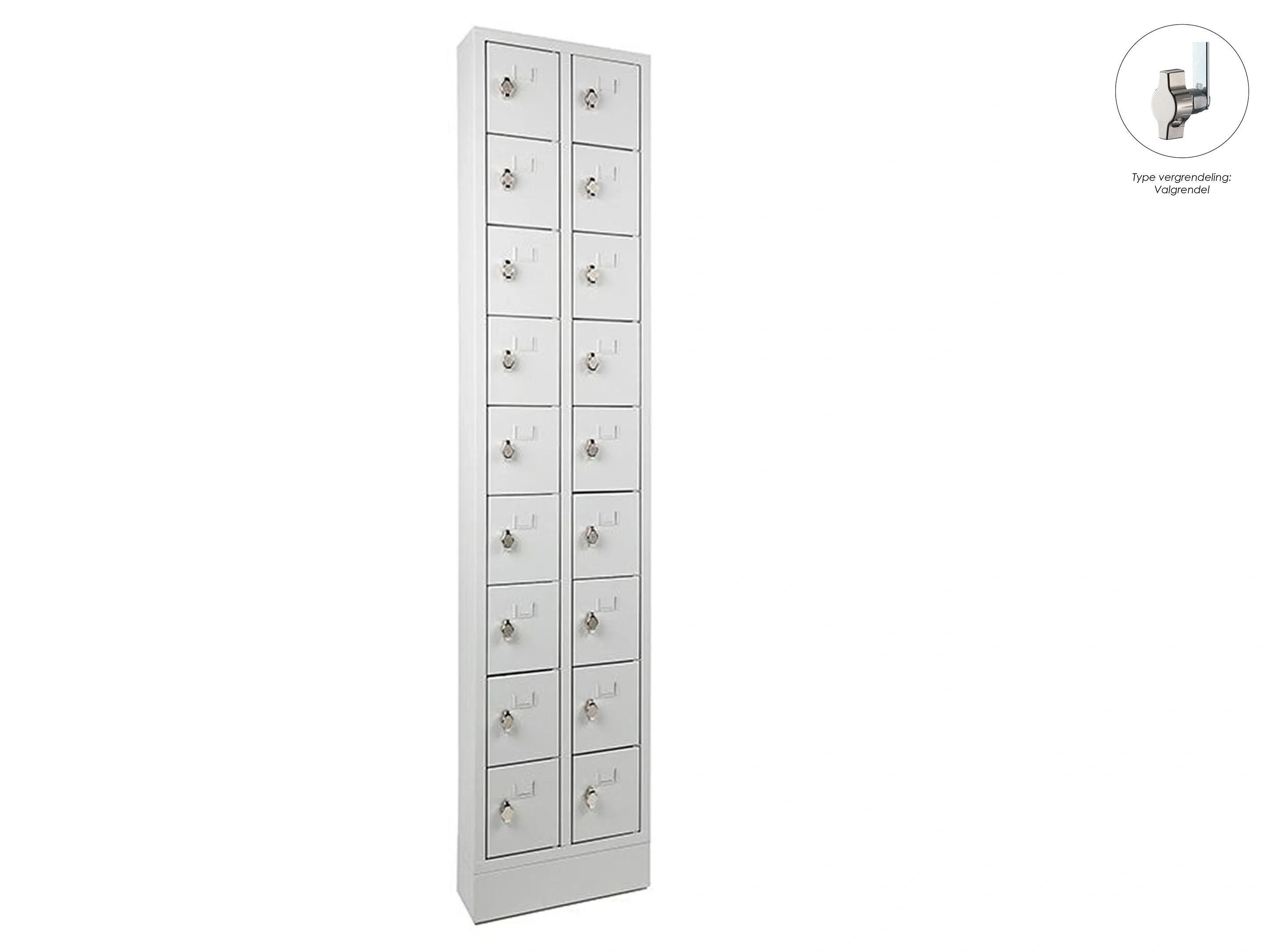 PEL Mini Lockerkast - 18 deurs, 188x42x15cm, Grijs, cilinderslot