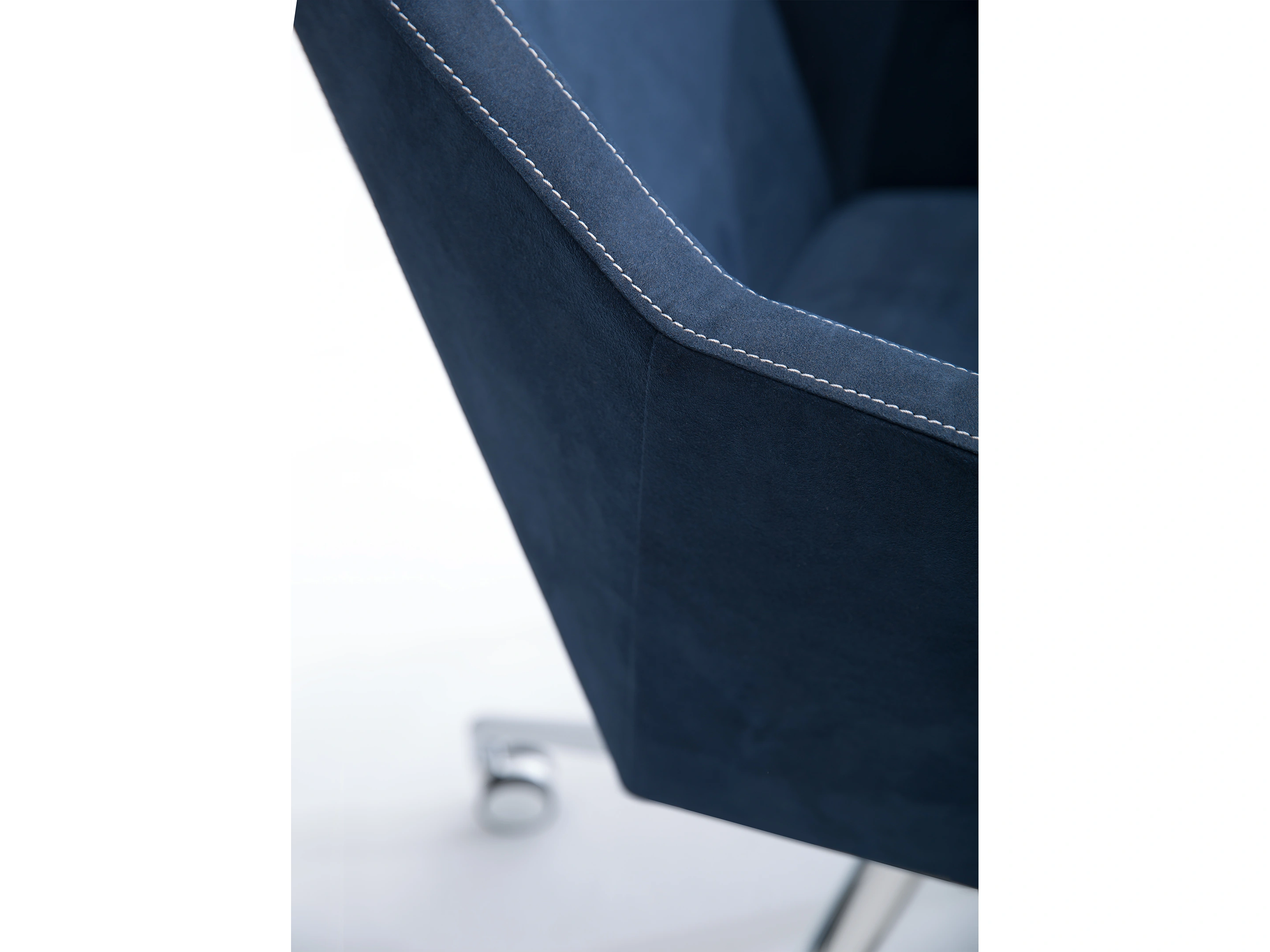 Volledig gestoffeerde kuip met een rughoogte van 81cm, op 4-teens voetkruis voorzien van kunststof glijders, met een zithoogte van 47cm.