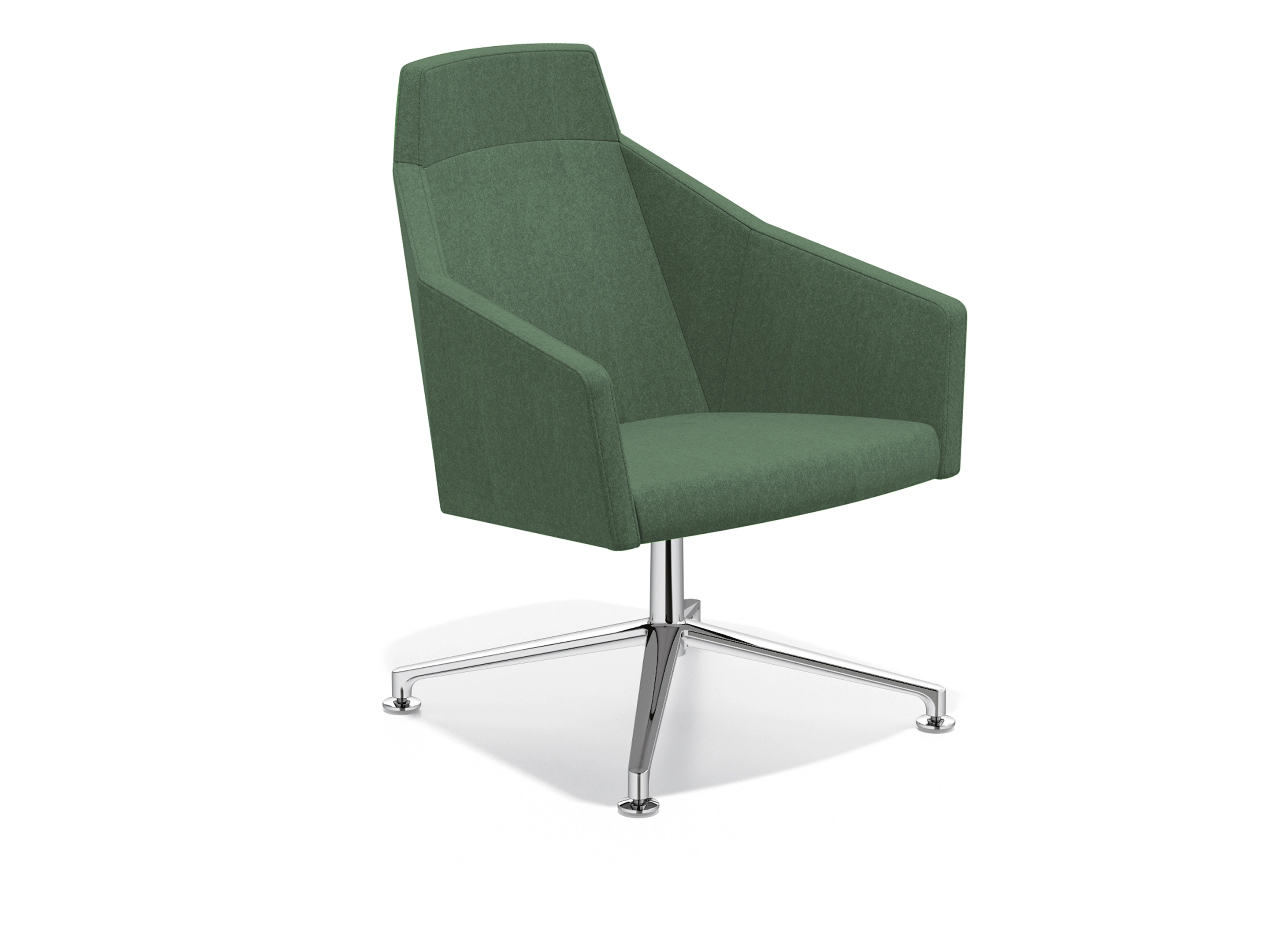 Volledig gestoffeerde kuip met een rughoogte van 81cm, op 4-teens voetkruis voorzien van kunststof glijders, met een zithoogte van 41cm.