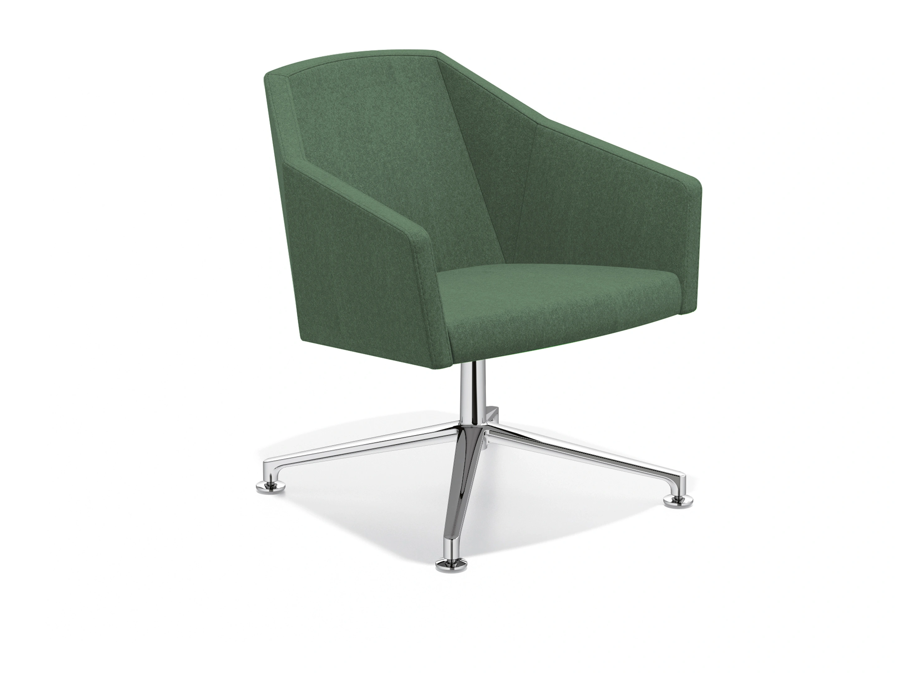 Volledig gestoffeerde kuip met een rughoogte van 81cm, op 4-teens voetkruis voorzien van kunststof glijders, met een zithoogte van 41cm.