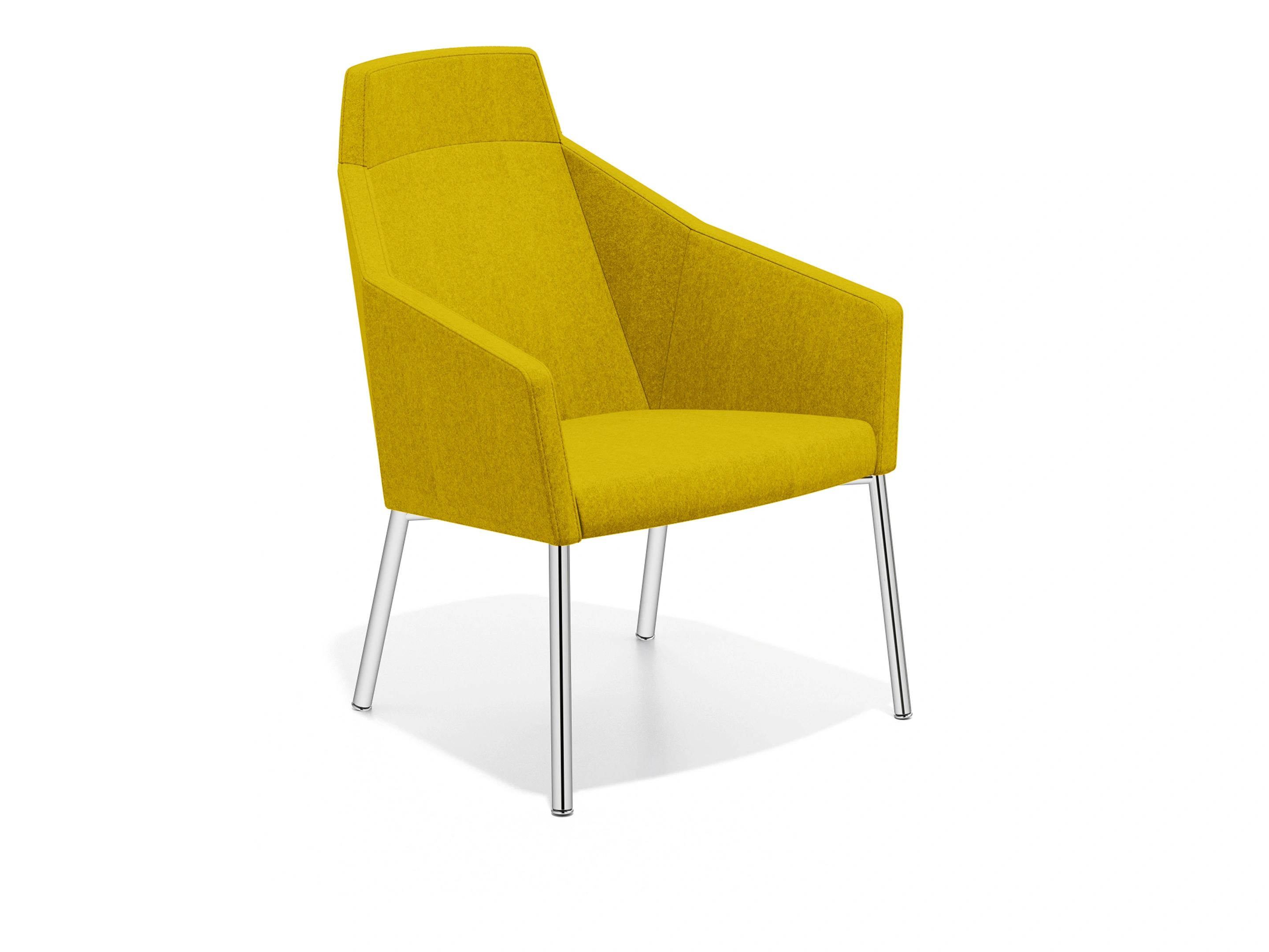 Volledig gestoffeerde kuip met een rughoogte van 81cm, op 4-poots frame voorzien van kunststof glijders, met een zithoogte van 41cm.