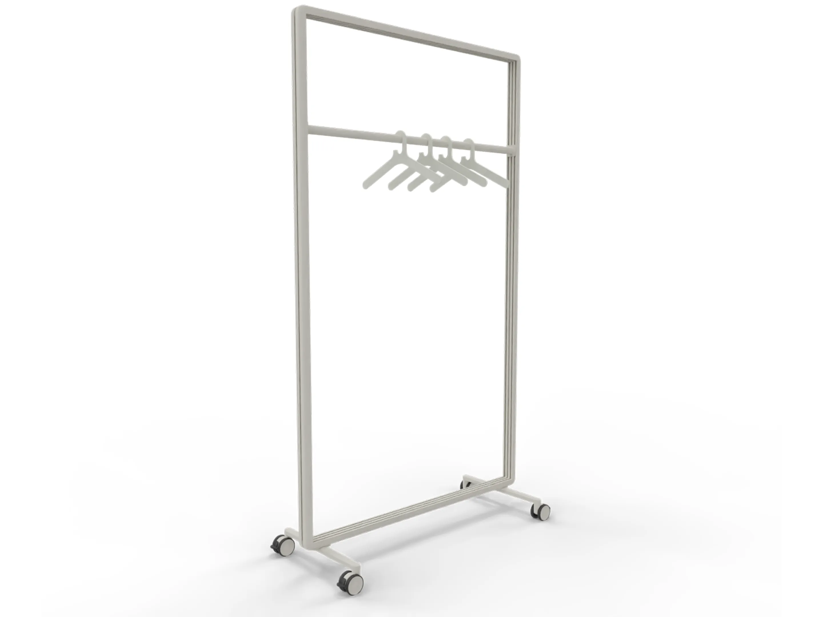 Verrijdbare garderoberek geschik voor gebruik van kledinghangers (niet inbegrepen). Afmeting: 800 x 500 x 1970mm (BxDxH)
