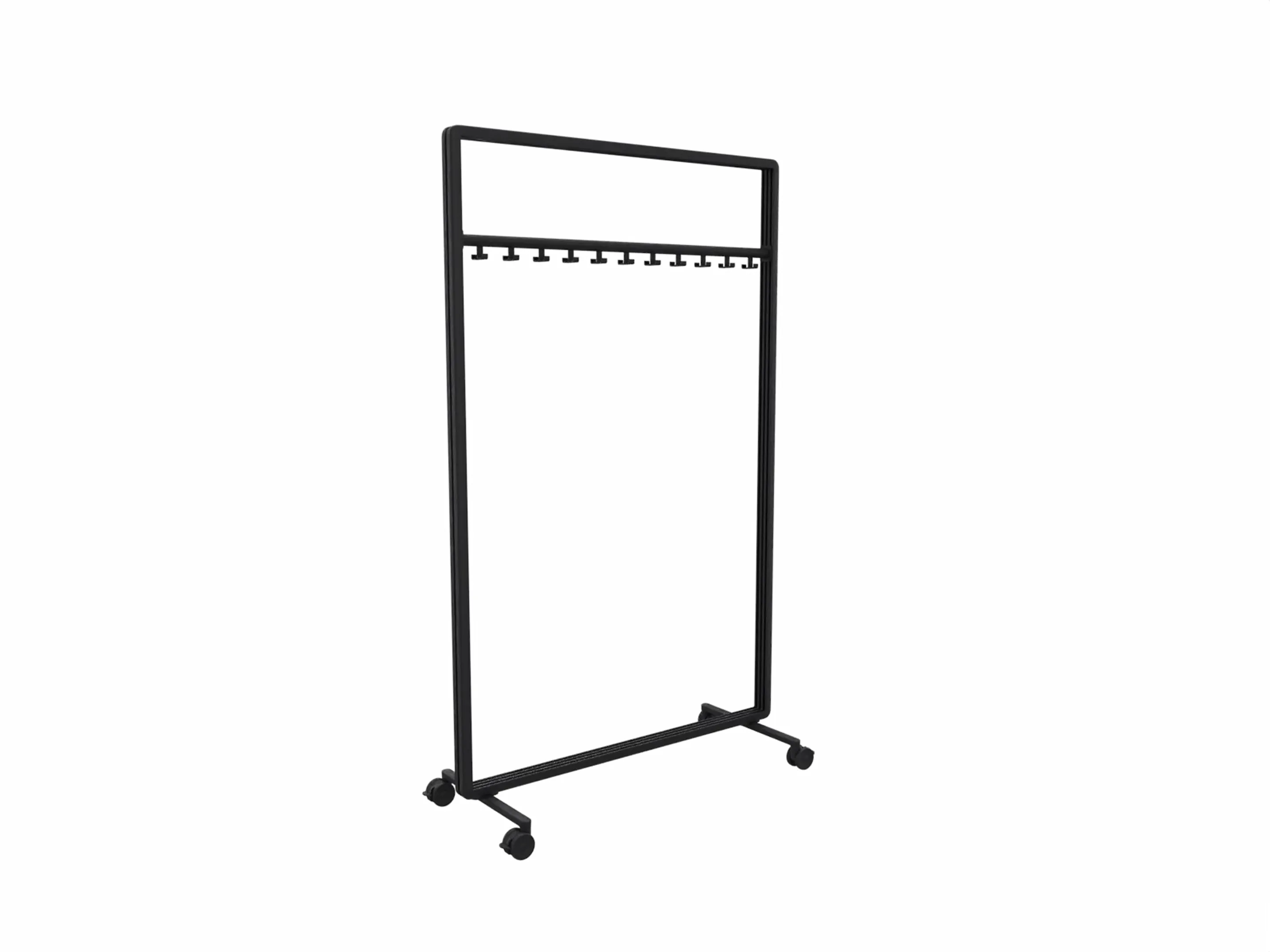 Verrijdbare garderoberek geschik voor gebruik van dubbelzijdige jashaken (niet inbegrepen). Afmeting: 1200 x 500 x 1970mm (BxDxH)