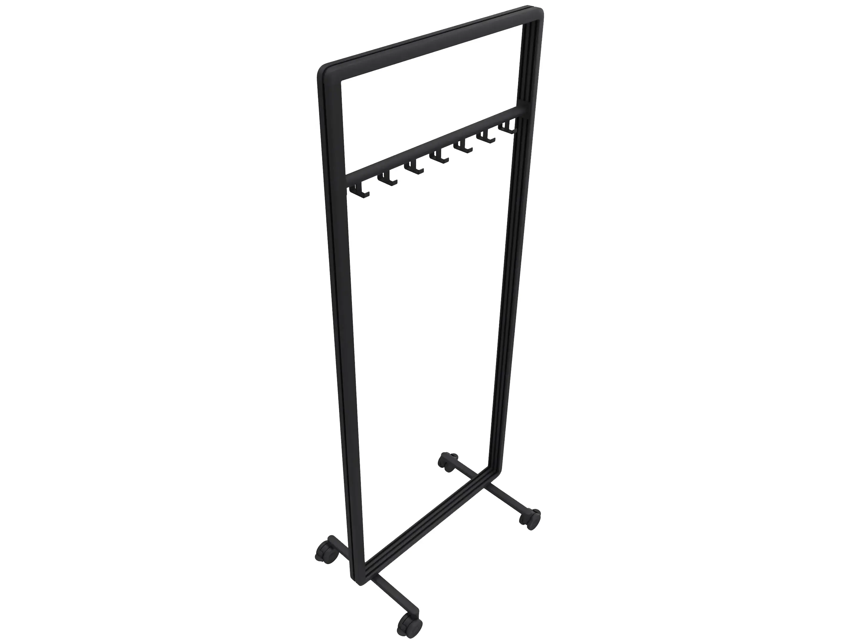 Verrijdbare garderoberek geschik voor gebruik van dubbelzijdige jashaken (niet inbegrepen). Afmeting: 800 x 500 x 1970mm (BxDxH)