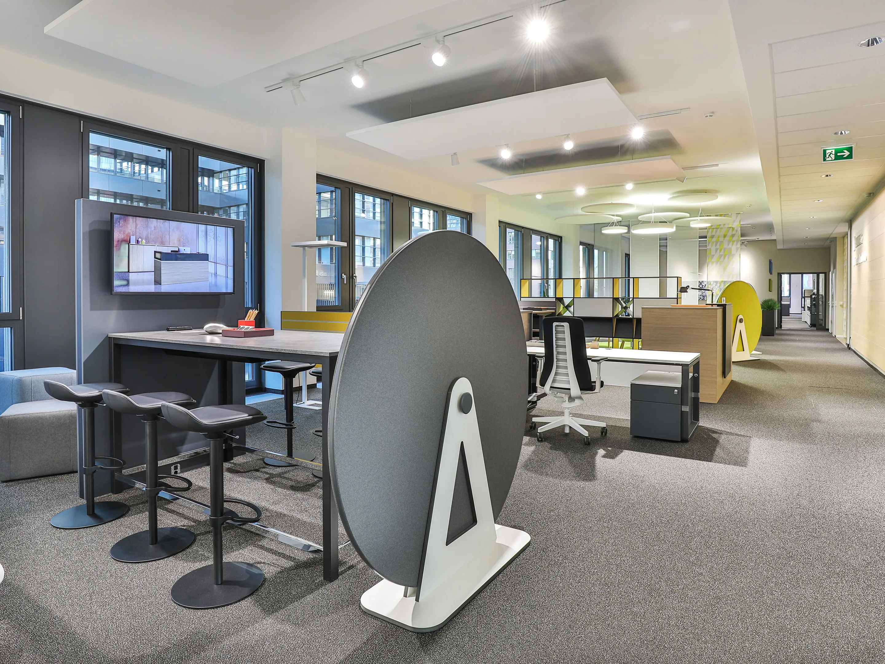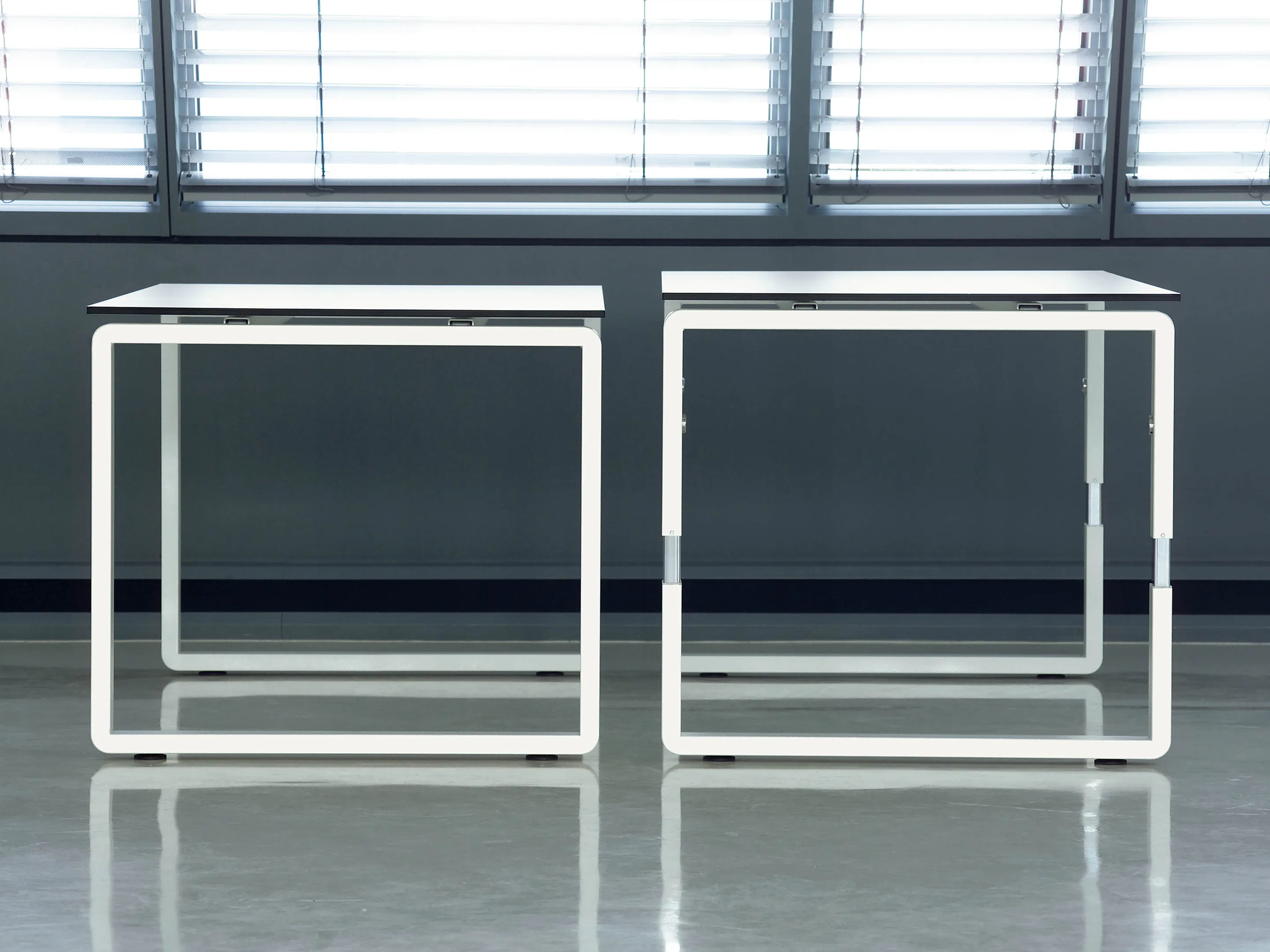 Bureau met twee poten (o-poot, hoogte instelbaar tussen 680-820mm d.m.v. "Easy-Push) in de afmeting: 1000 x 1000mm (BxD)