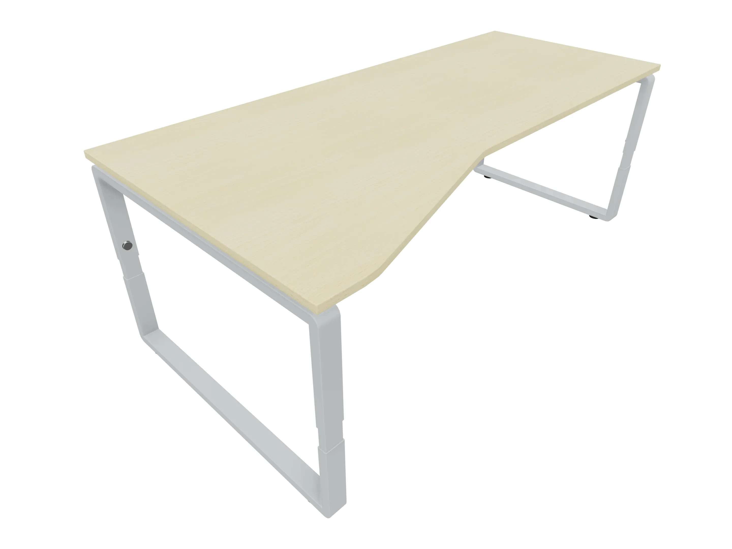 Bureau met 2 poten (hoogte instelbaar tussen 680-820mm d.m.v. "Easy-Push), waarvan de linker 1000mm diep, de rechter 800mm diep. Bureau heeft een rechte zitzijde, met een ronding in de hoek met een aanbouw zijde van 441mm. Afmeting: 2000 x 1000mm (BxD).