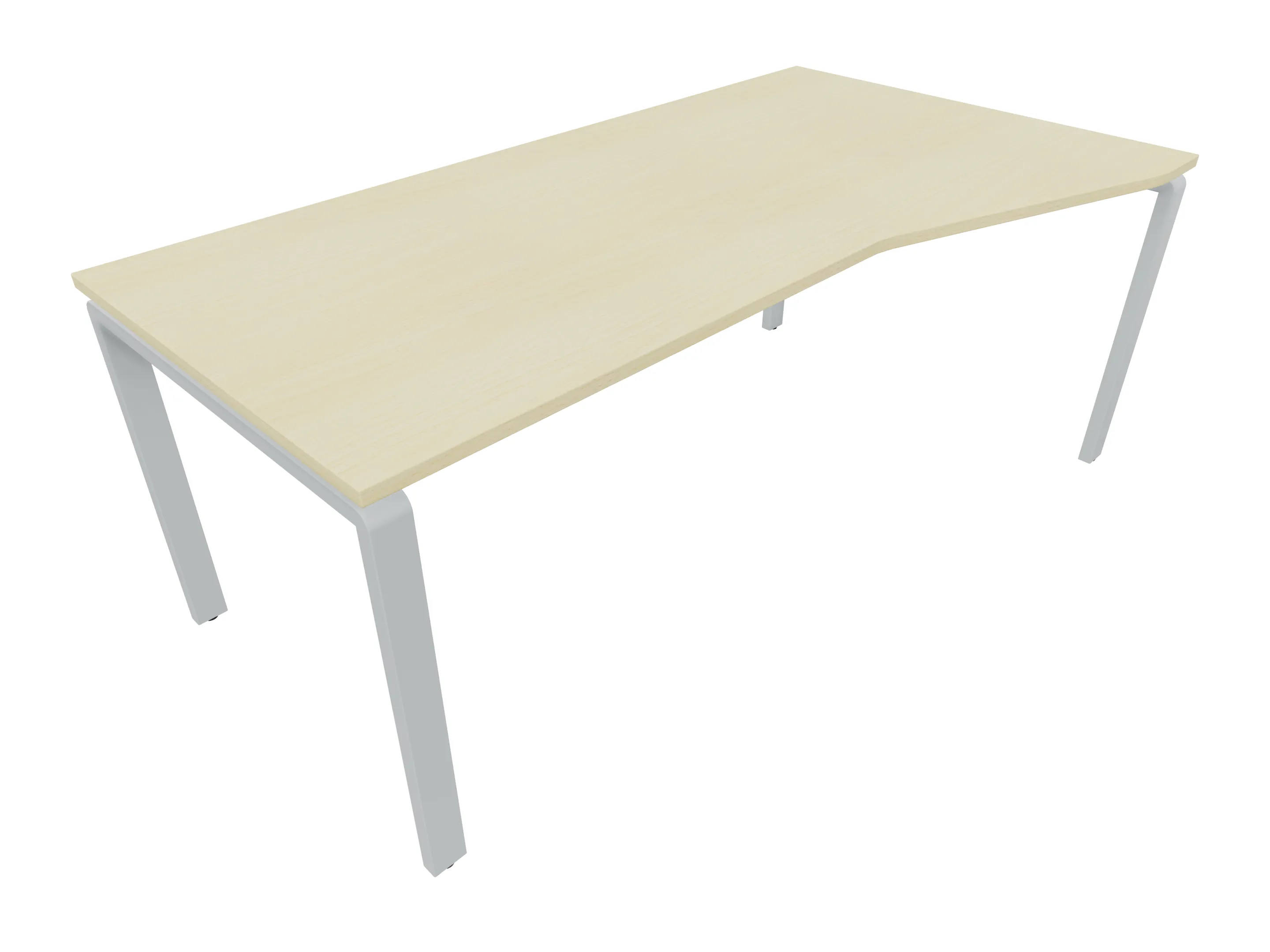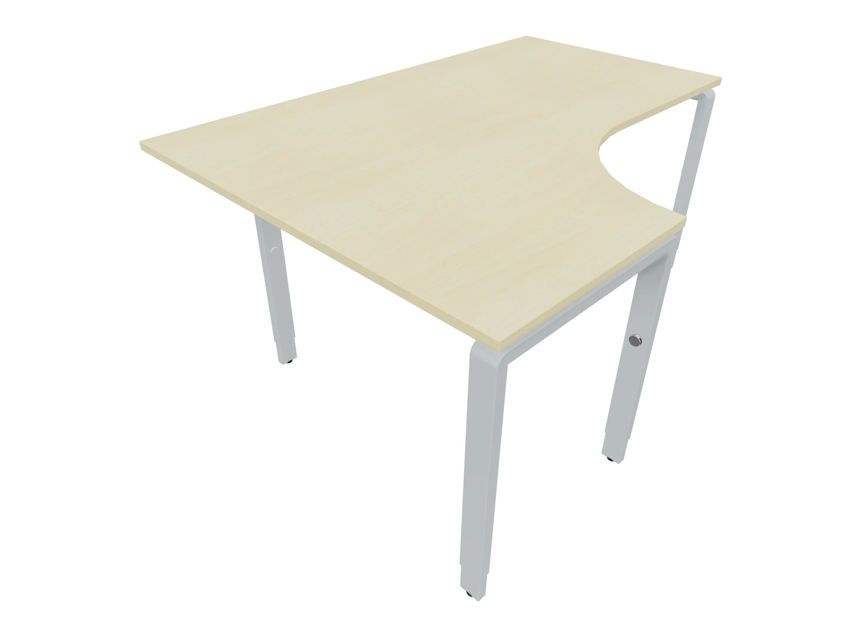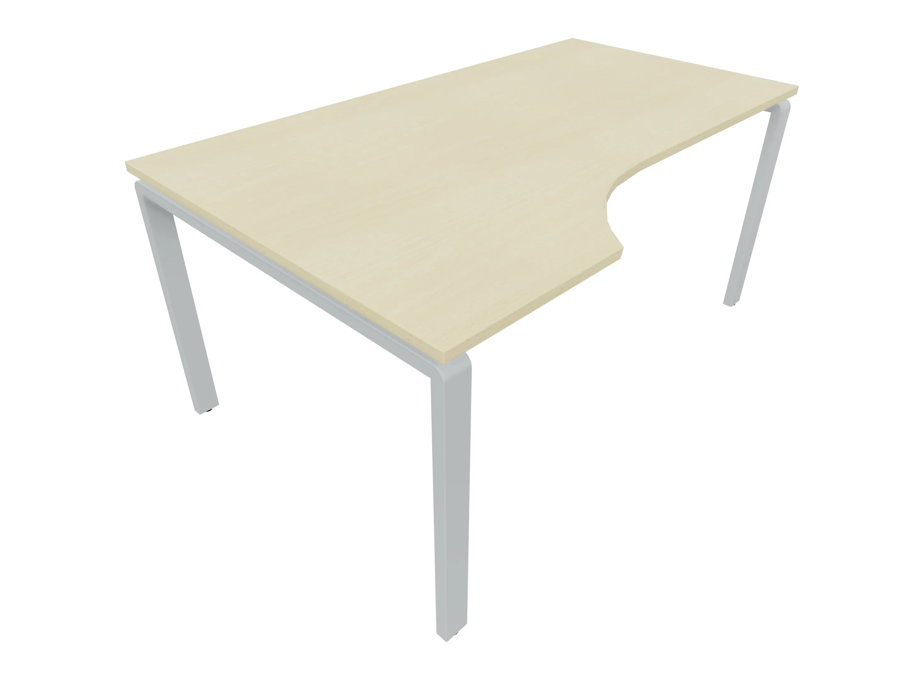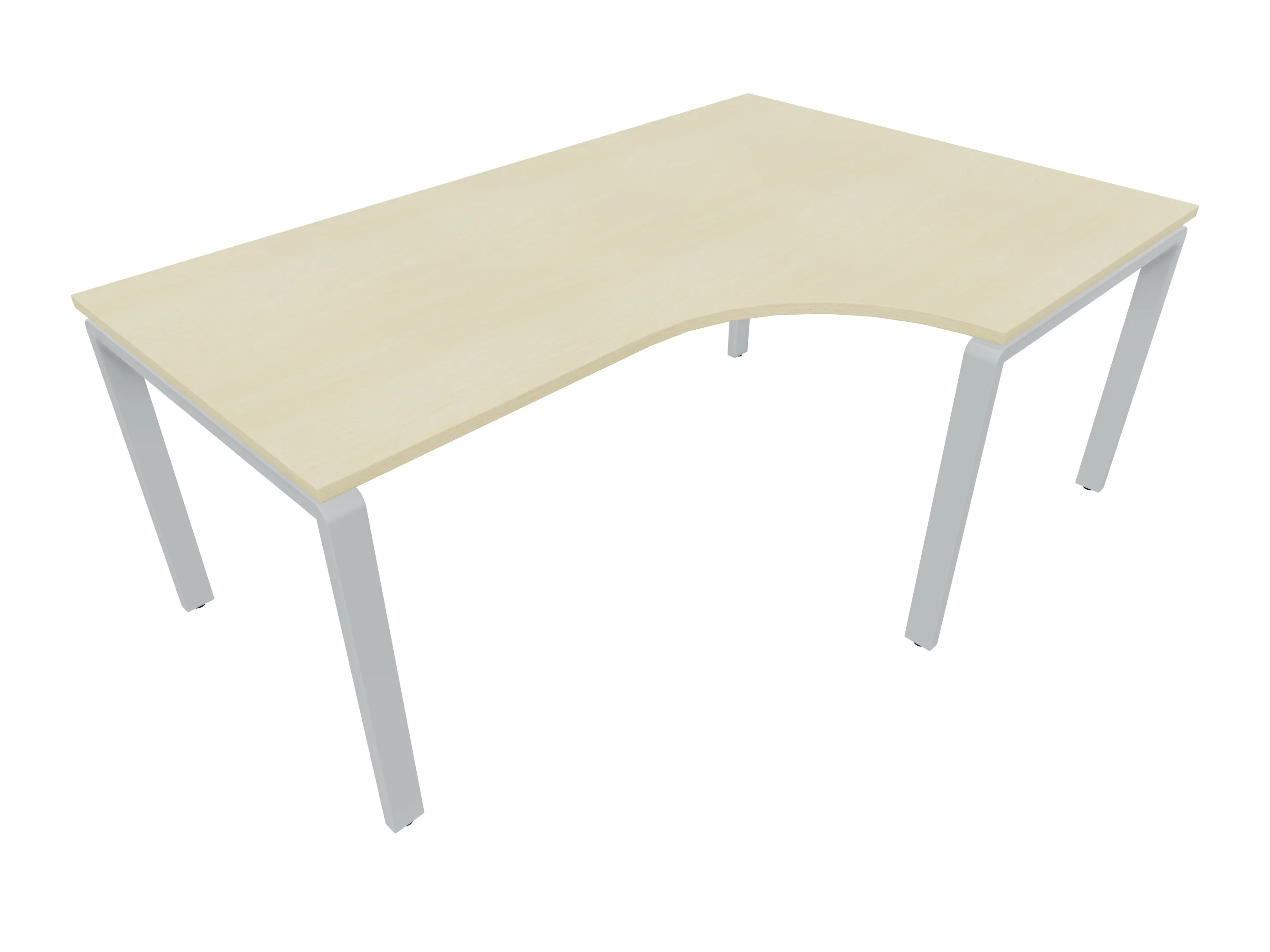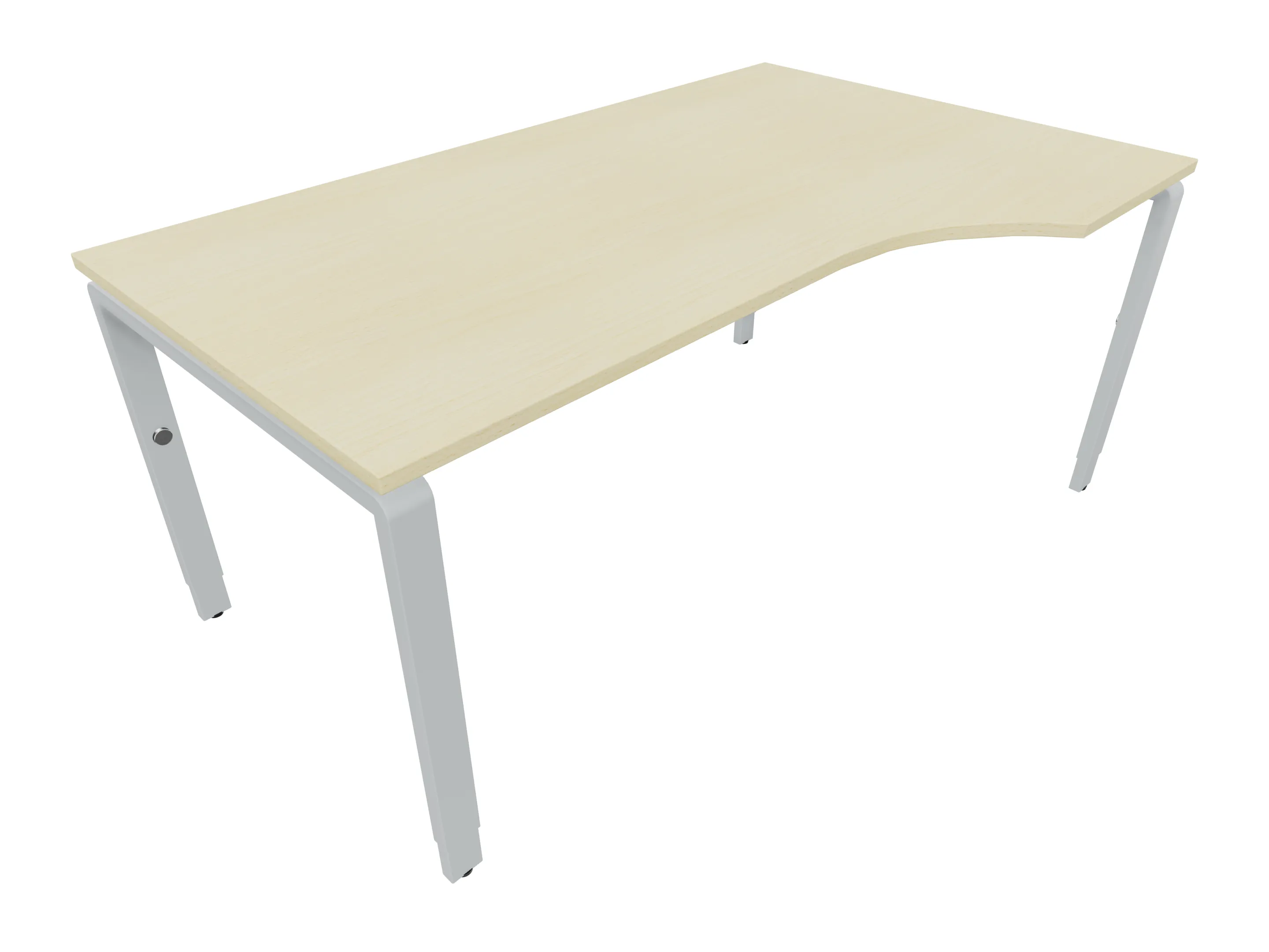 Bureau met 2 poten (vaste hoogte 720mm), waarvan de linker 1000mm diep, de rechter 800mm diep. Bureau heeft een rechte zitzijde, met een ronding in de hoek met een aanbouw zijde van 441mm. Afmeting: 1600 x 1000mm (BxD).