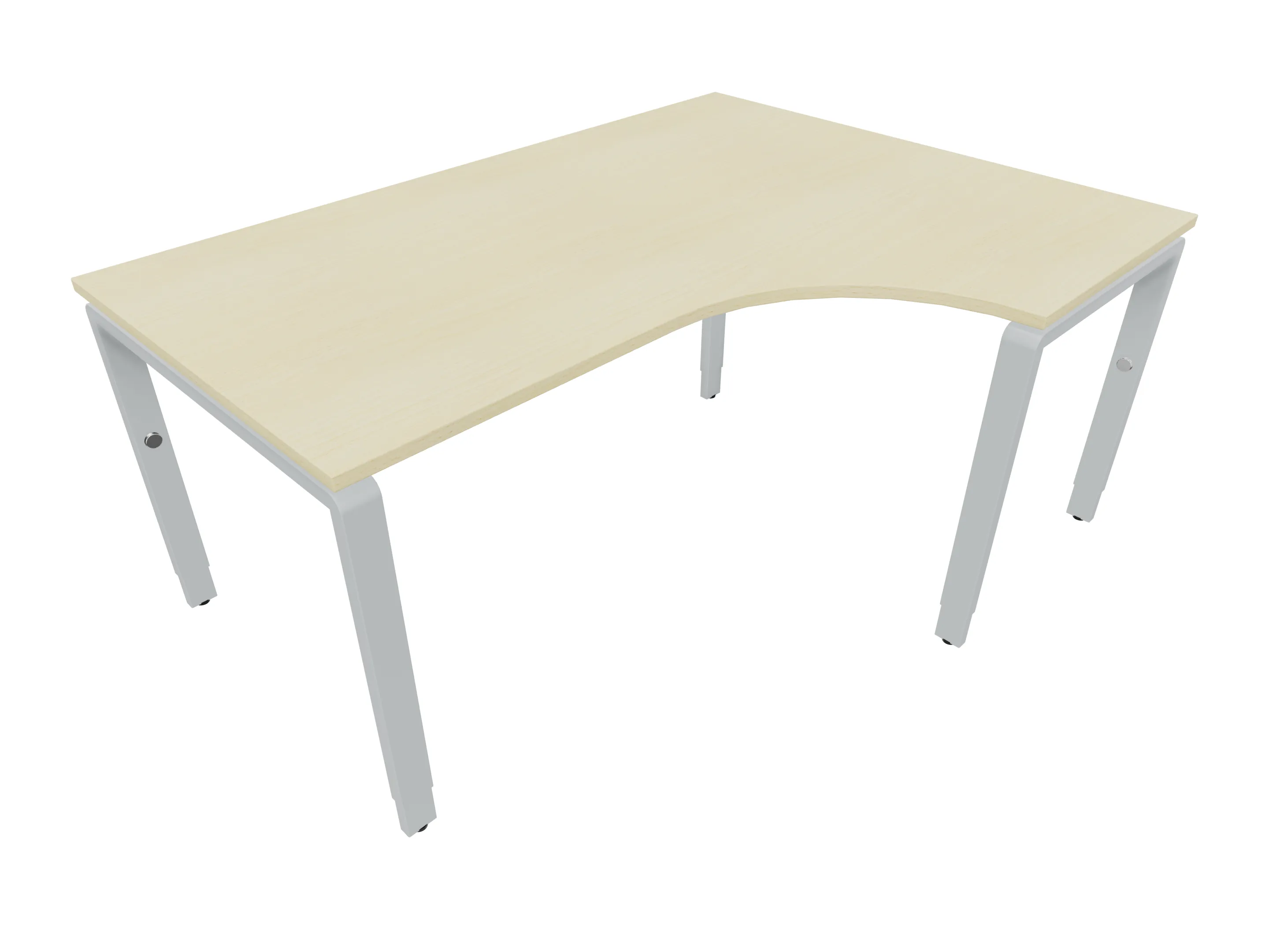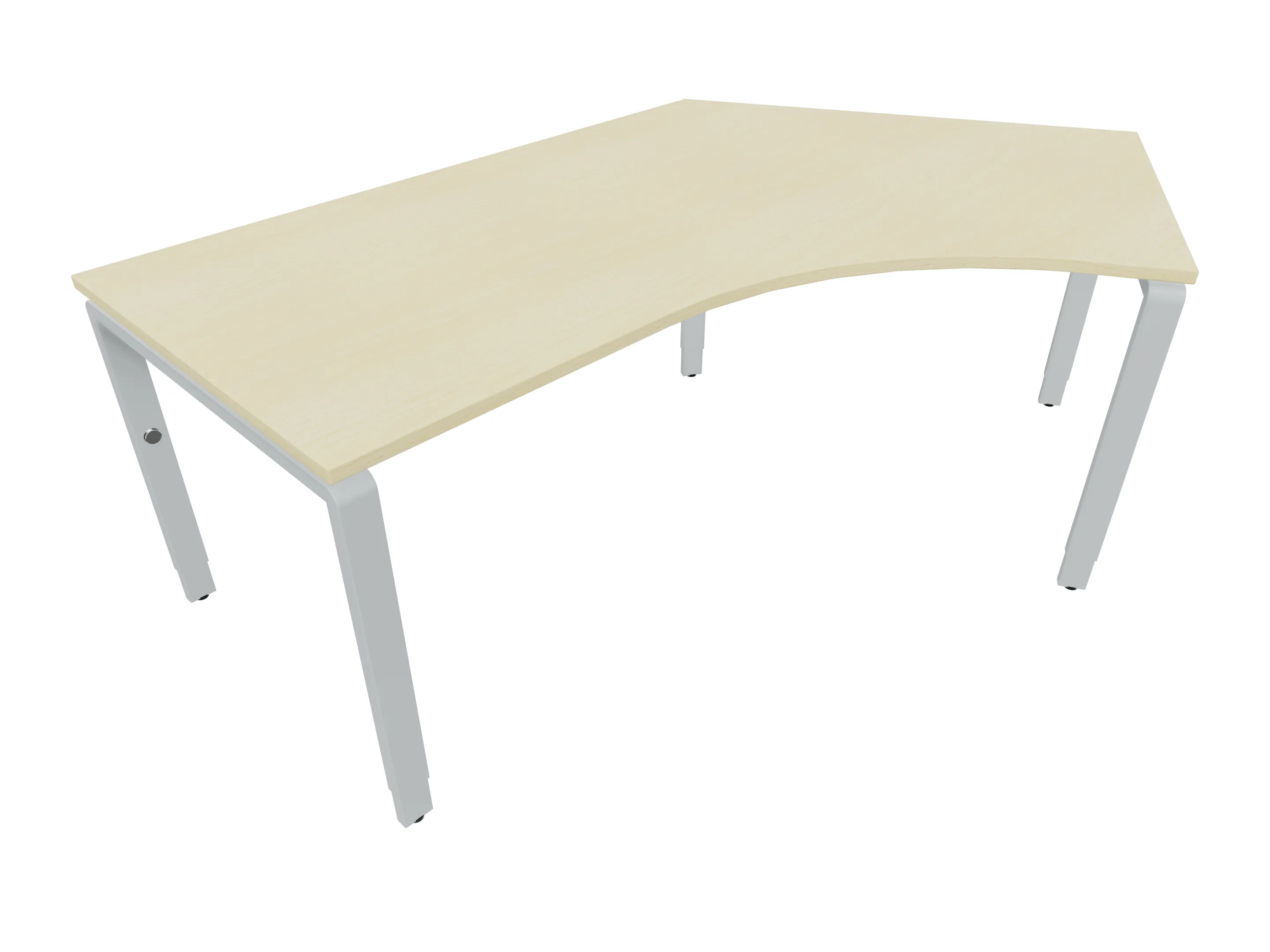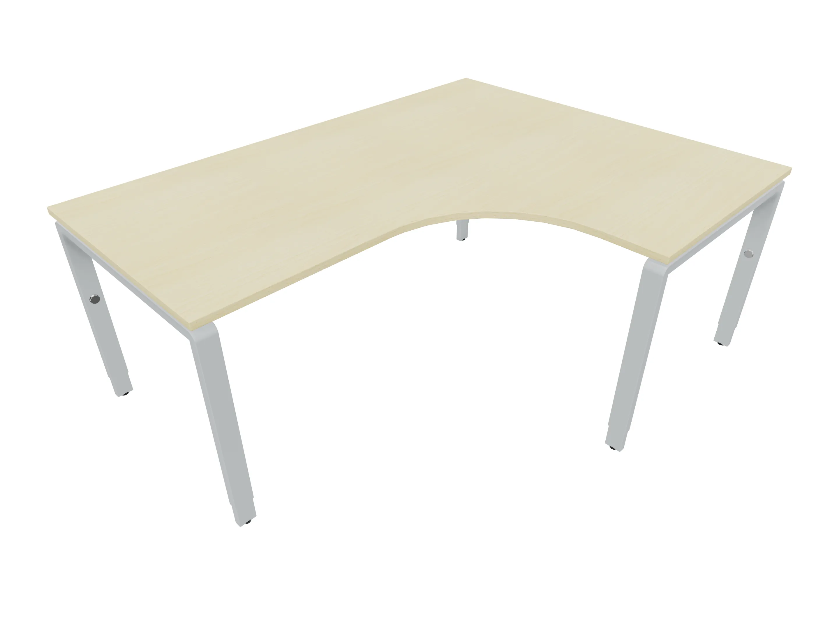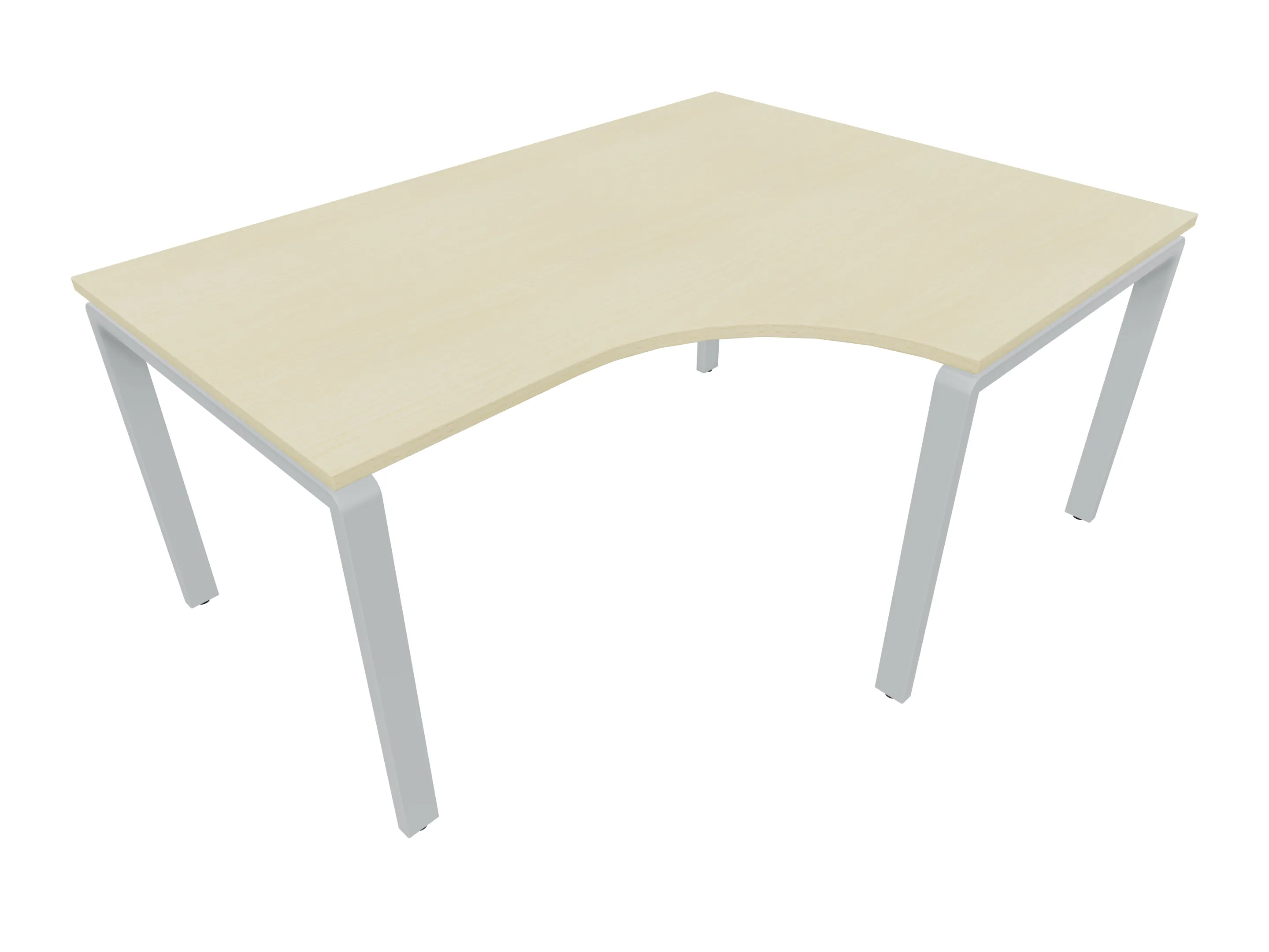 Bureau met 2 poten (vaste hoogte 720mm), waarvan de linker 1000mm diep, de rechter 800mm diep. Bureau heeft een rechte zitzijde, met een ronding in de hoek met een aanbouw zijde van 441mm. Afmeting: 1600 x 1000mm (BxD).