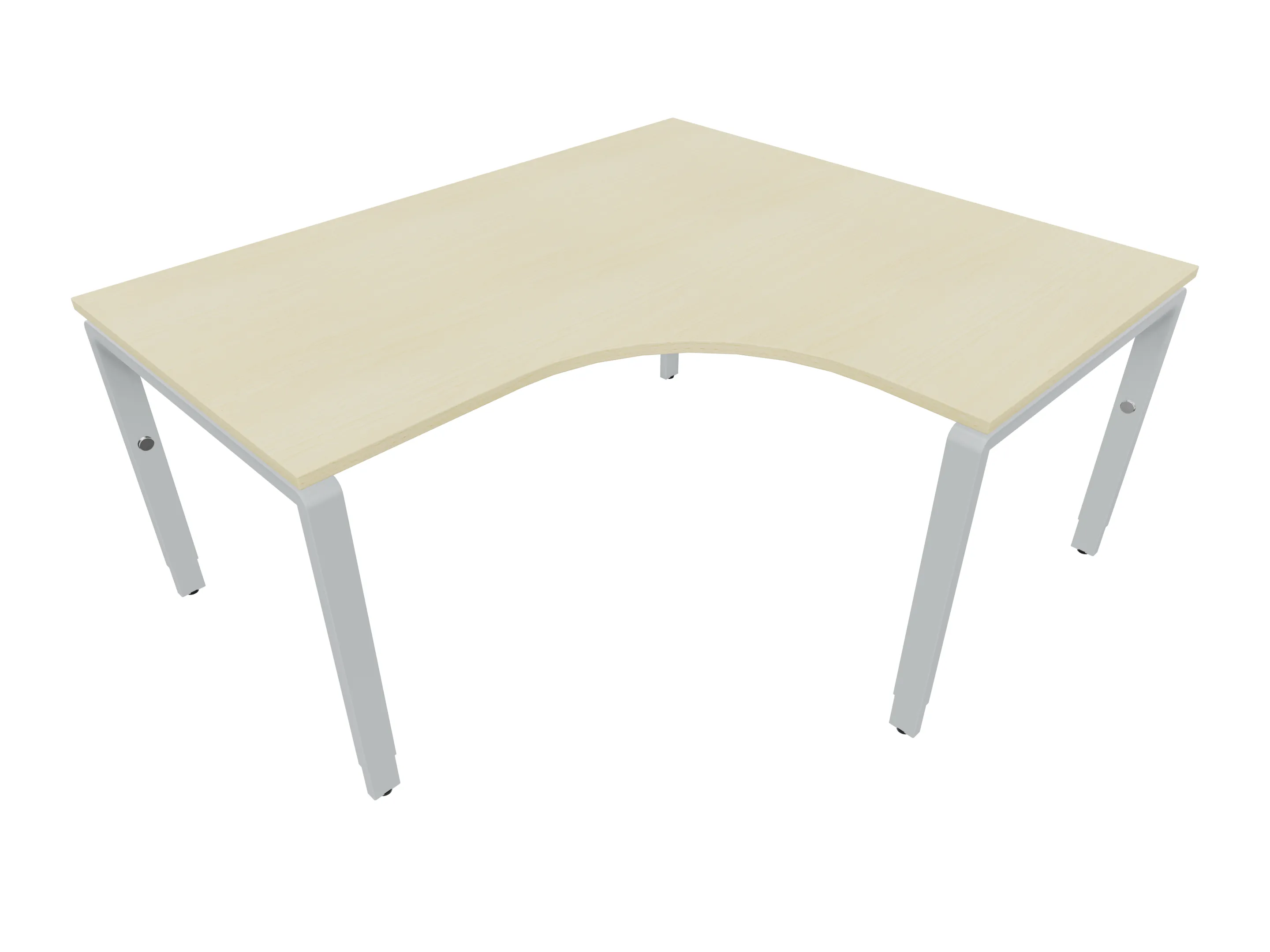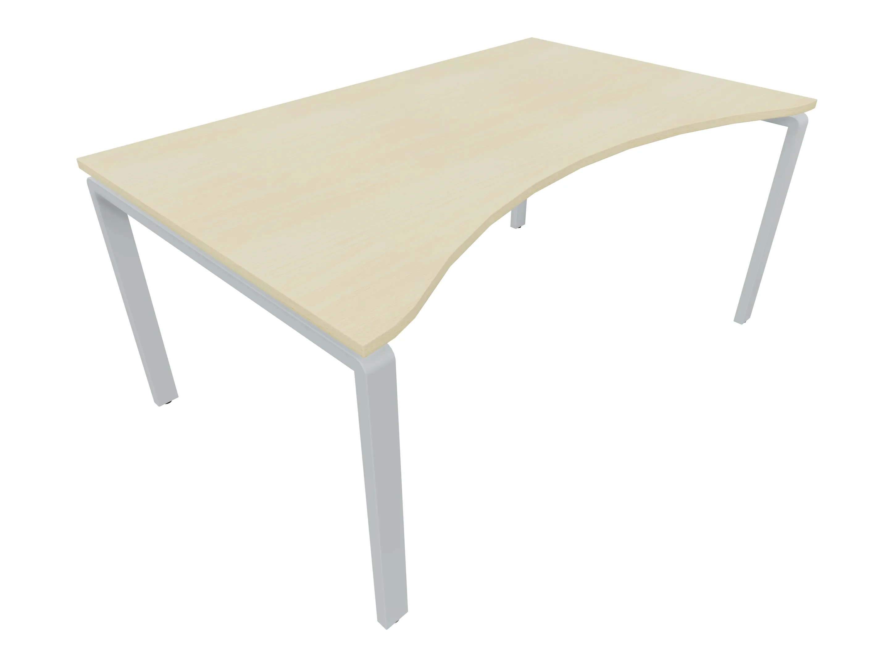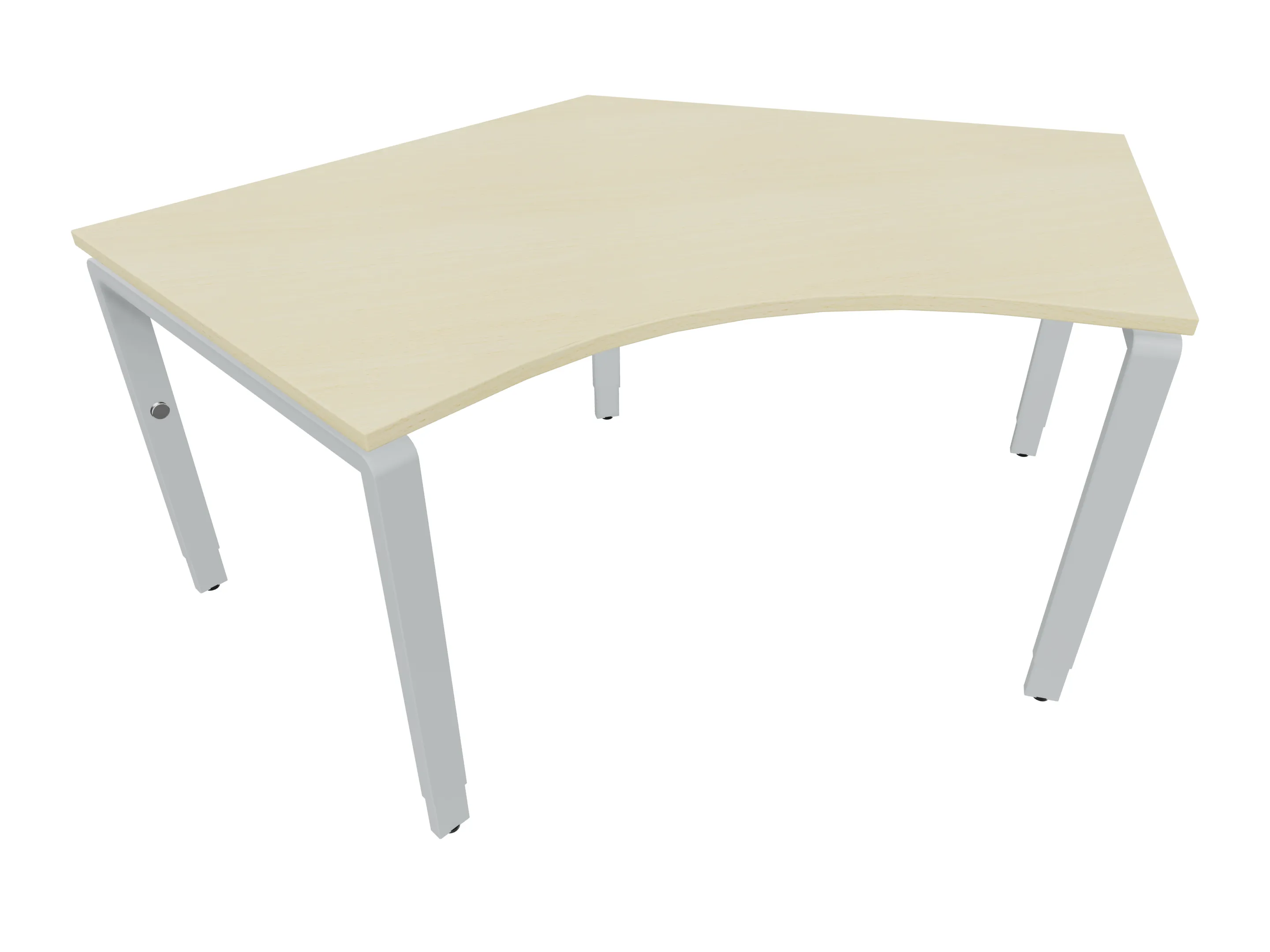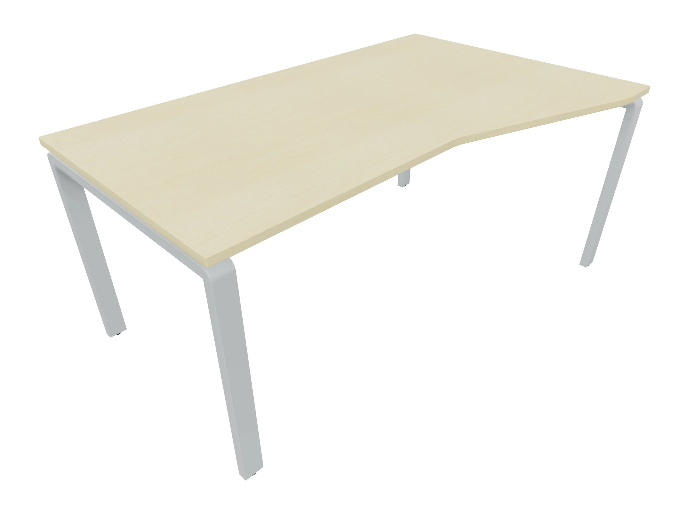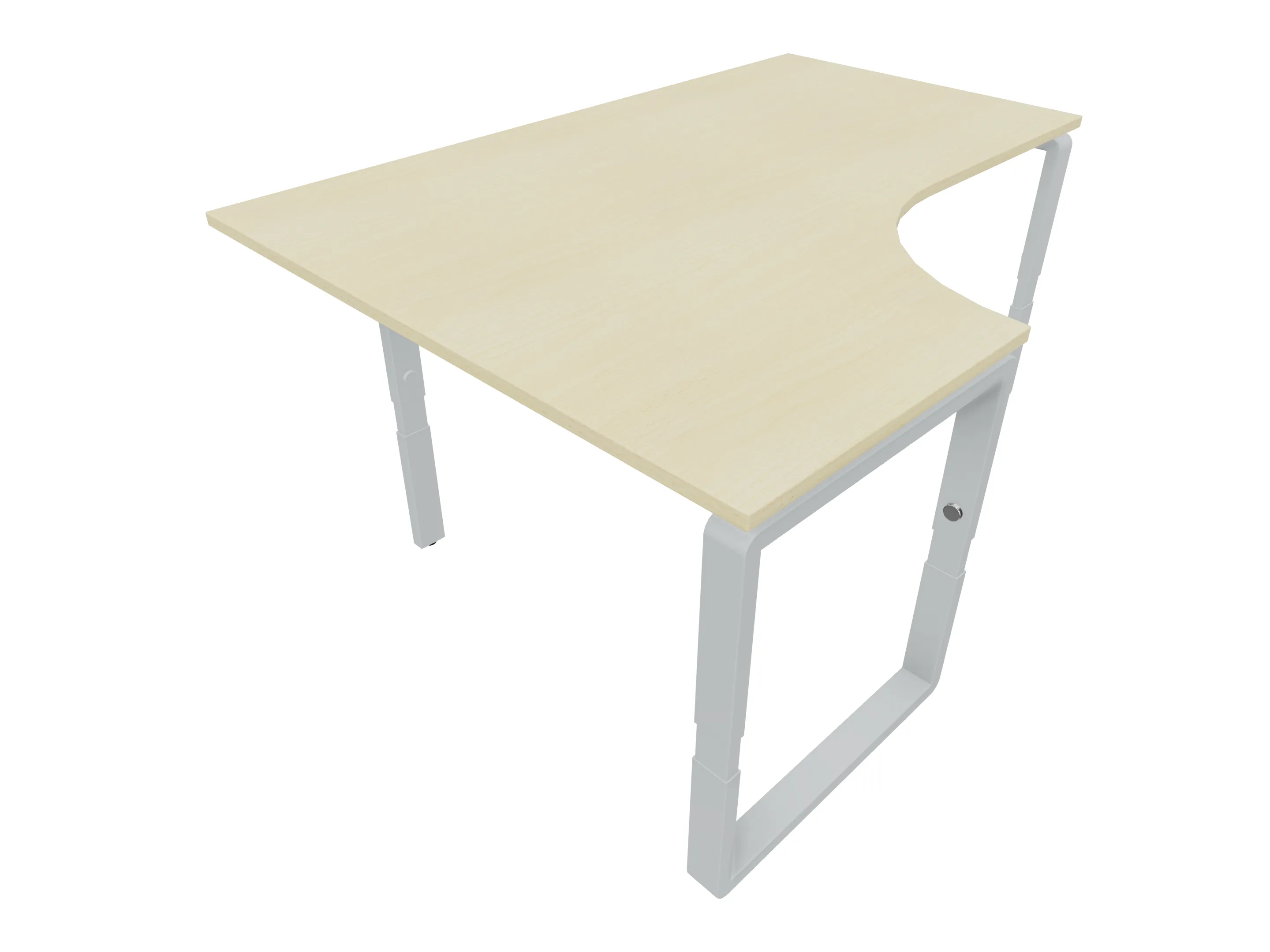 Bureau met 2 poten (vaste hoogte 720mm), waarvan de linker 1000mm diep, de rechter 800mm diep. Bureau heeft een rechte zitzijde, met een ronding in de hoek met een aanbouw zijde van 441mm. Afmeting: 1600 x 1000mm (BxD).