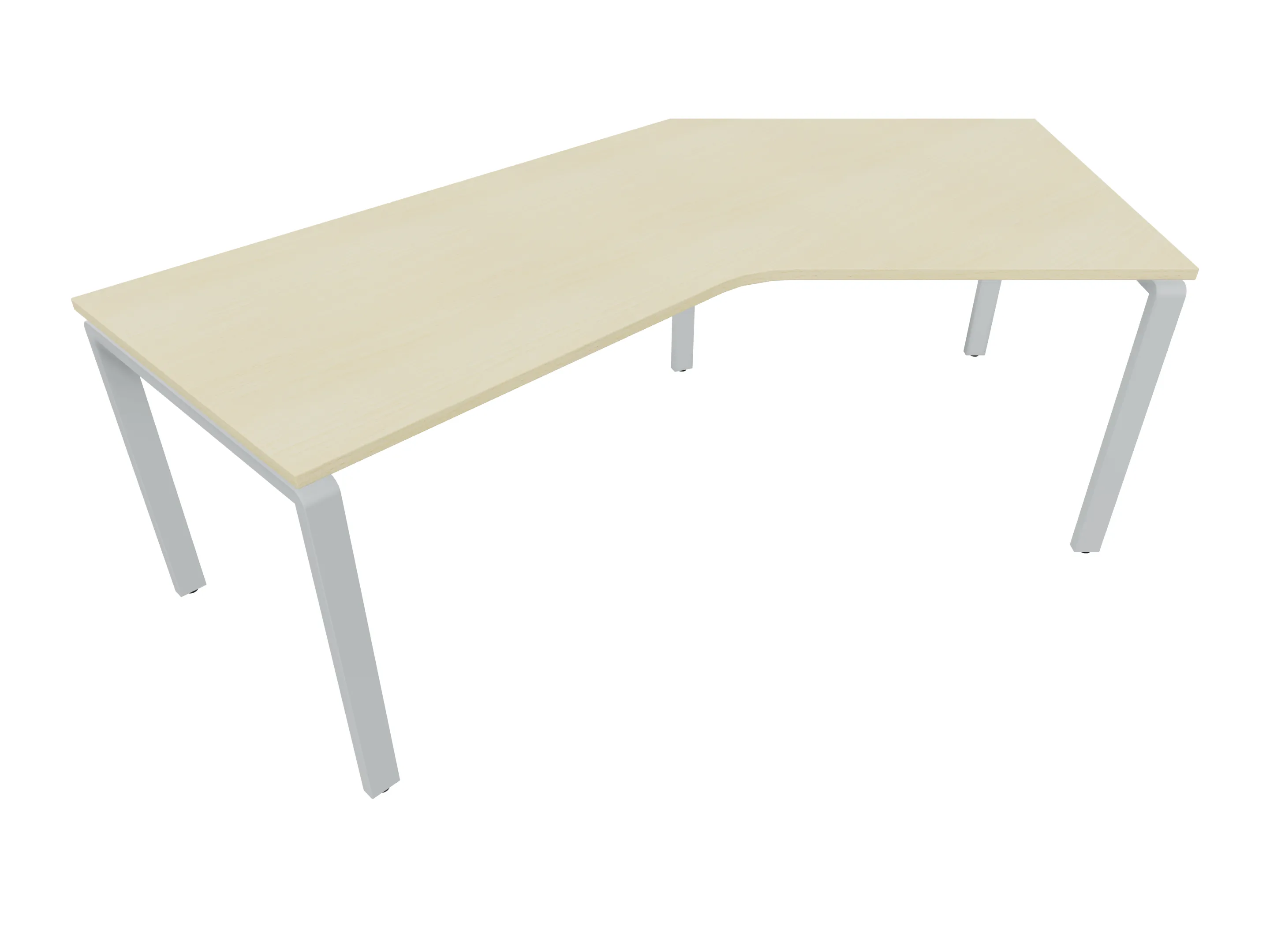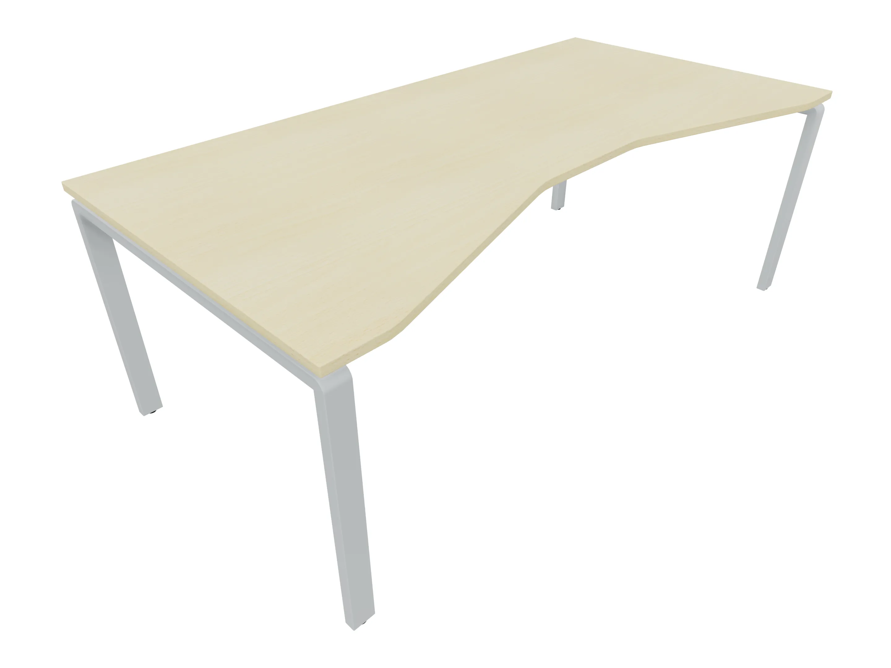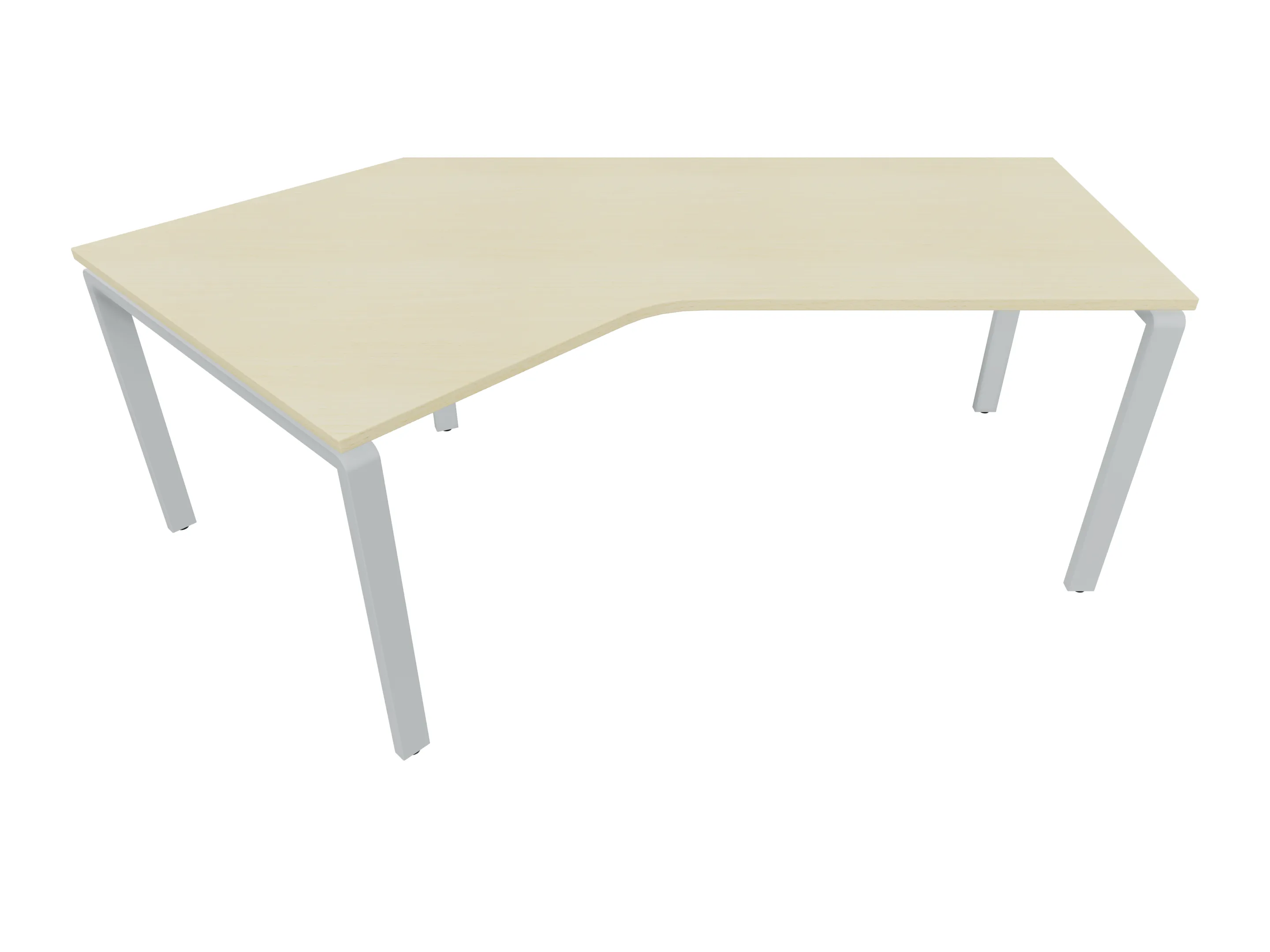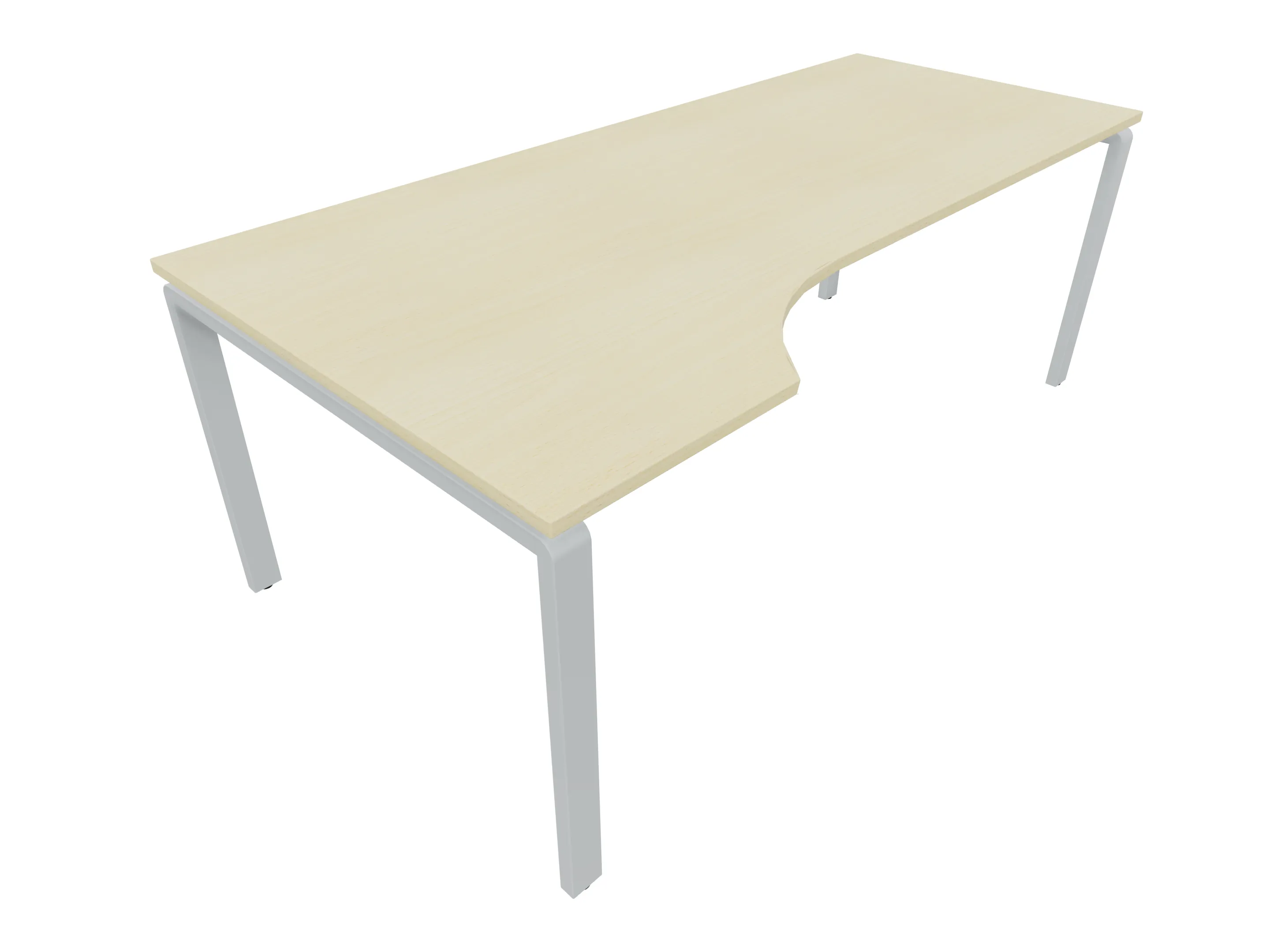 Bureau met 2 poten (vaste hoogte 720mm), waarvan de linker 1000mm diep, de rechter 800mm diep. Bureau heeft een rechte zitzijde, met een ronding in de hoek met een aanbouw zijde van 441mm. Afmeting: 1800 x 1000mm (BxD).