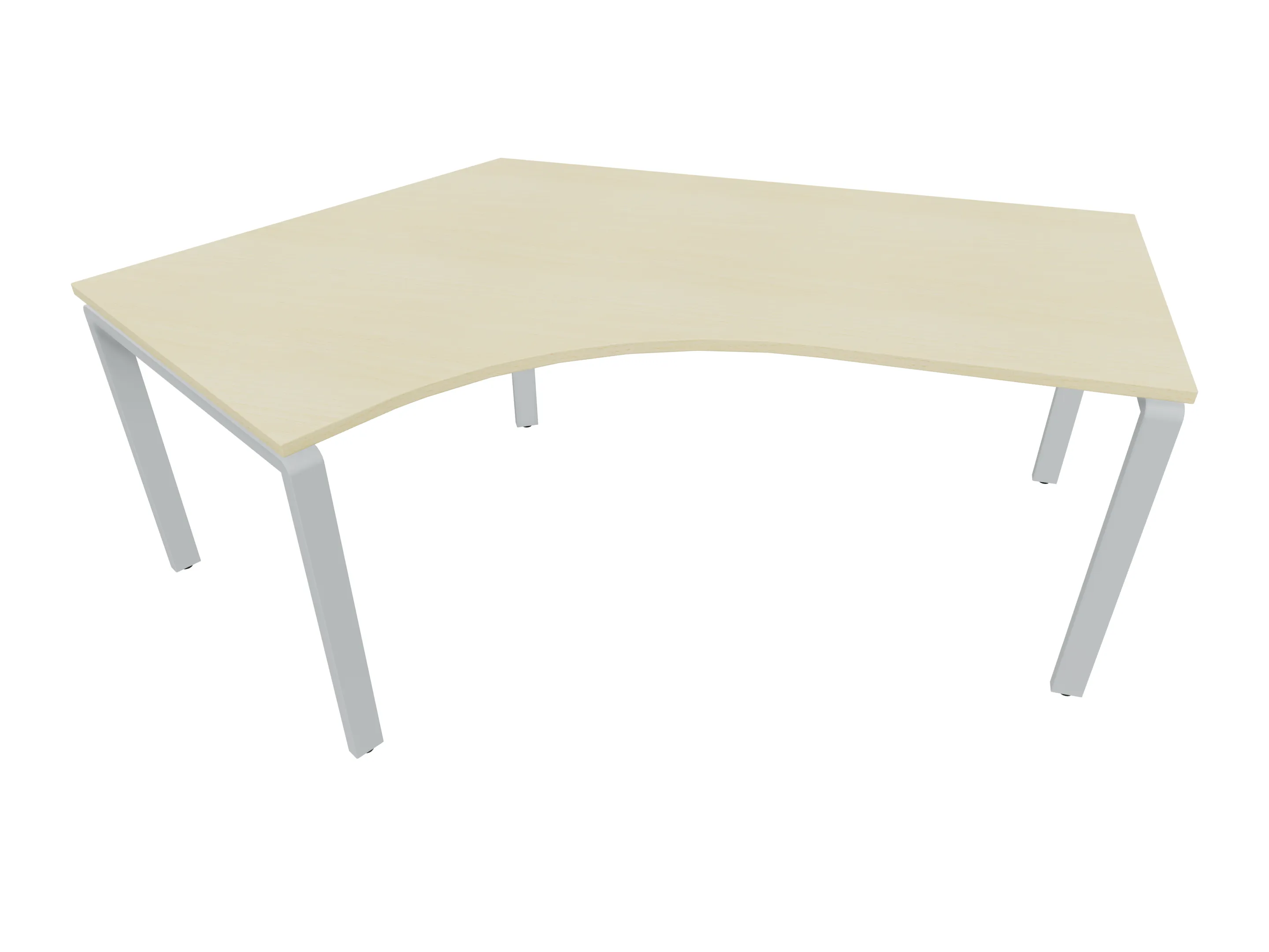Bureau met 2 poten (vaste hoogte 720mm), waarvan beide 800mm diep. Bureaublad is in een boog geplaatst. Afmeting is 1800 x 800mm.
