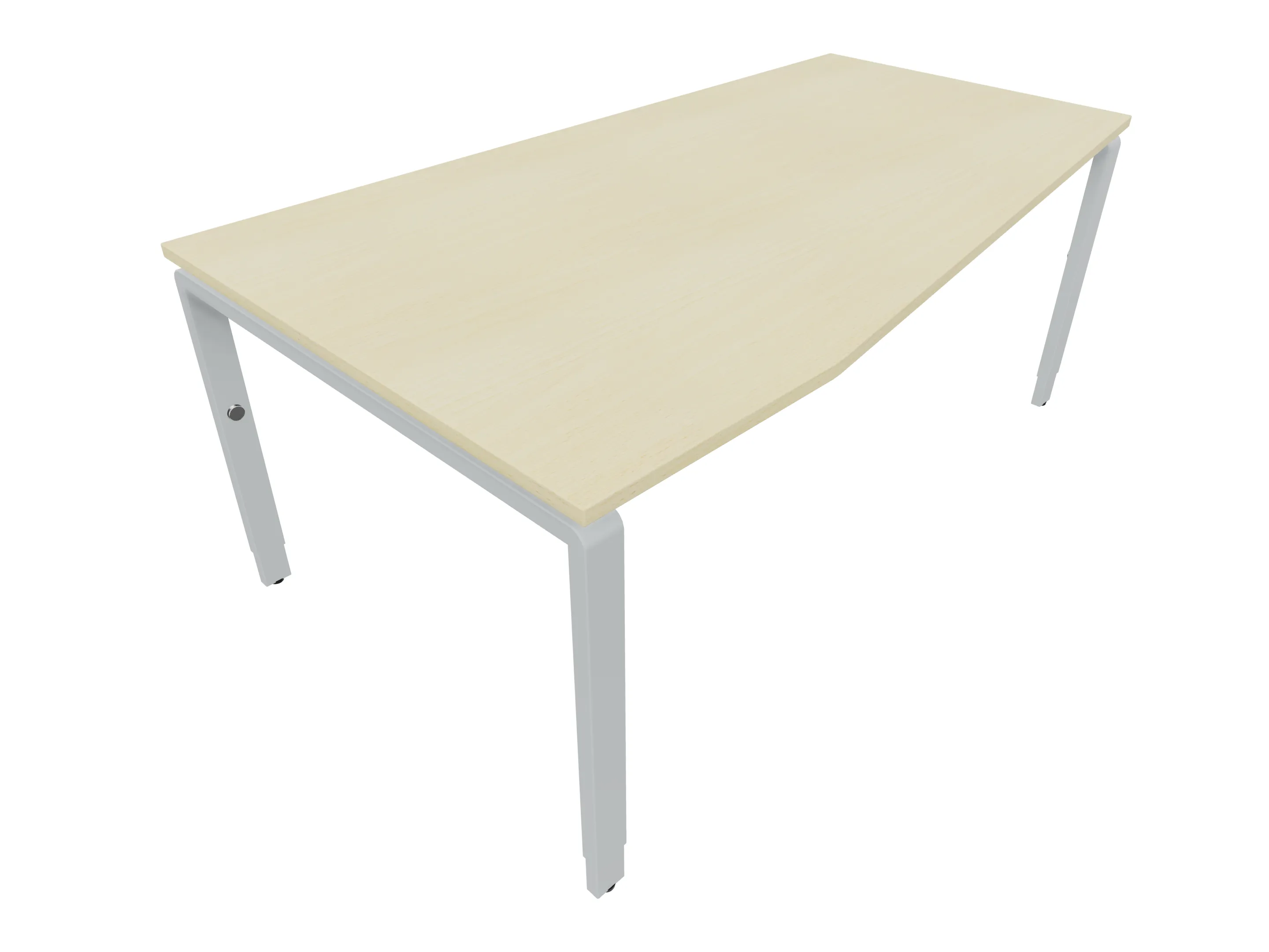 Bureau met 2 poten (vaste hoogte 720mm), waarvan de rechter 1000mm diep, de linker 800mm diep. Bureau heeft een rechte zitzijde, met een schuine zijde van 675mm. Afmeting: 1800 x 1000mm (BxD).