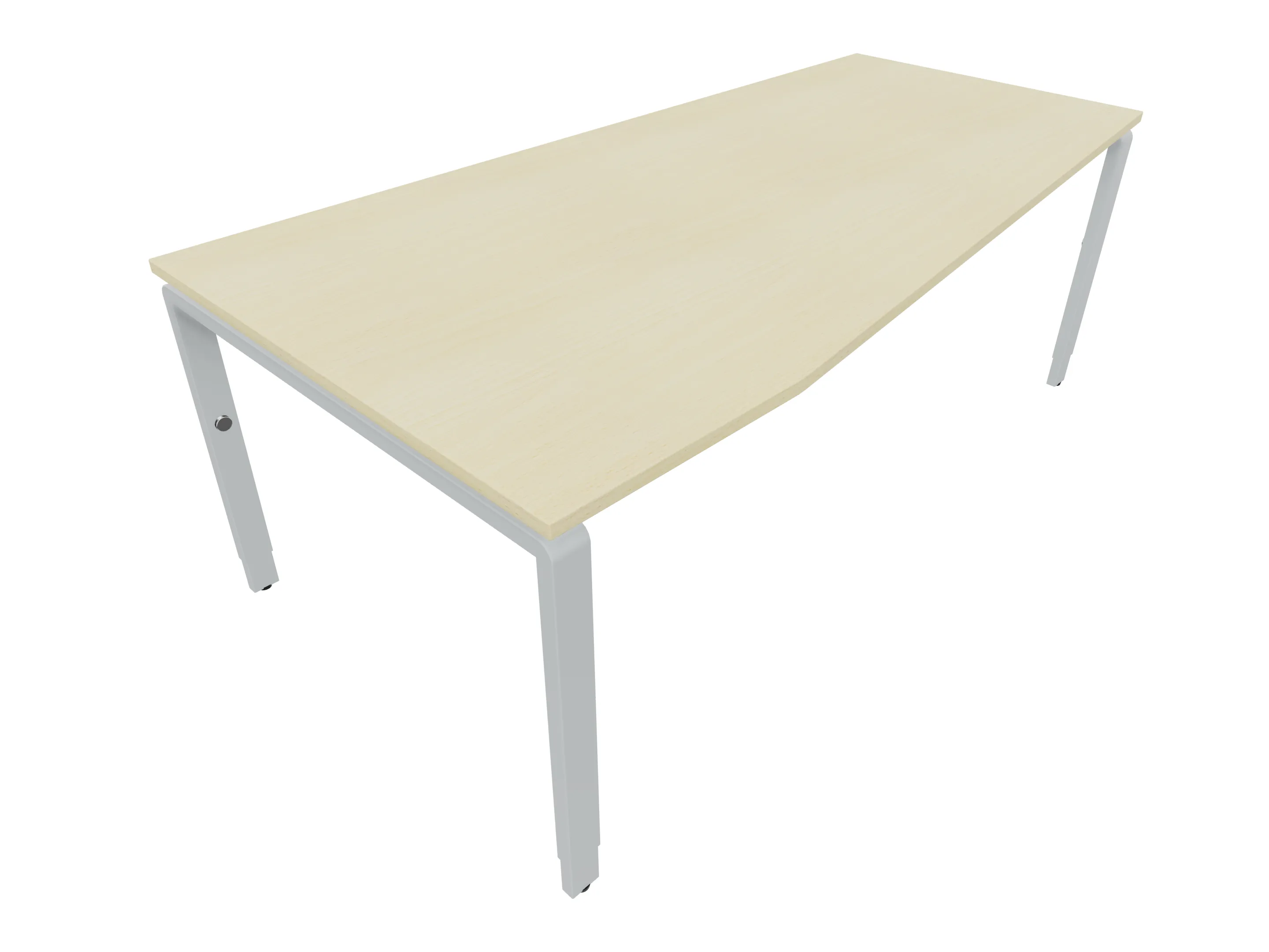 Bureau met 2 poten (vaste hoogte 720mm), waarvan de linker 1000mm diep, de rechter 800mm diep. Bureau heeft een rechte zitzijde, met een schuine zijde van 675mm. Afmeting: 2000 x 1000mm (BxD).