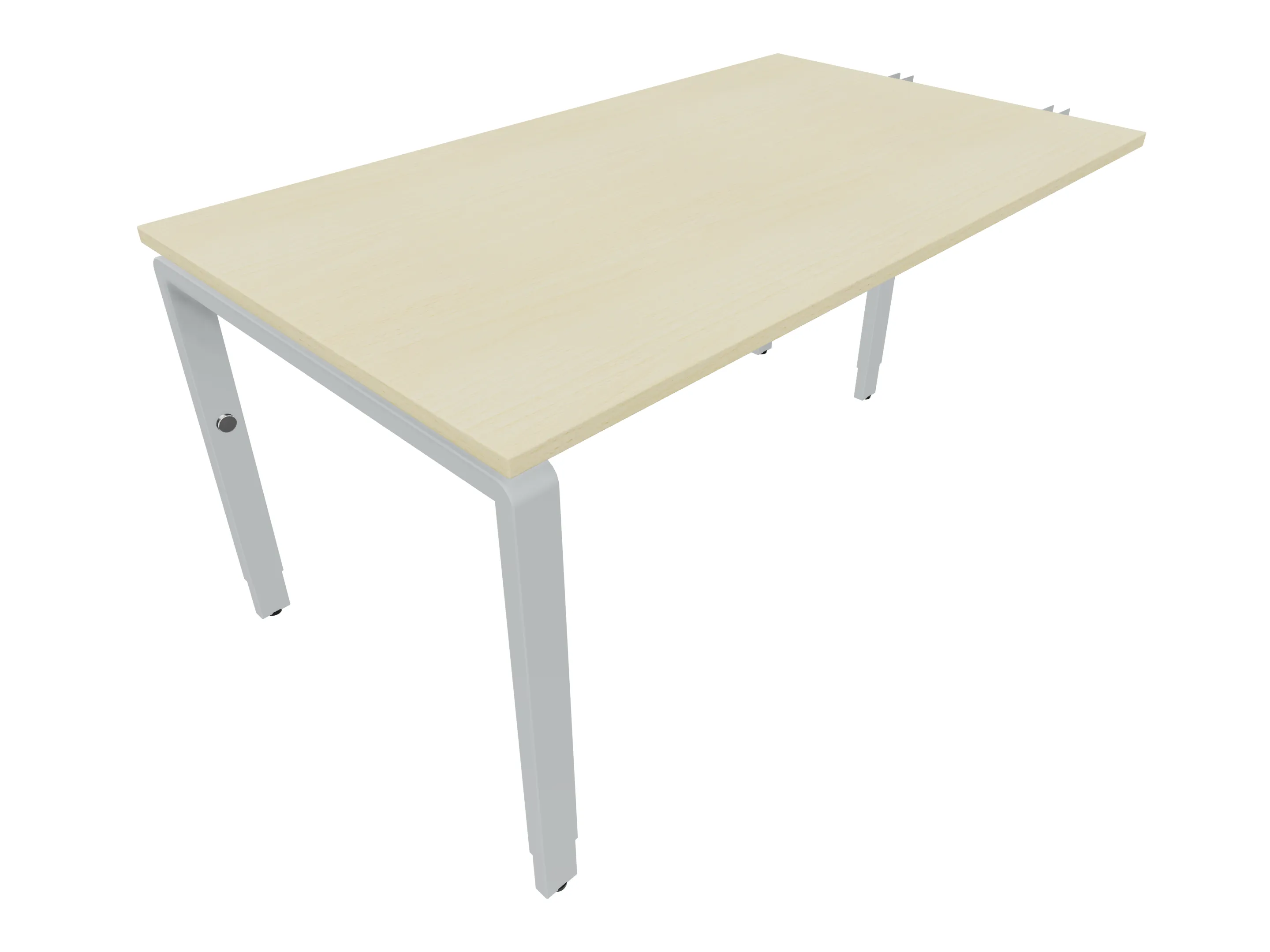 Bureau met 2 poten, waarvan de rechter is teruggeplaatst en koppelbaar (u-poot, hoogte instelbaar tussen 680-820mm d.m.v. "Easy-Push) in de afmeting: 1600 x 1000mm (BxD)