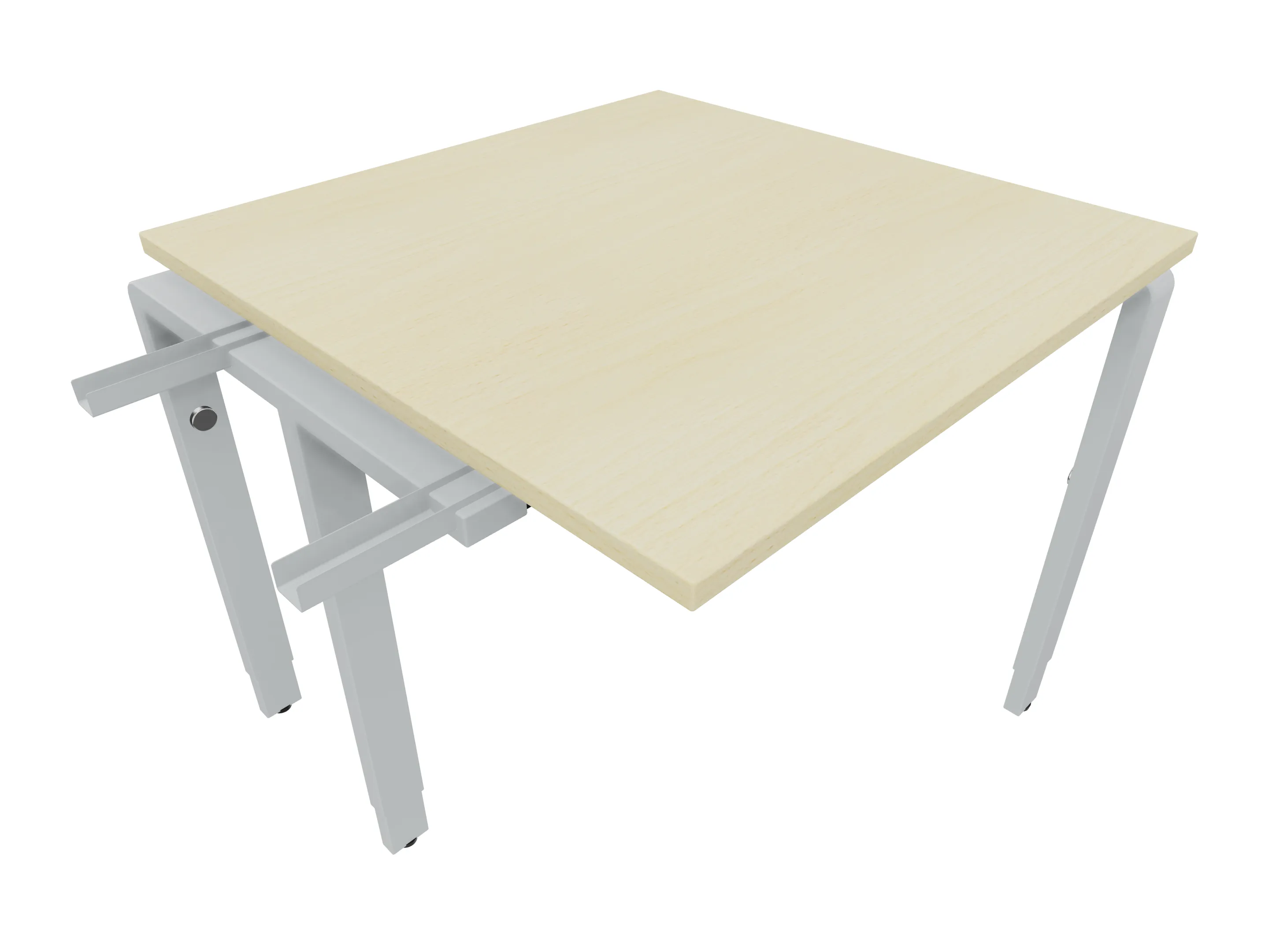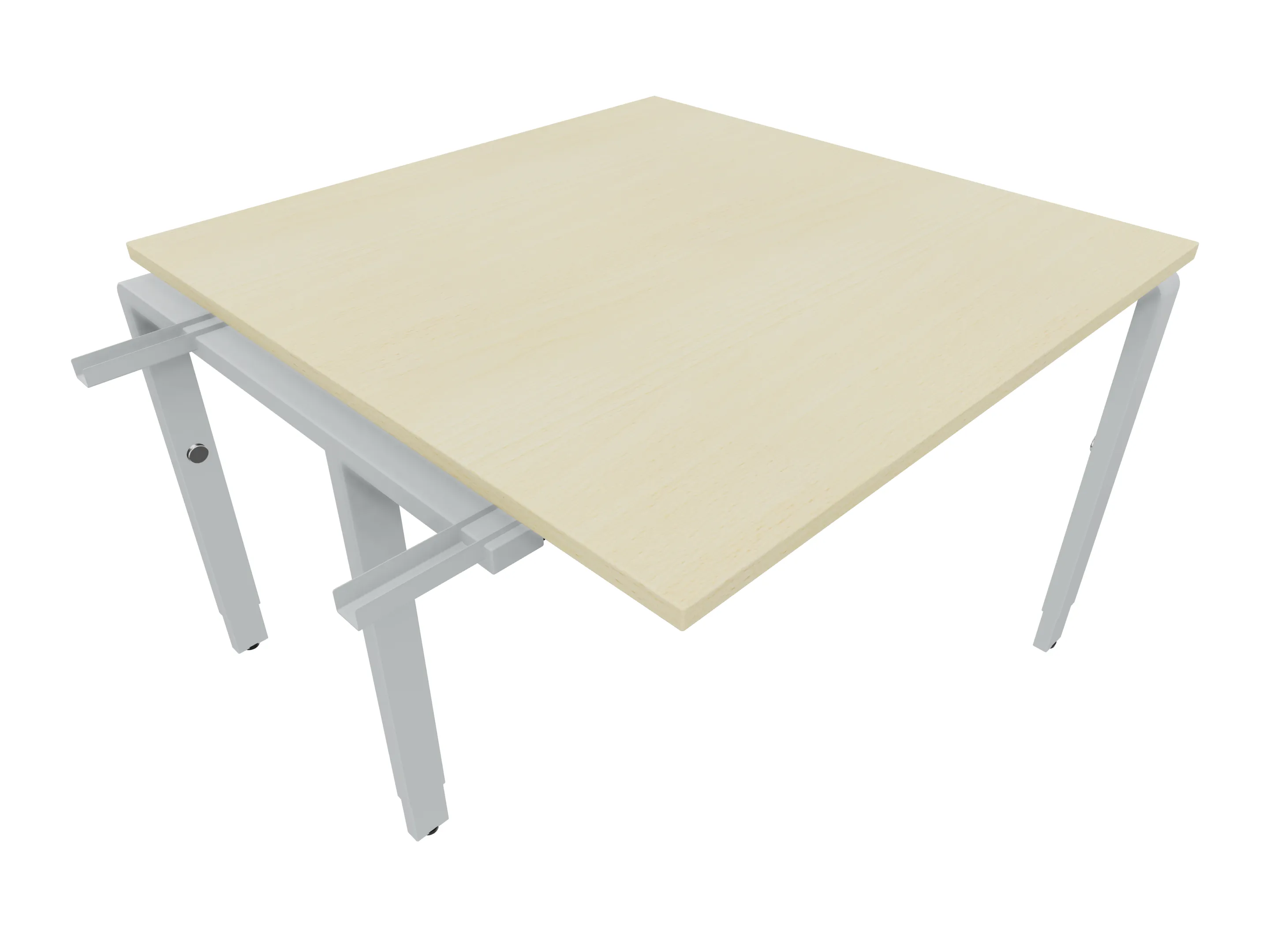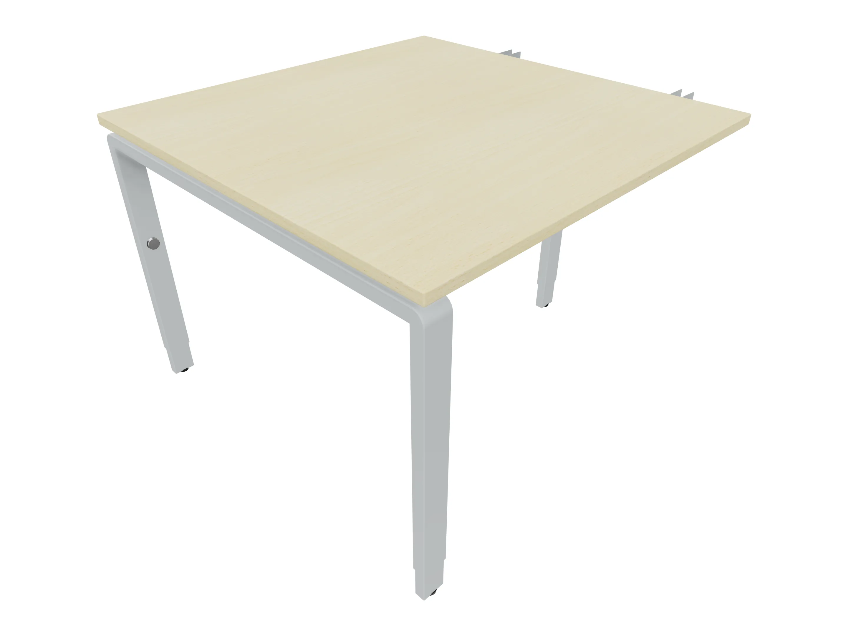 Bureau met 2 poten, waarvan de linker is teruggeplaatst en koppelbaar (u-poot, vaste hoogte 720mm) in de afmeting: 1000 x 1000mm (BxD)