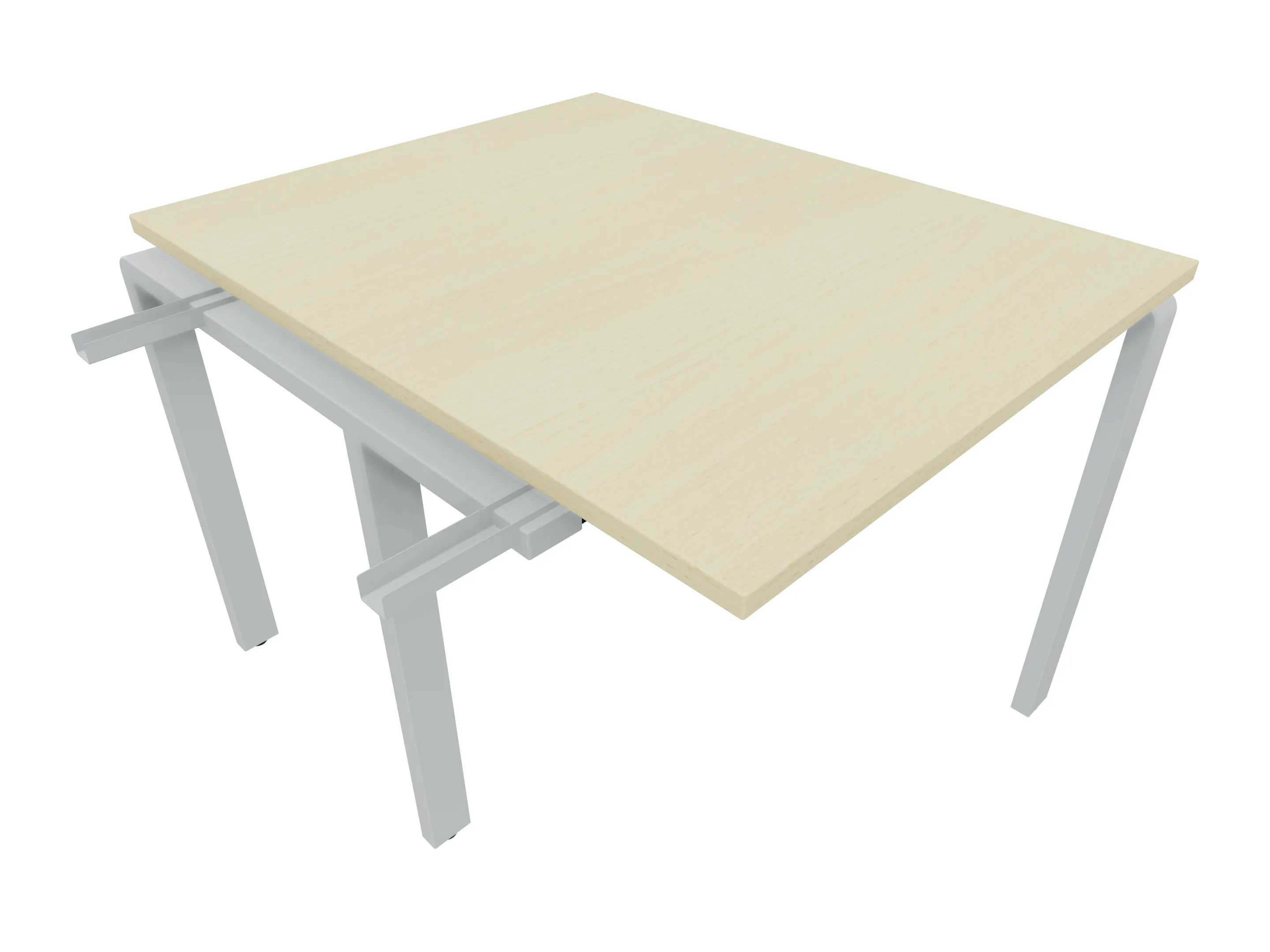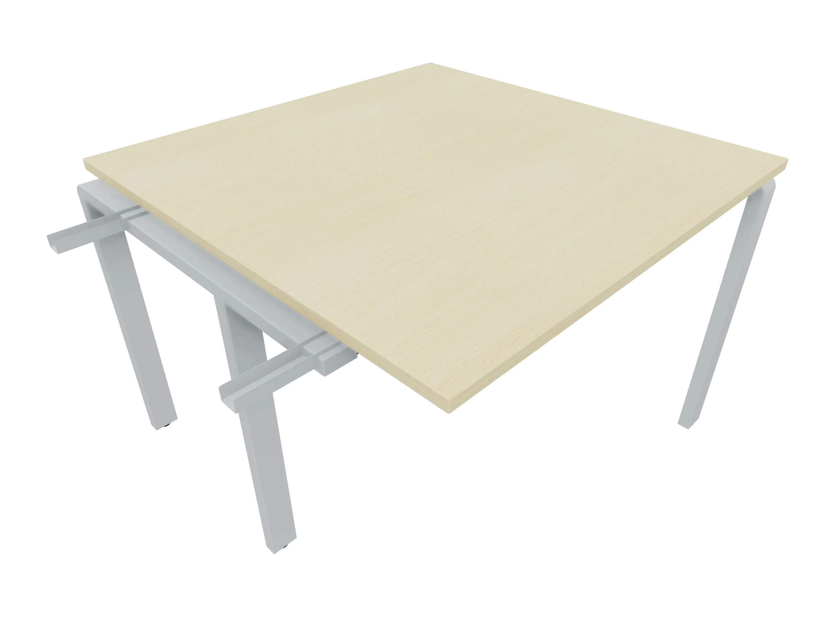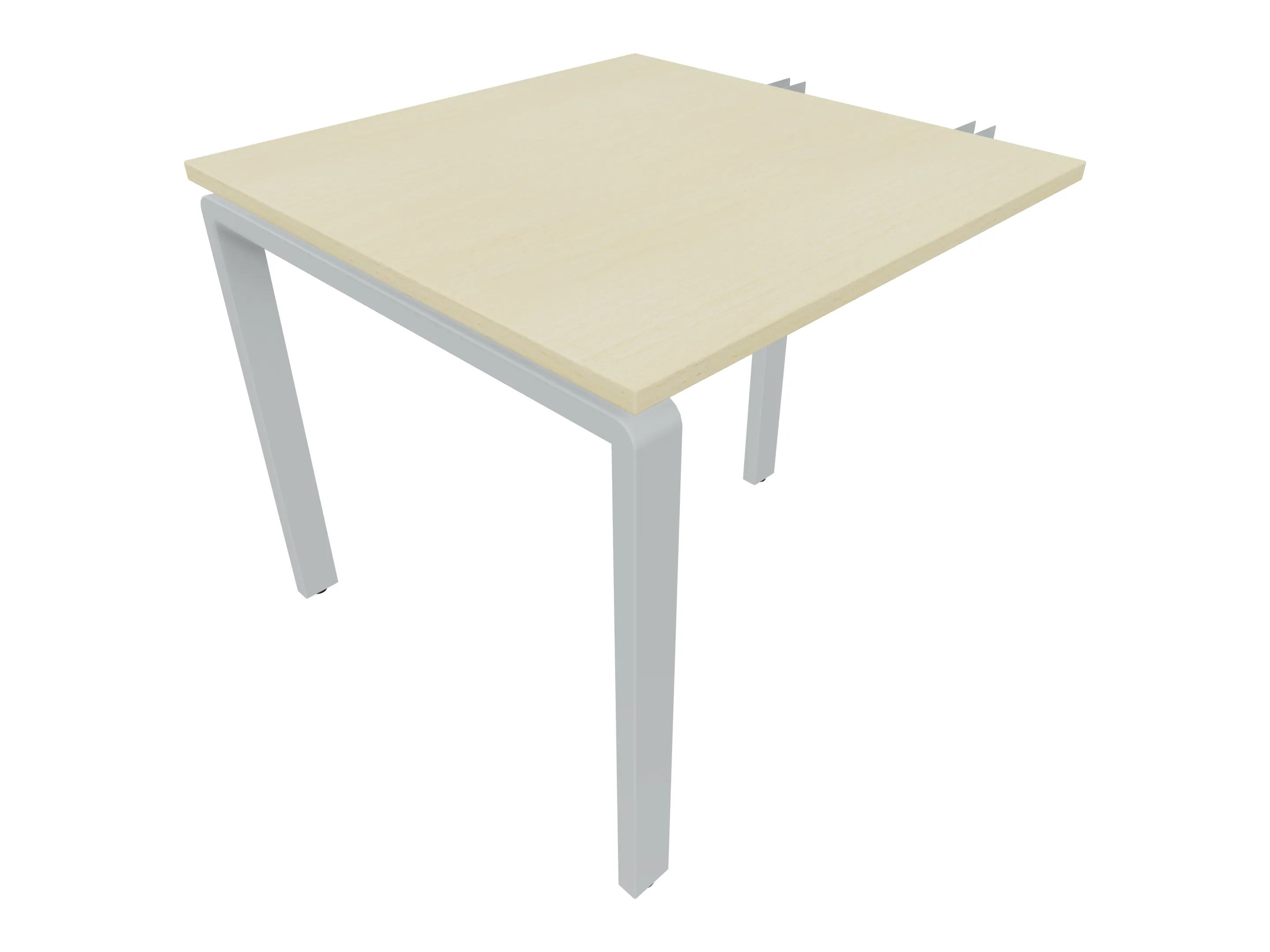 Bureau met 2 poten, waarvan de linker is teruggeplaatst en koppelbaar (u-poot, vaste hoogte 720mm) in de afmeting: 800 x 800mm (BxD)