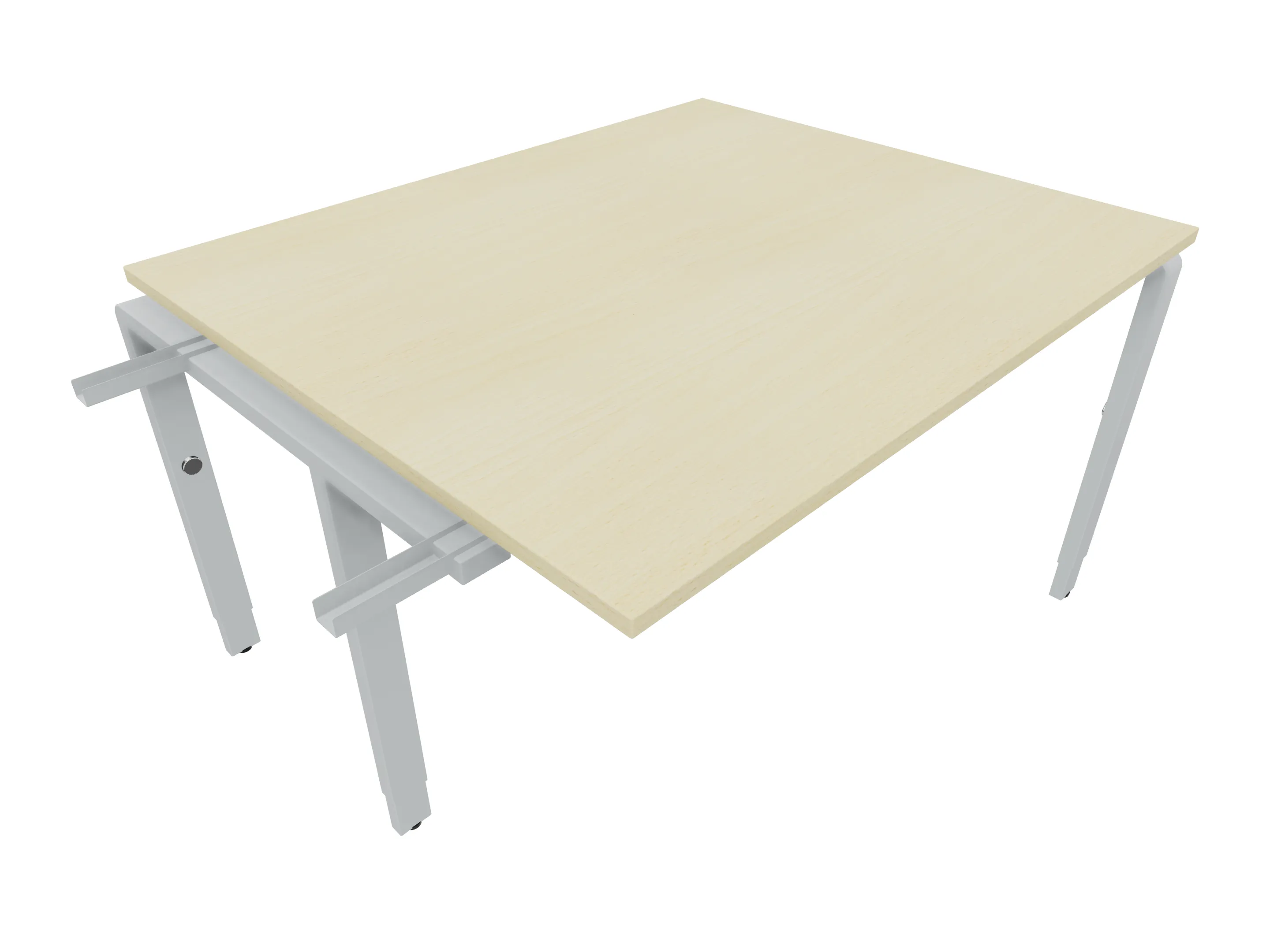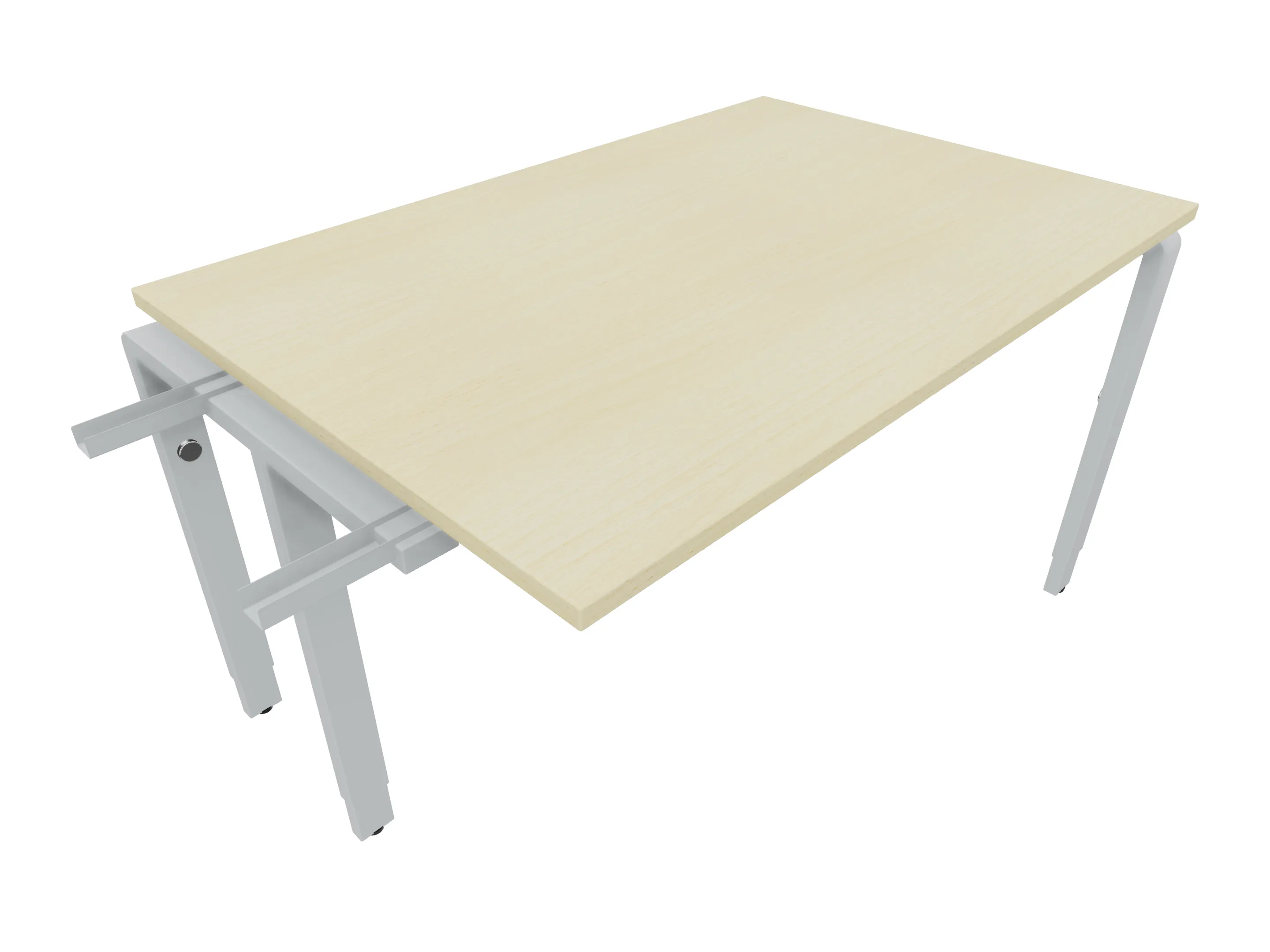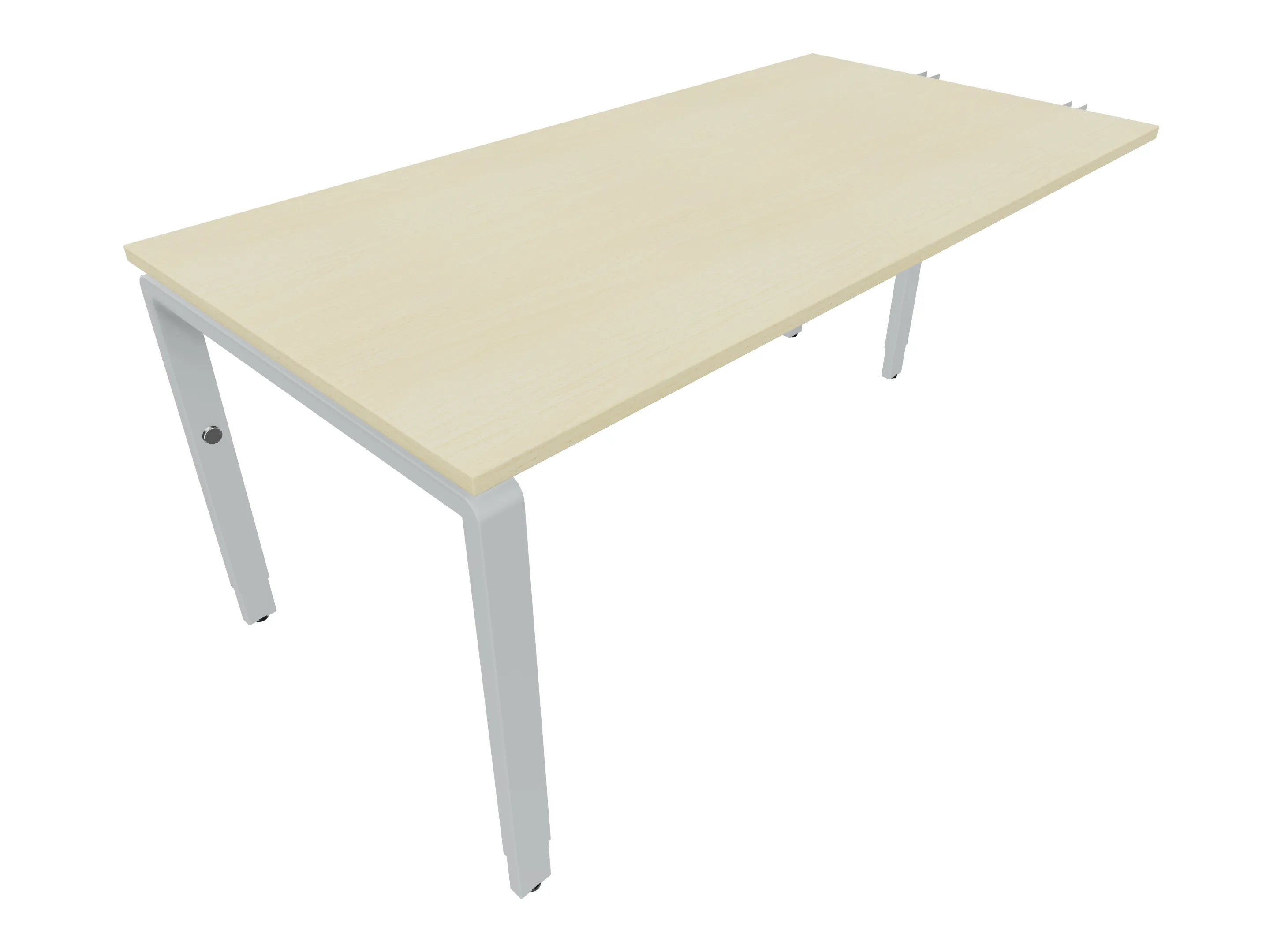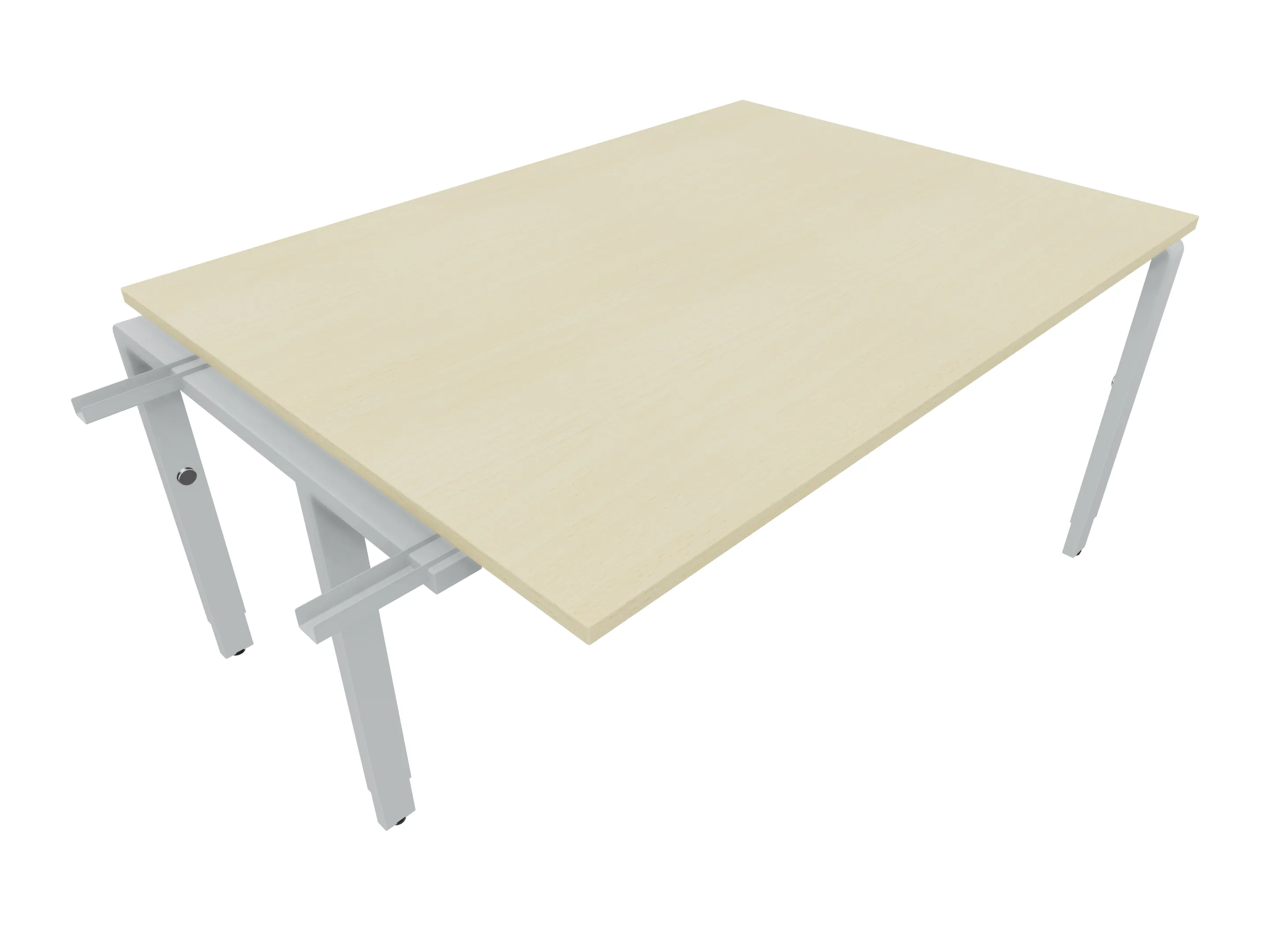 Bureau met 2 poten, waarvan de rechter is teruggeplaatst en koppelbaar (u-poot, hoogte instelbaar tussen 680-820mm d.m.v. "Easy-Push) in de afmeting: 1600 x 800mm (BxD)