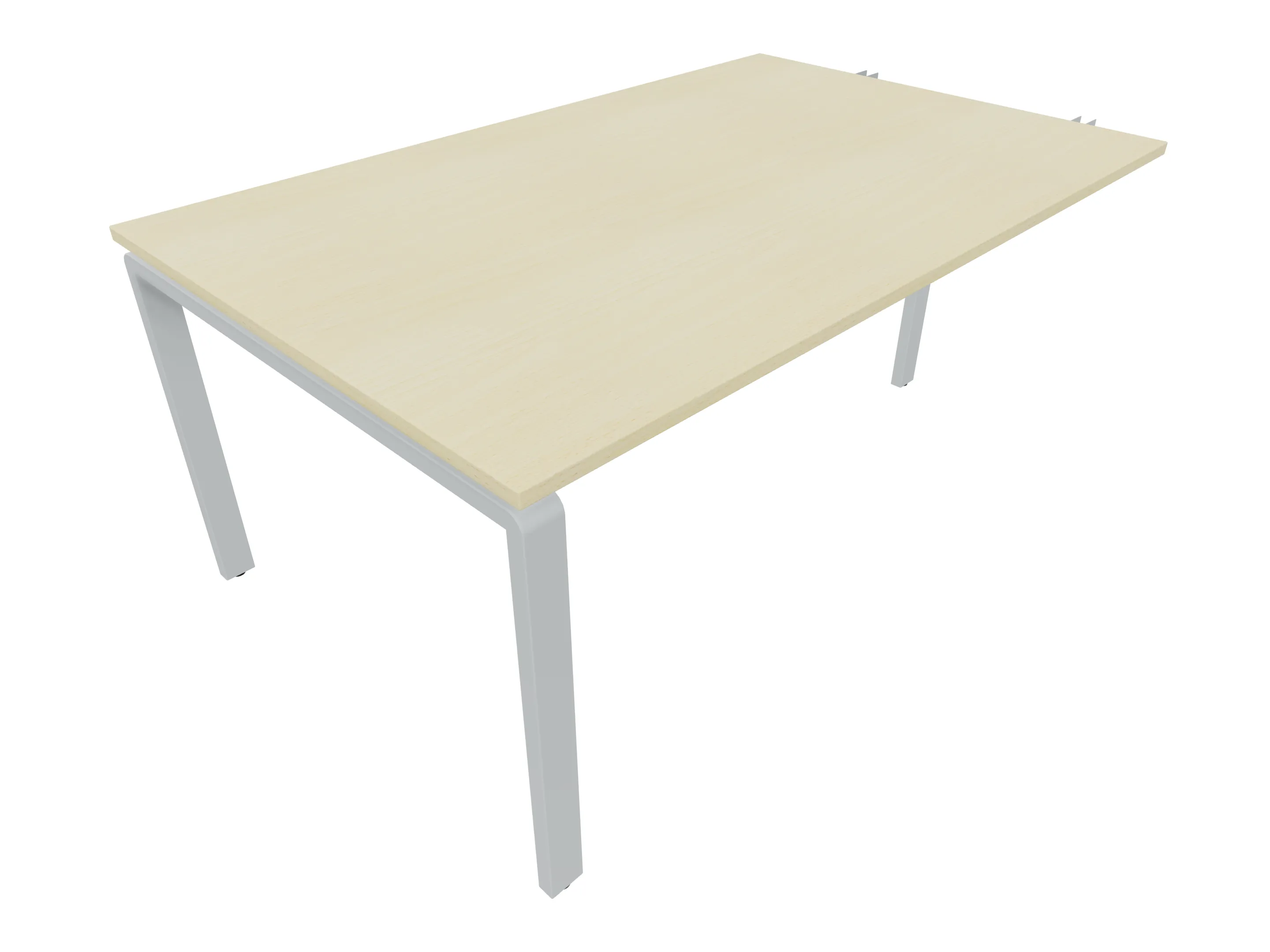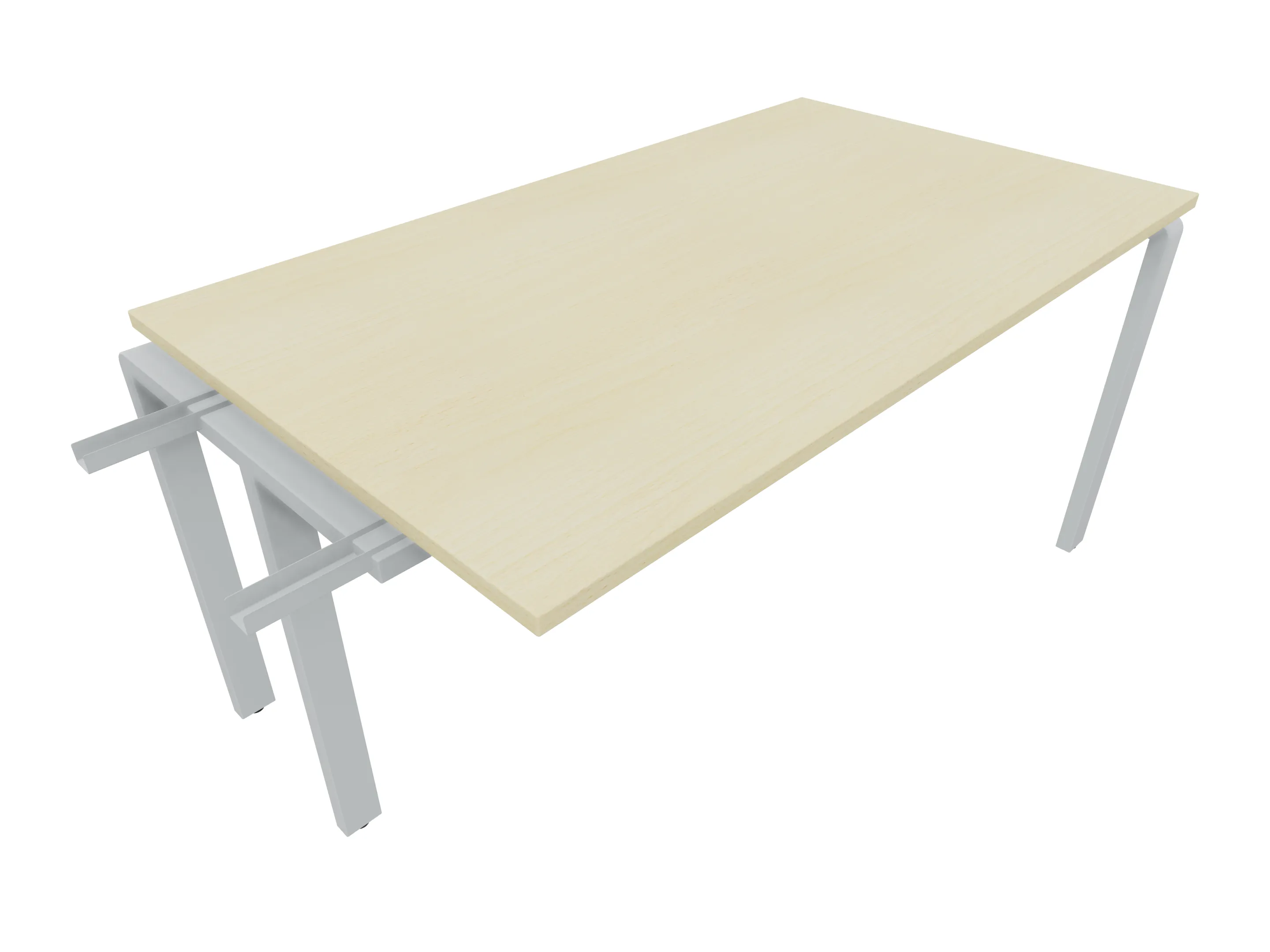 Bureau met 2 poten, waarvan de linker is teruggeplaatst en koppelbaar (u-poot, vaste hoogte 720mm) in de afmeting: 1600 x 800mm (BxD)