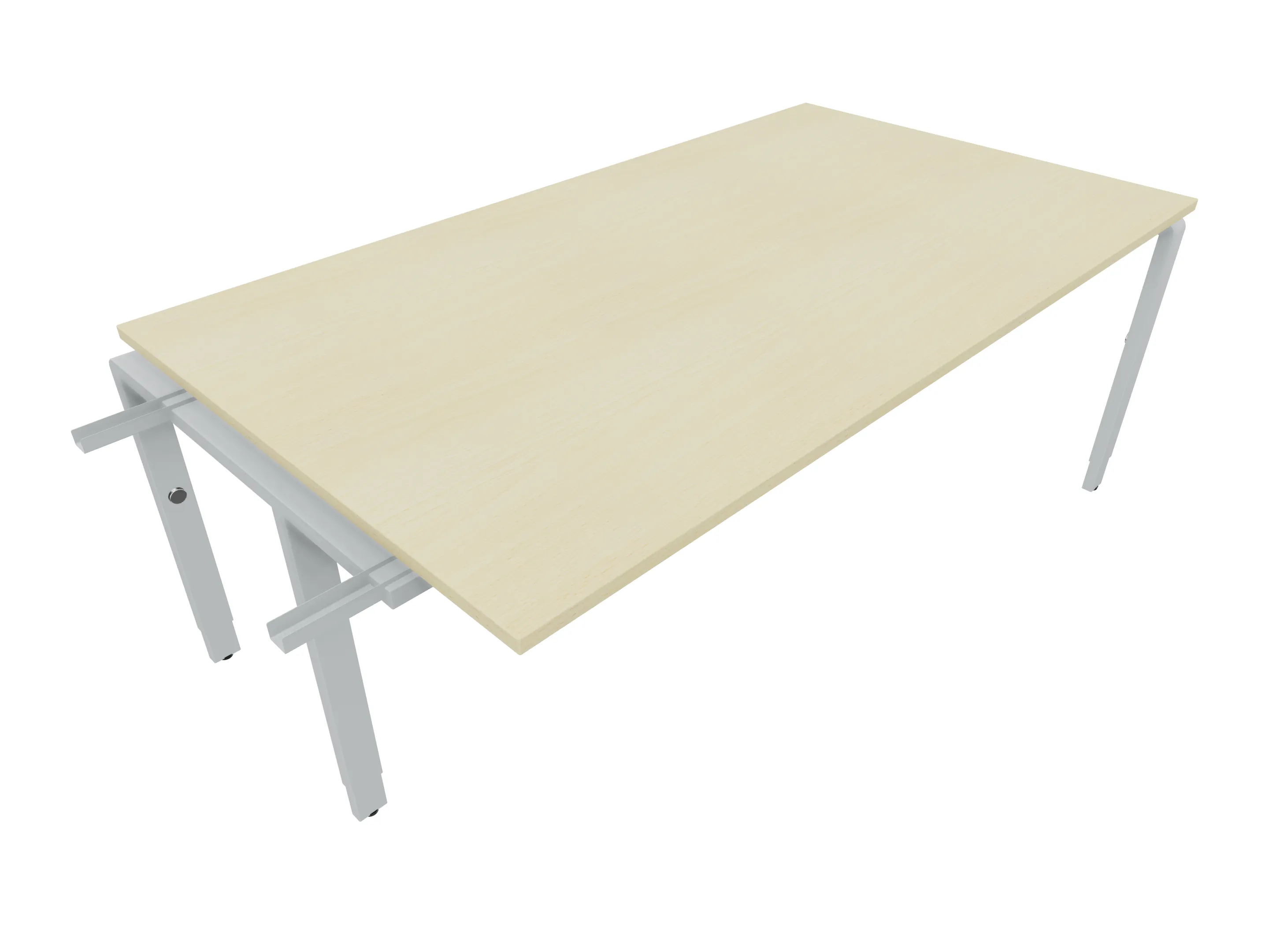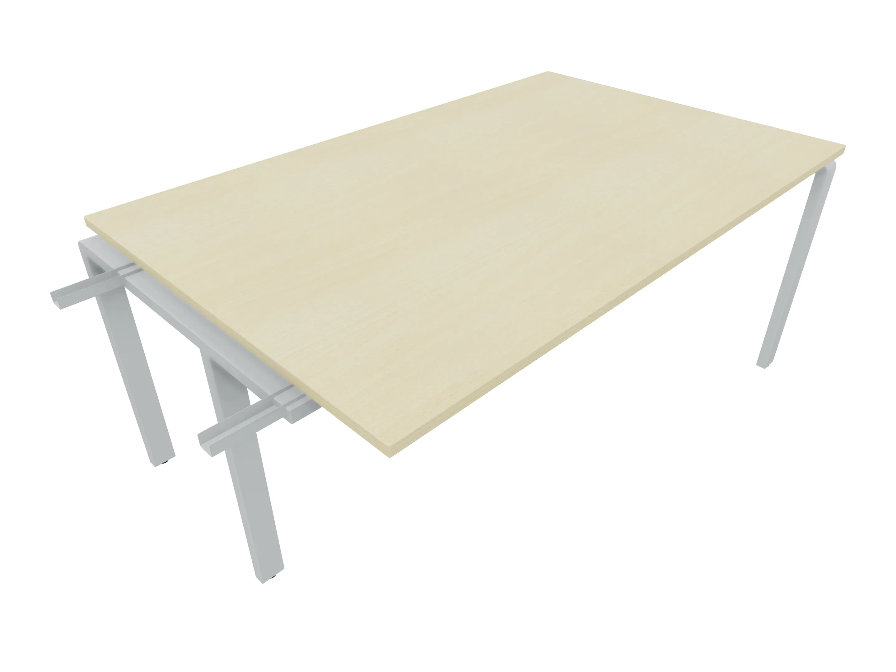 Bureau met 2 poten, waarvan de linker is teruggeplaatst en koppelbaar (u-poot, vaste hoogte 720mm) in de afmeting: 2000 x 1000mm (BxD)
