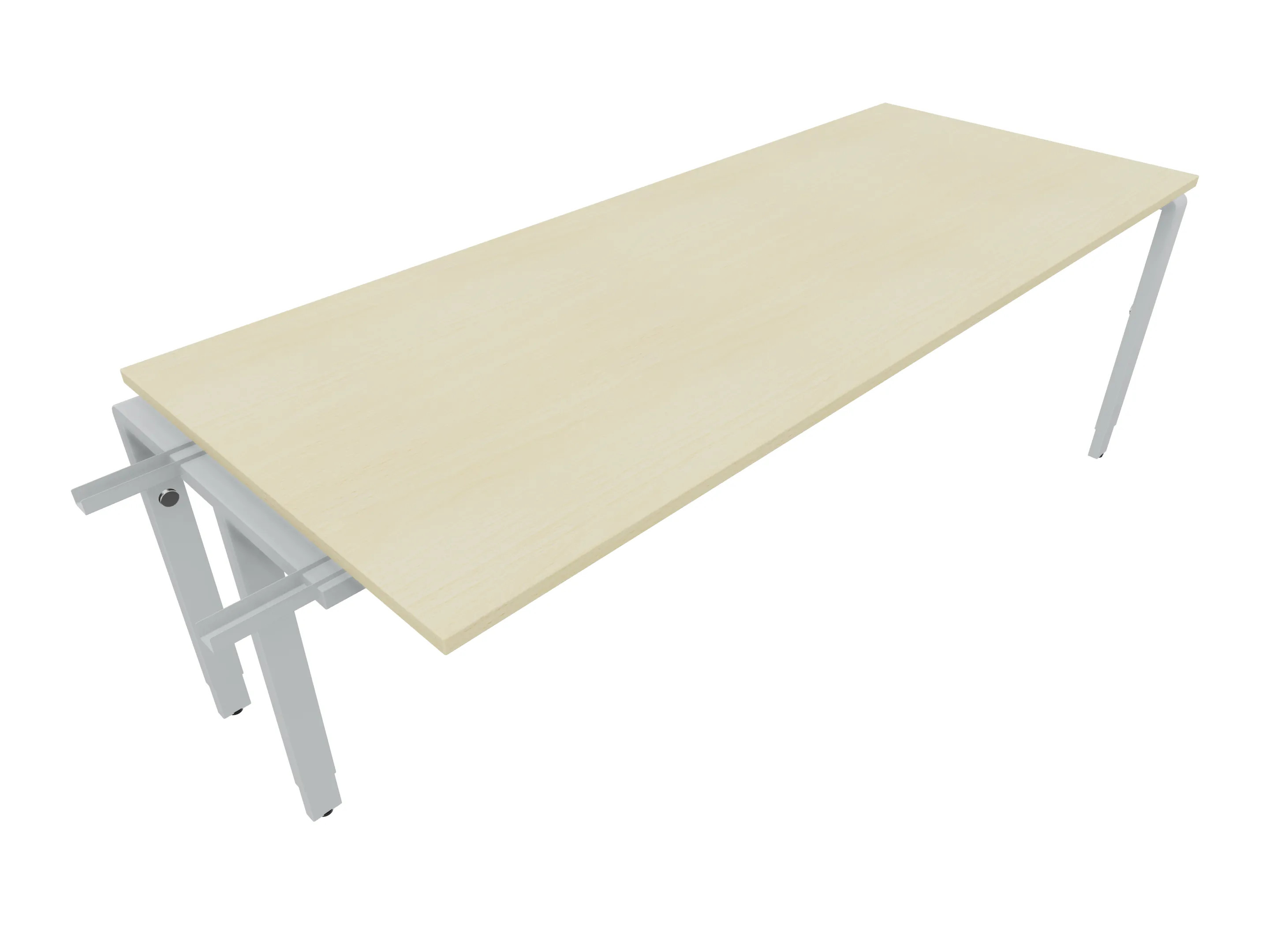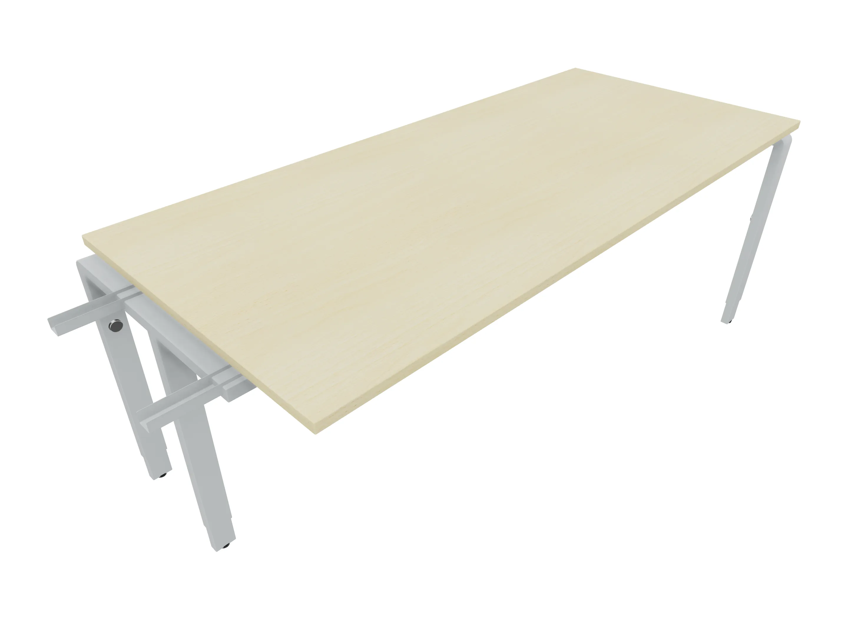 Bureau met 2 poten, waarvan de rechter is teruggeplaatst en koppelbaar (u-poot, hoogte instelbaar tussen 680-820mm d.m.v. "Easy-Push) in de afmeting: 2000 x 1000mm (BxD)