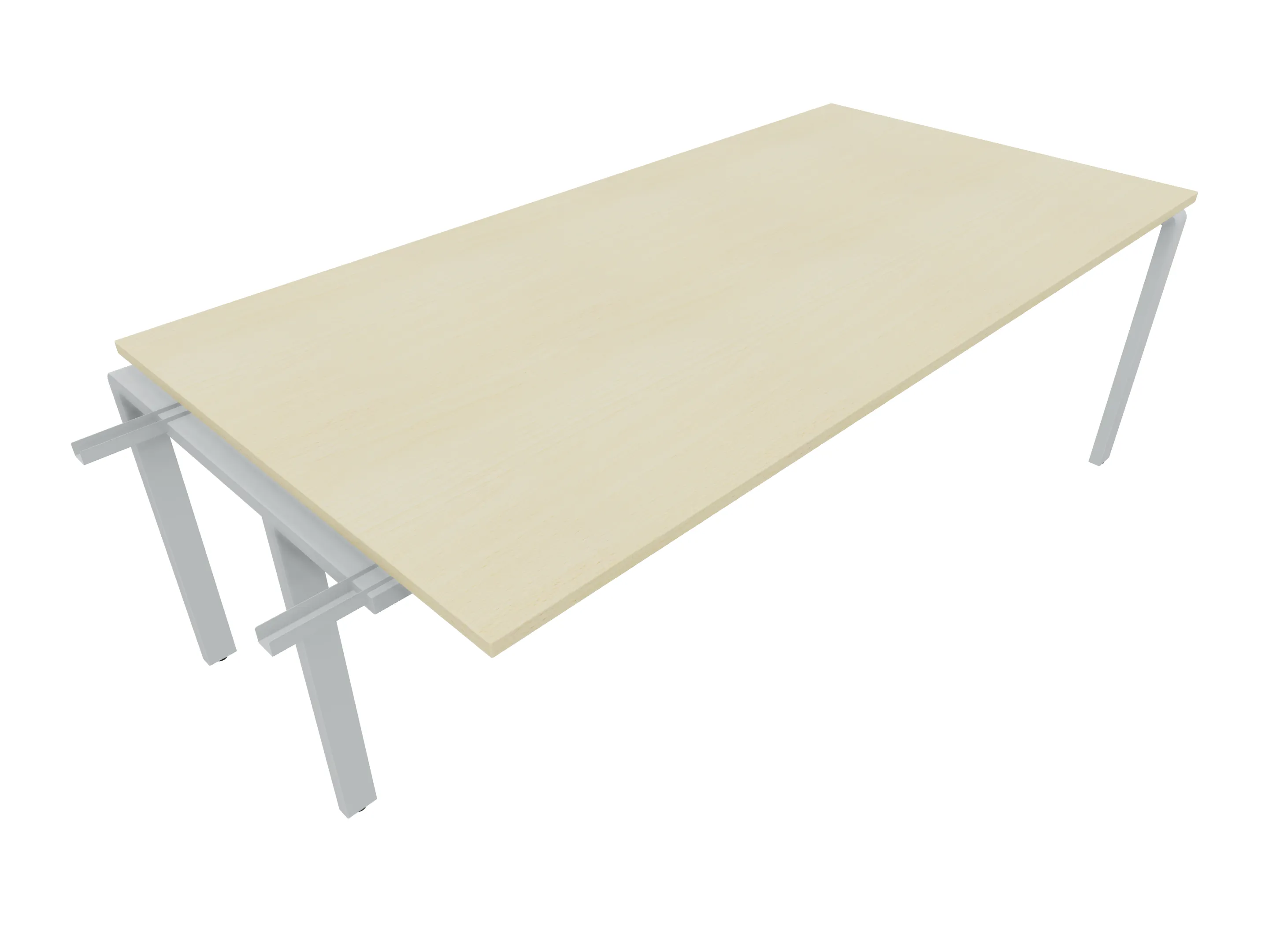 Bureau met 2 poten, waarvan de rechter is teruggeplaatst en koppelbaar (u-poot, vaste hoogte 720mm) in de afmeting: 2000 x 1000mm (BxD)