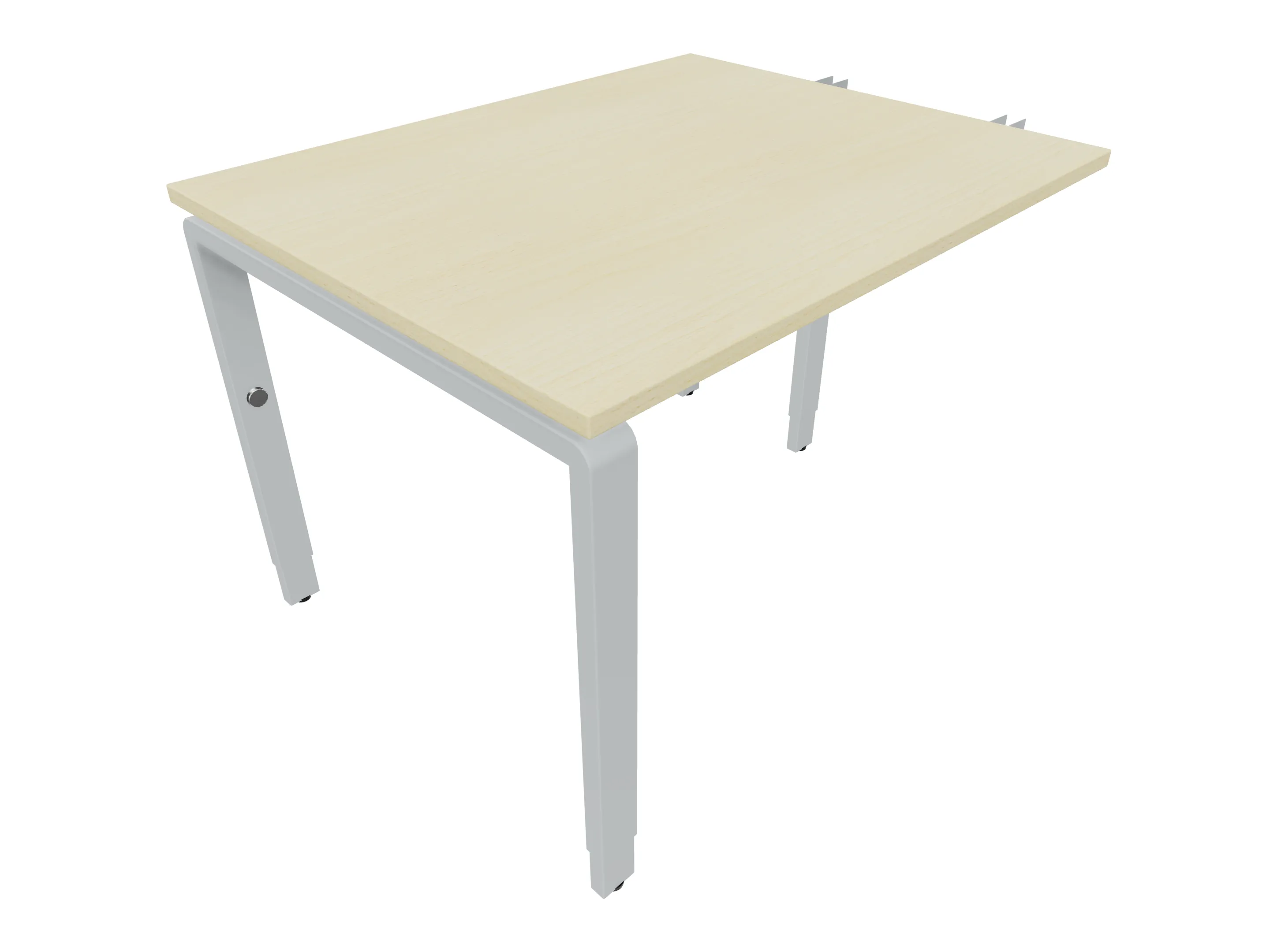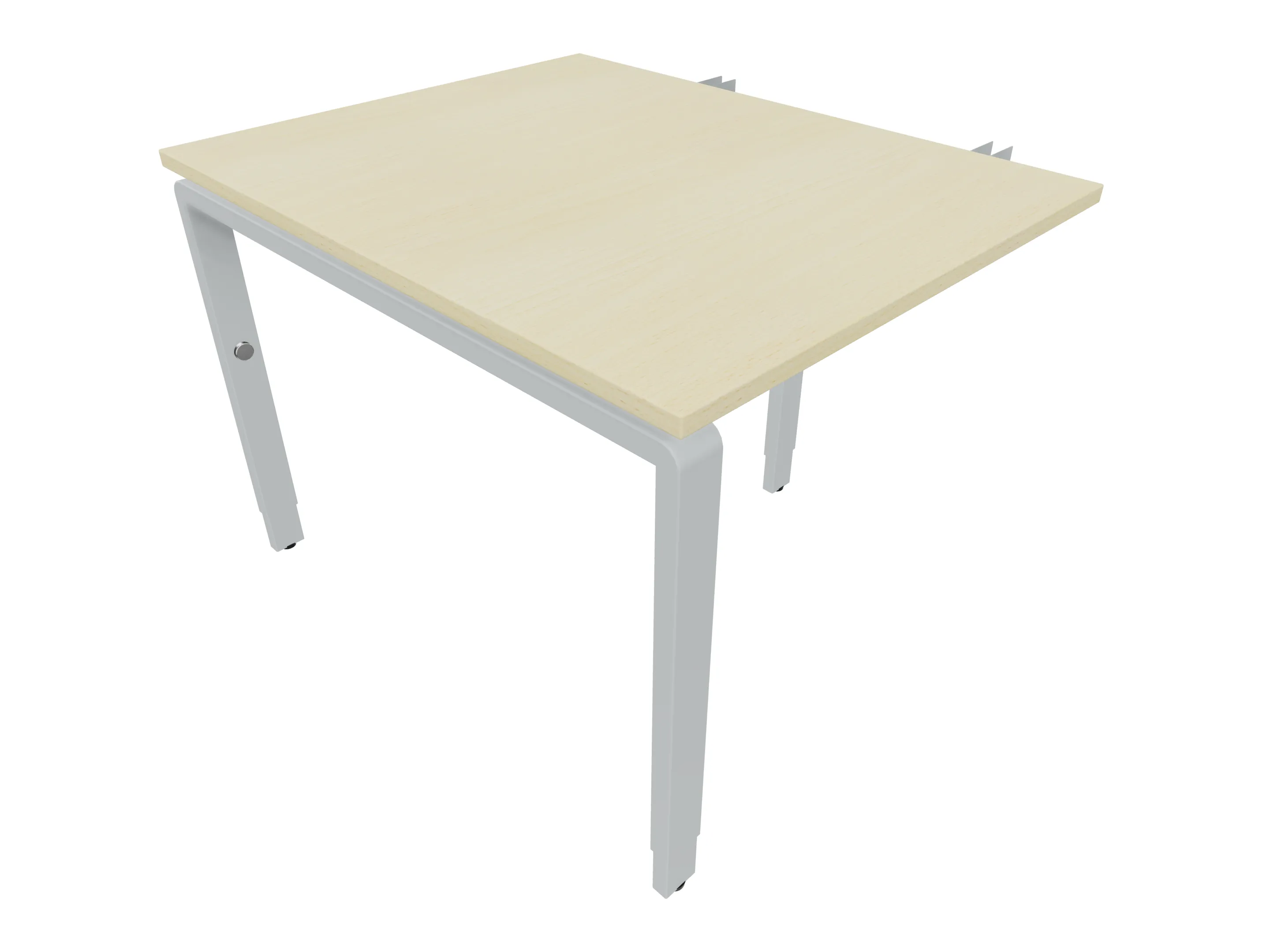 Bureau met 2 poten, waarvan de rechter is teruggeplaatst en koppelbaar (u-poot, hoogte instelbaar tussen 680-820mm d.m.v. "Easy-Push) in de afmeting: 1000 x 800mm (BxD)