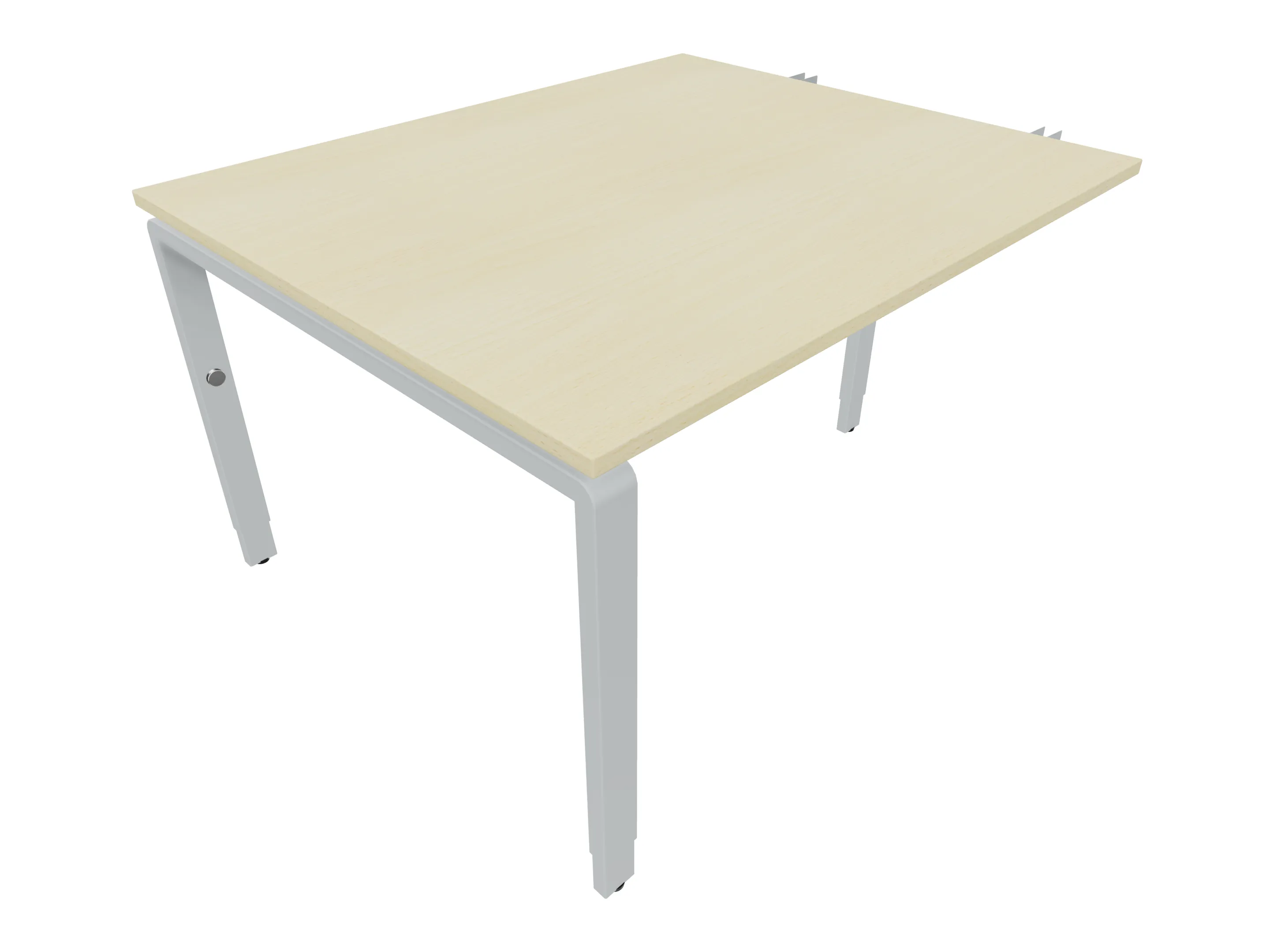 Bureau met 2 poten, waarvan de rechter is teruggeplaatst en koppelbaar (u-poot, hoogte instelbaar tussen 680-820mm d.m.v. "Easy-Push) in de afmeting: 1200 x 800mm (BxD)