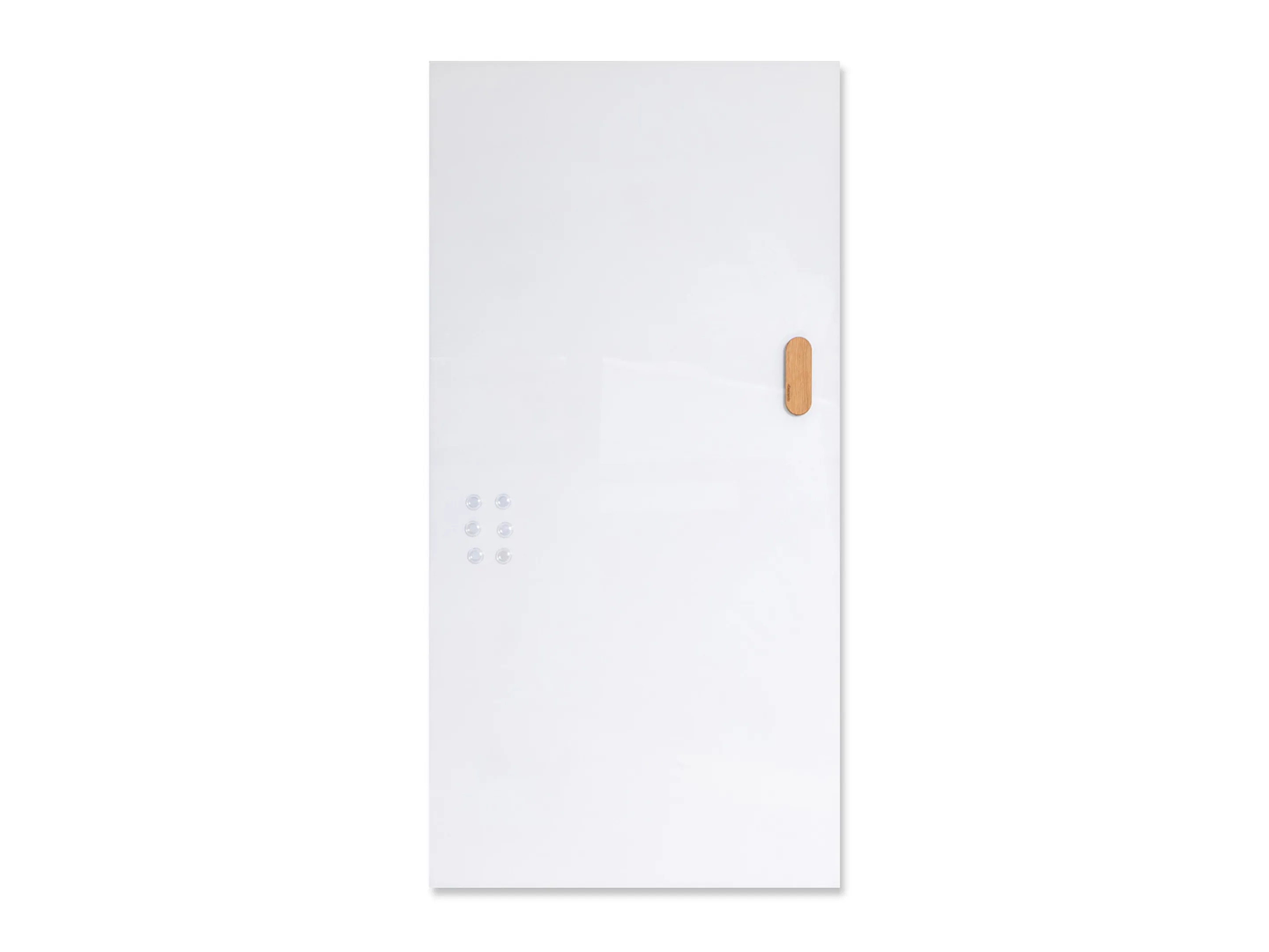 Whiteboard van glas, in kleur wit met rechte hoeken. Het bord is magentisch geschikt voor wandmontage. Afmeting: 800 x 1600mm (BxH).