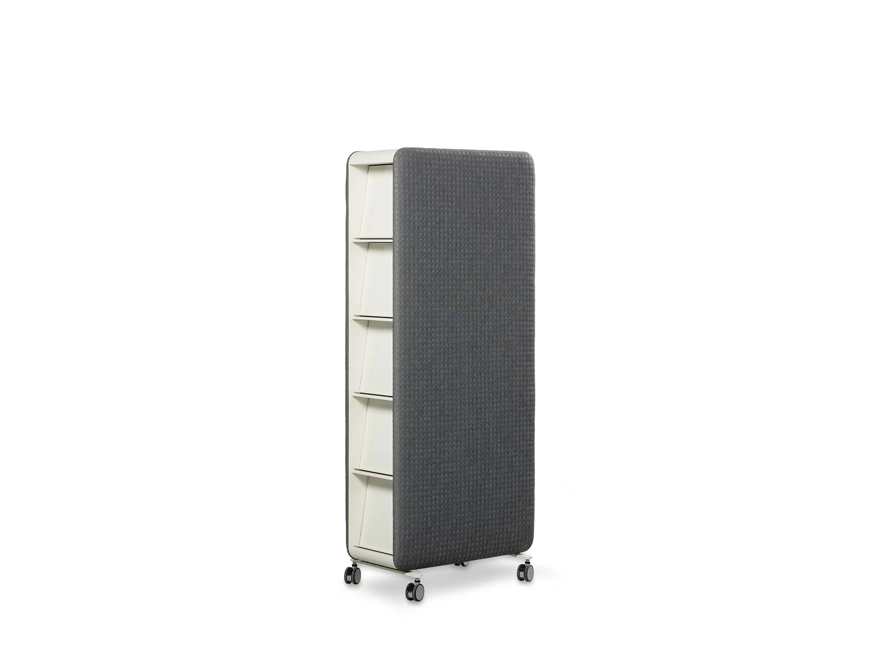 Verrijdbare roomdivider als basis model (leeg), incl wielen. Akoestische afwerking is premium. Afmeting: 400 x 790 x 880 (BxDxH).