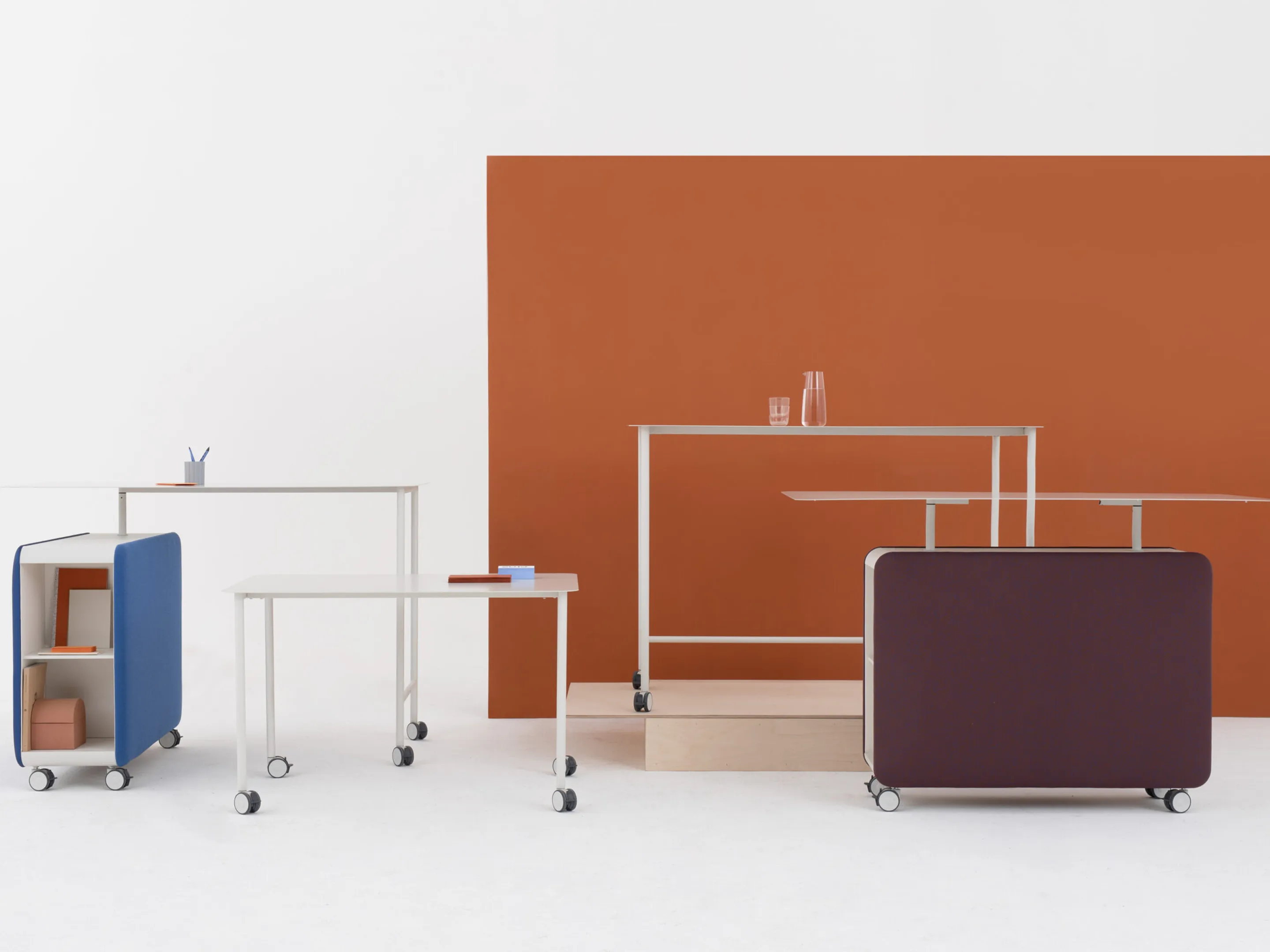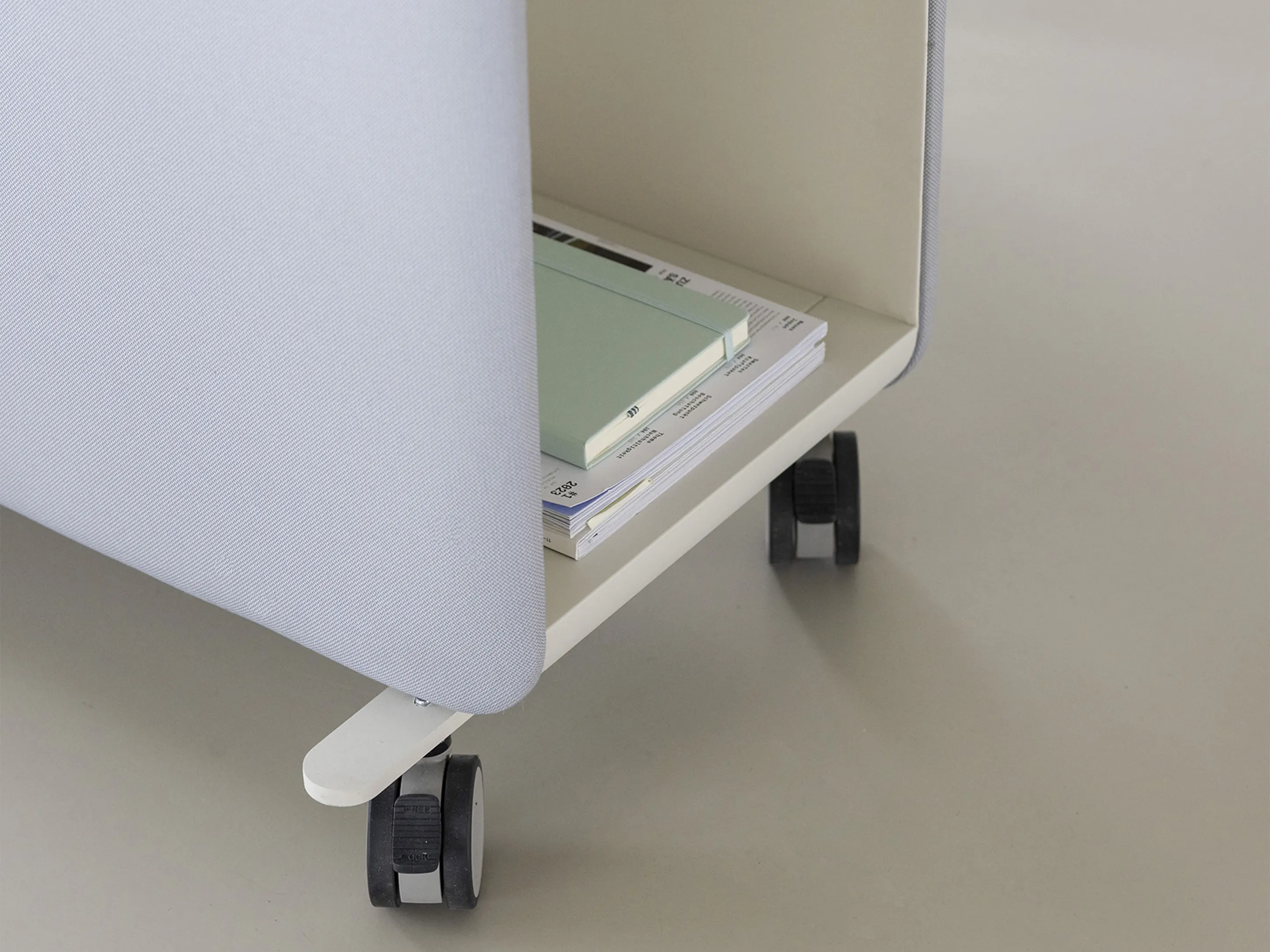 Verrijdbare roomdivider als basis model (leeg), incl wielen. Akoestische afwerking is standaard. Afmeting: 400 x 790 x 880 (BxDxH).