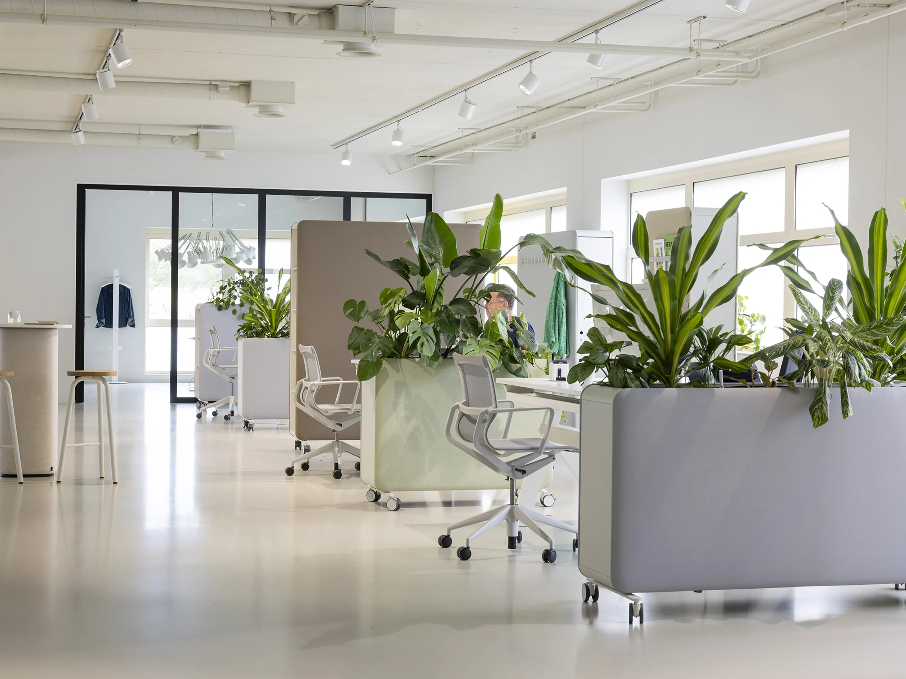 Verrijdbare roomdivider als basis model (leeg), incl wielen. Akoestische afwerking is premium. Afmeting: 500 x 1600 x 1920 (BxDxH).