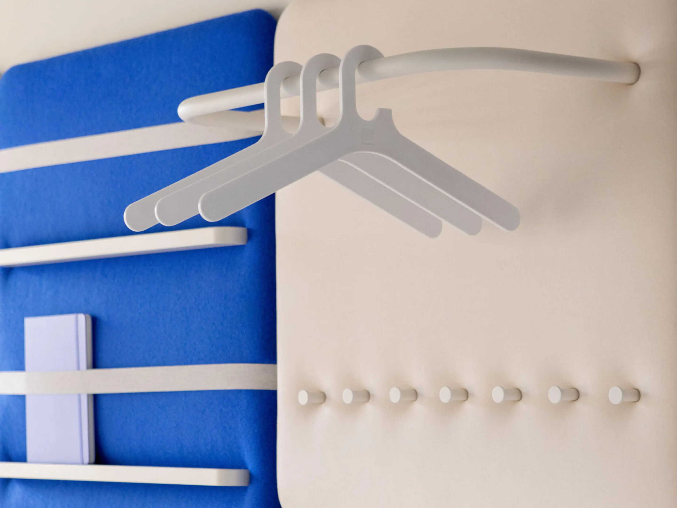 Pillow Wall Akoestisch Wandpaneel - 800 x 1600mm, 14 jashaken en 2 kleine garderobestangen