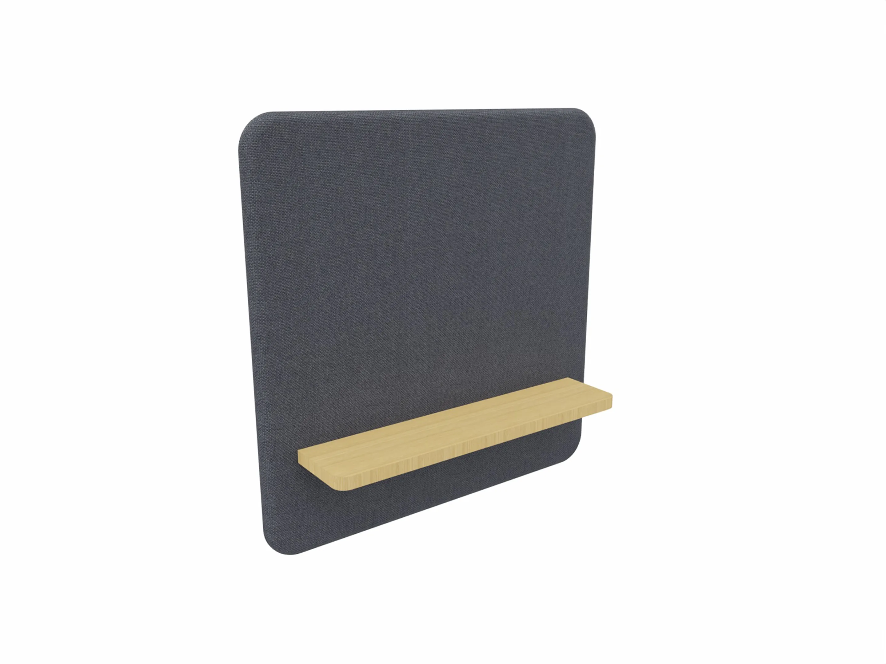 Akoestisch wandpaneel met een aflegplank, in "standaard akoestische uitvoering", in de afmeting: 800 x 800mm (BxH).