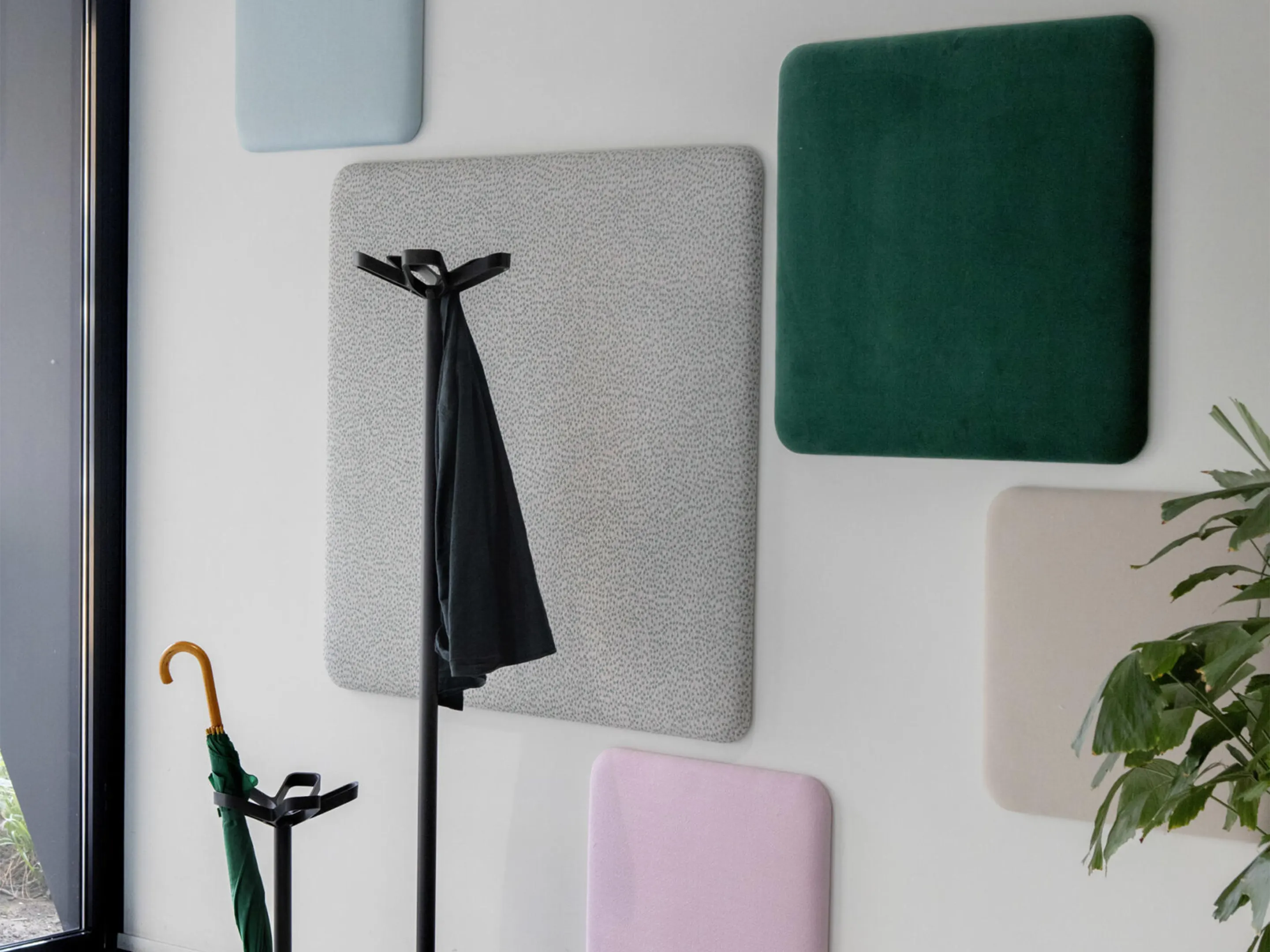 Pillow Wall Akoestisch Wandpaneel - 800 x 800mm, 7 jashaken en garderobestang