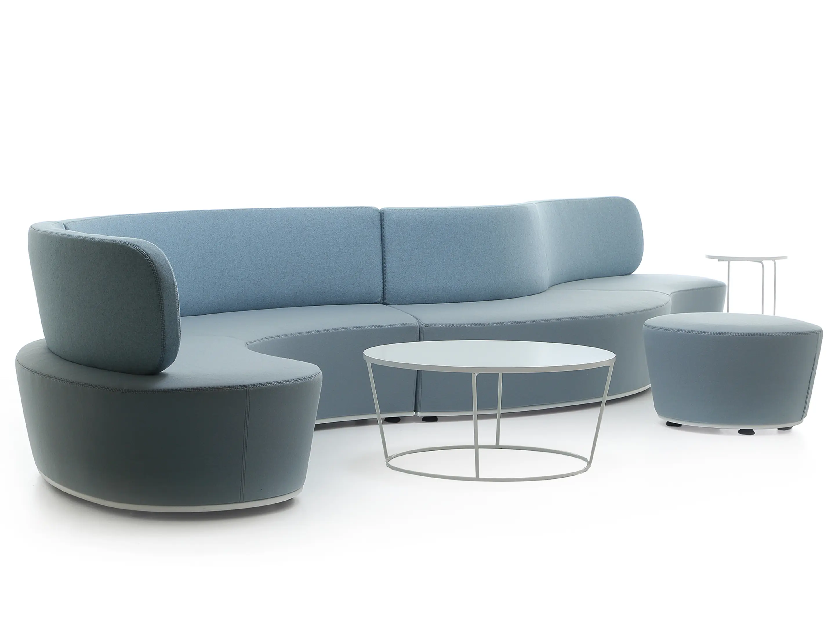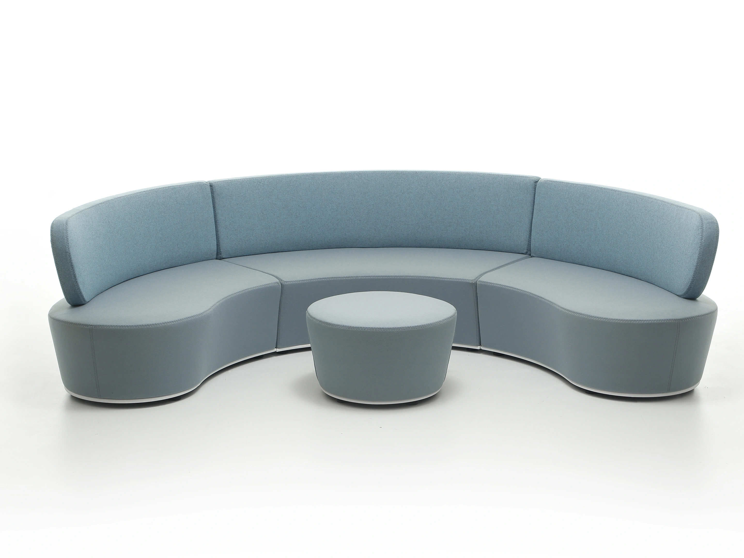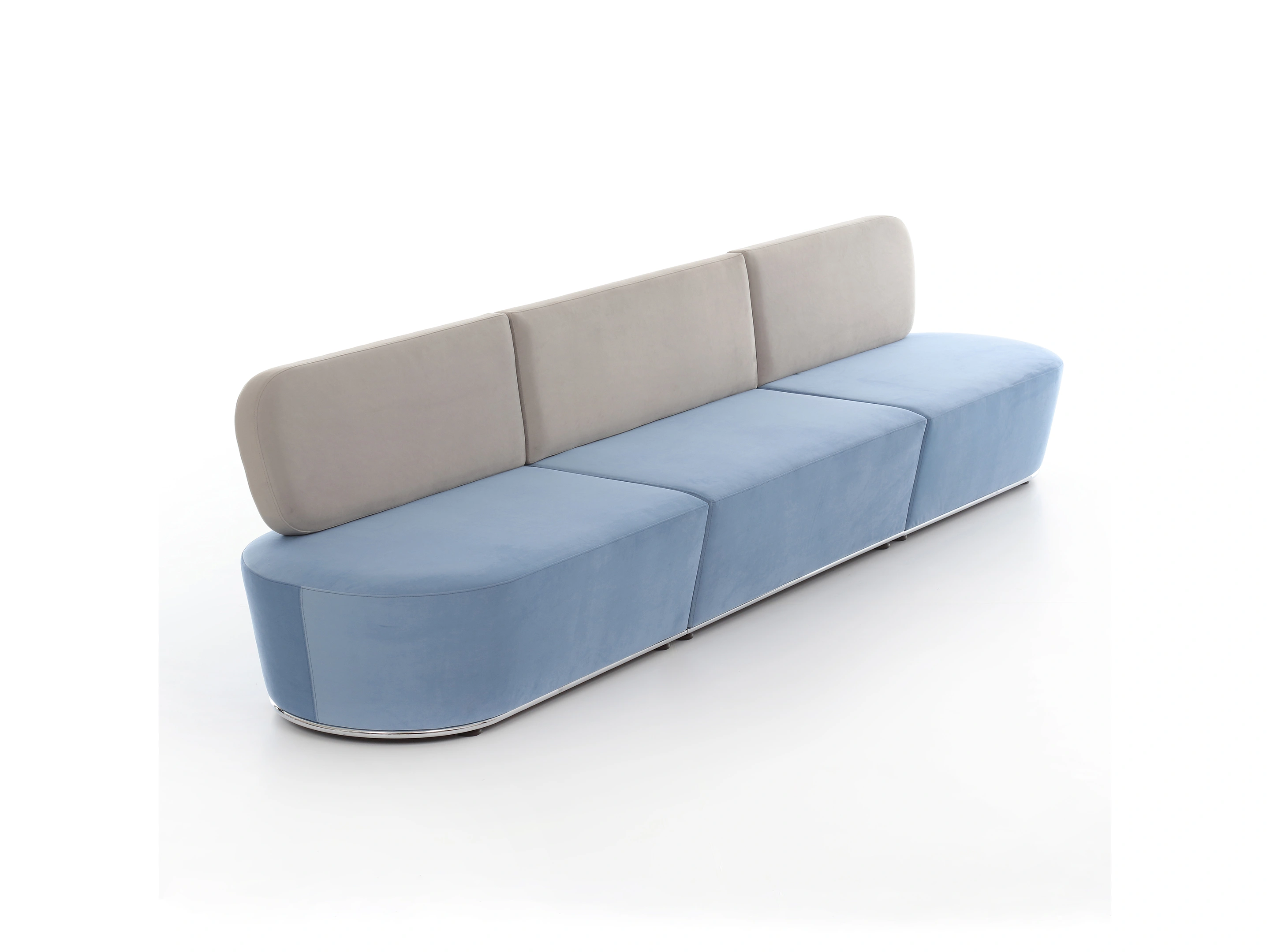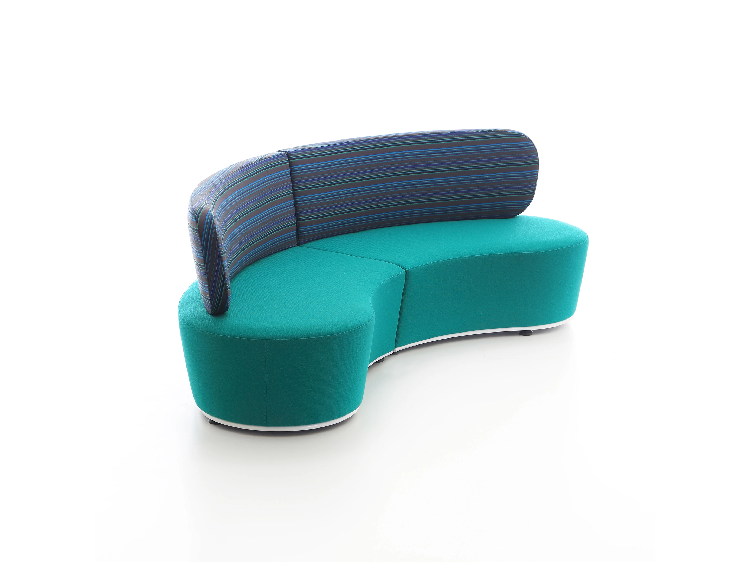 Volledig gestoffeerd modulair zitelement, zowel links als rechts koppelbaar. Vorm: hol