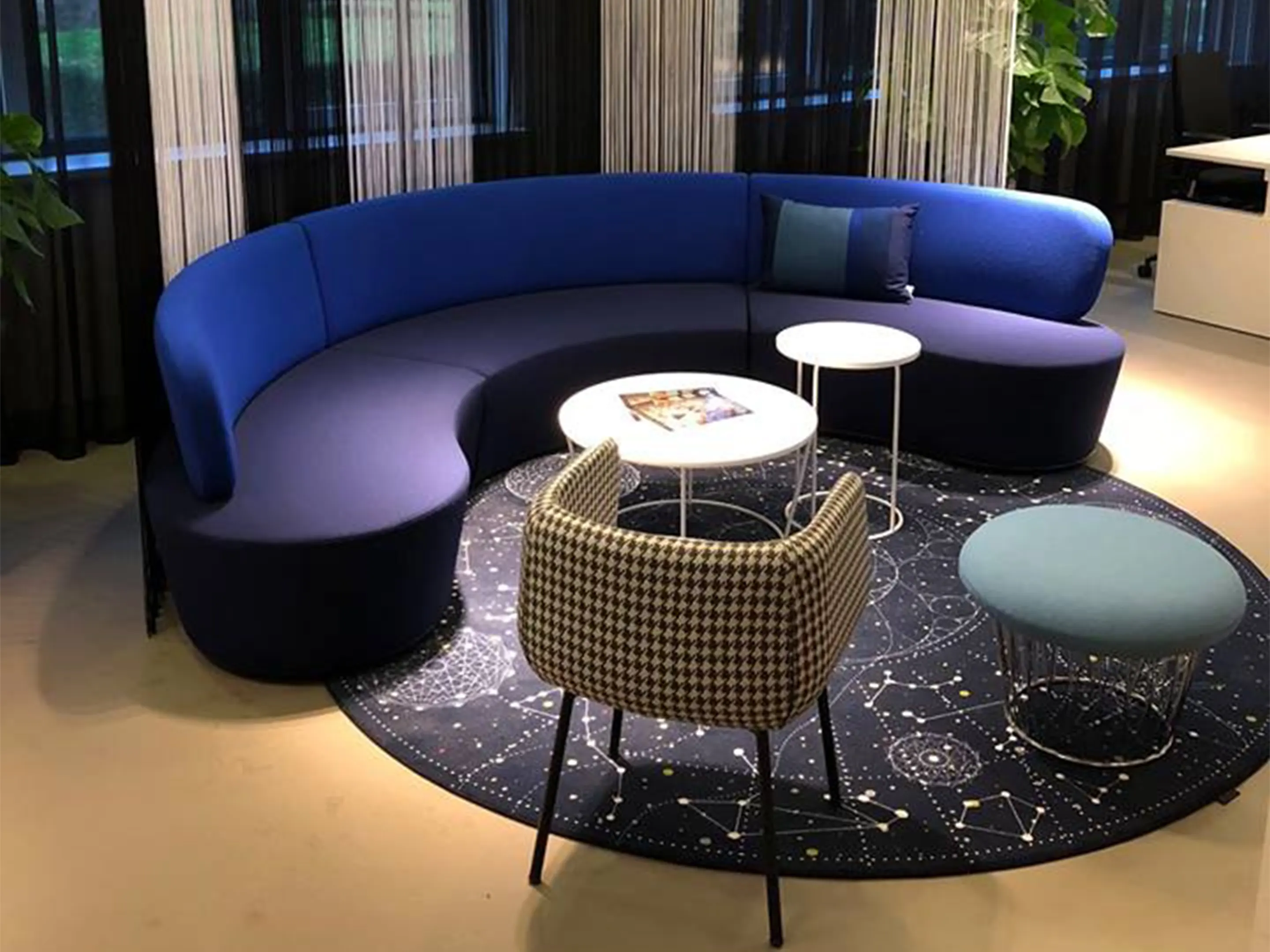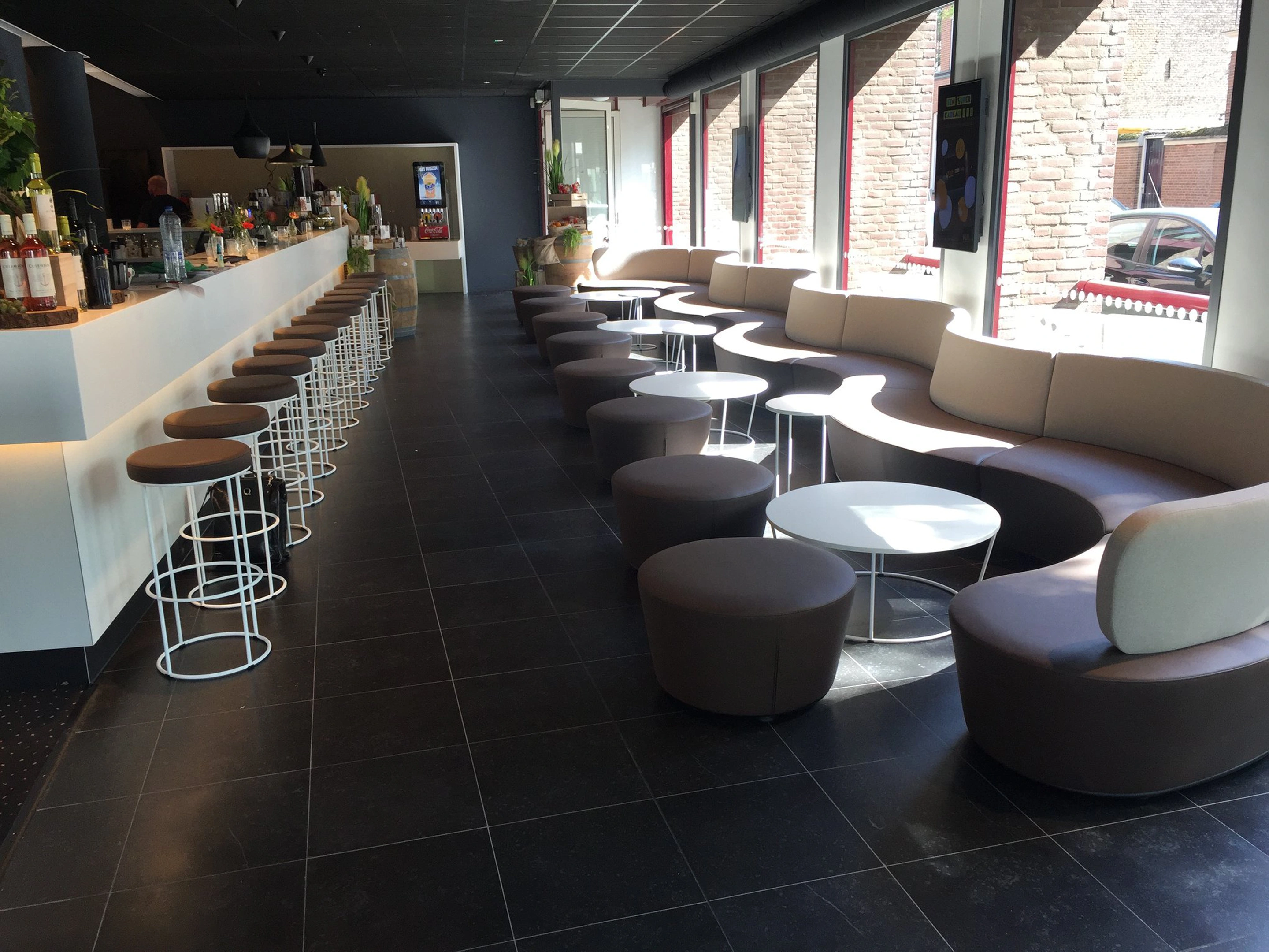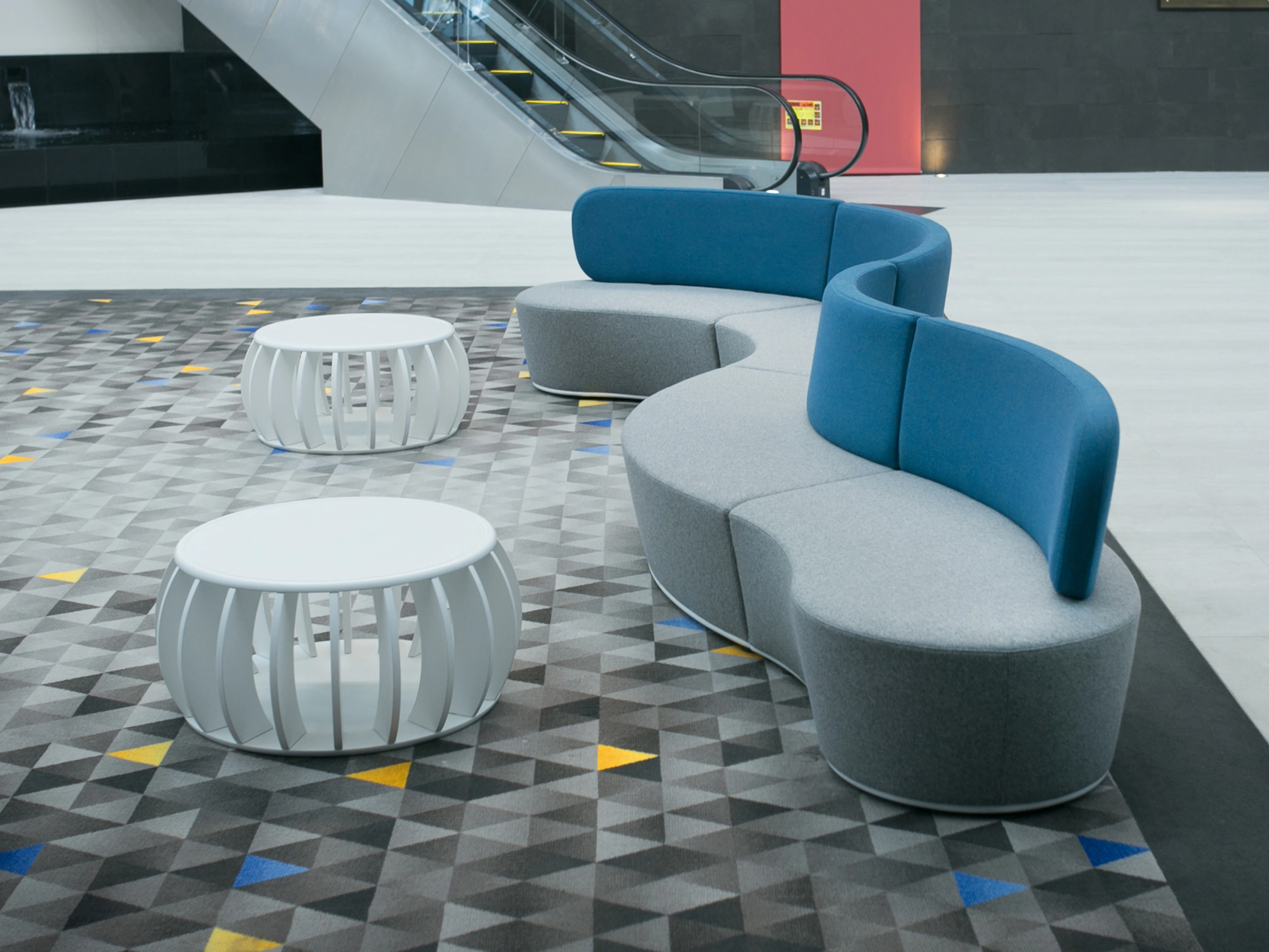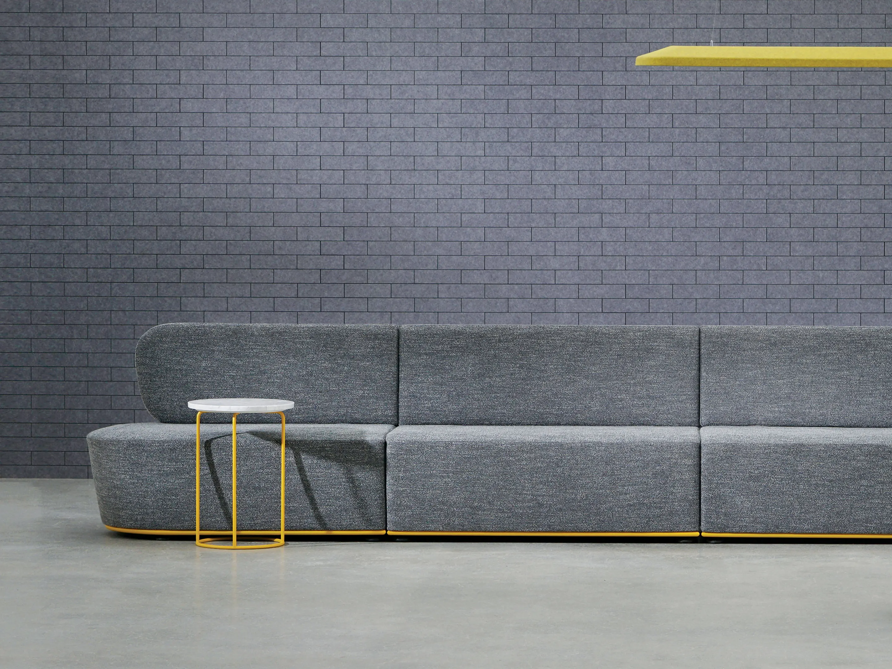 Volledig gestoffeerd modulair zitelement, zowel links als rechts koppelbaar. Vorm: hol