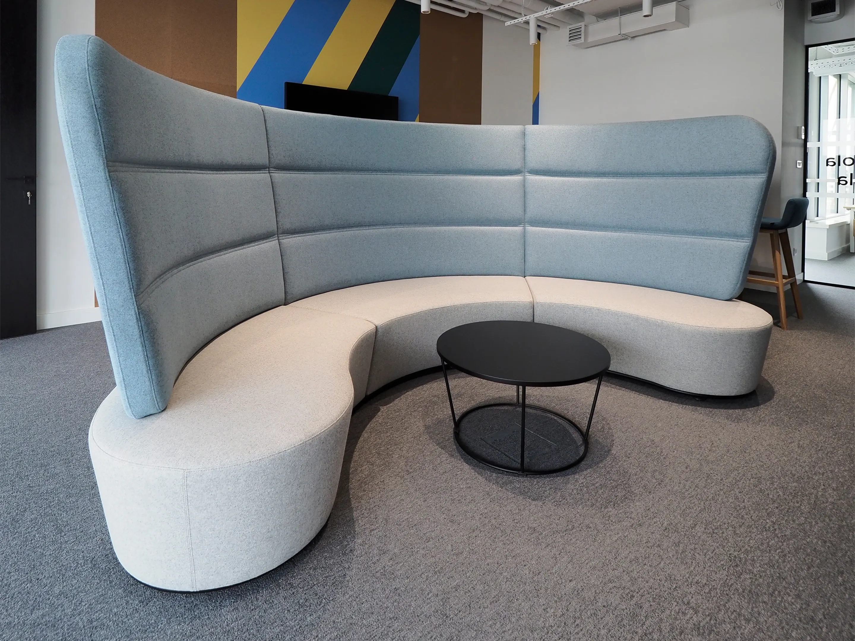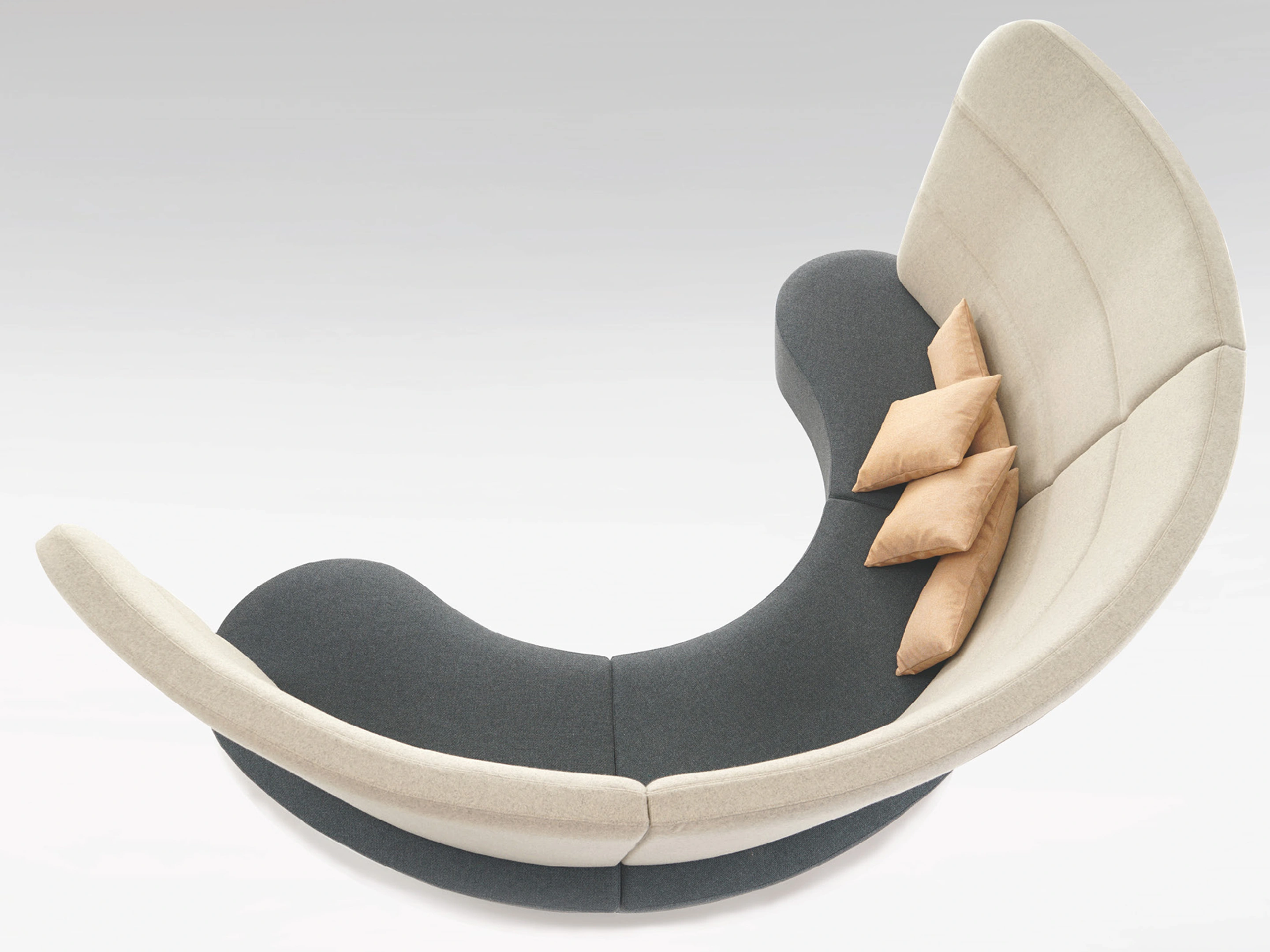 Volledig gestoffeerd modulair zitelement, zowel links als rechts koppelbaar. Vorm: bol