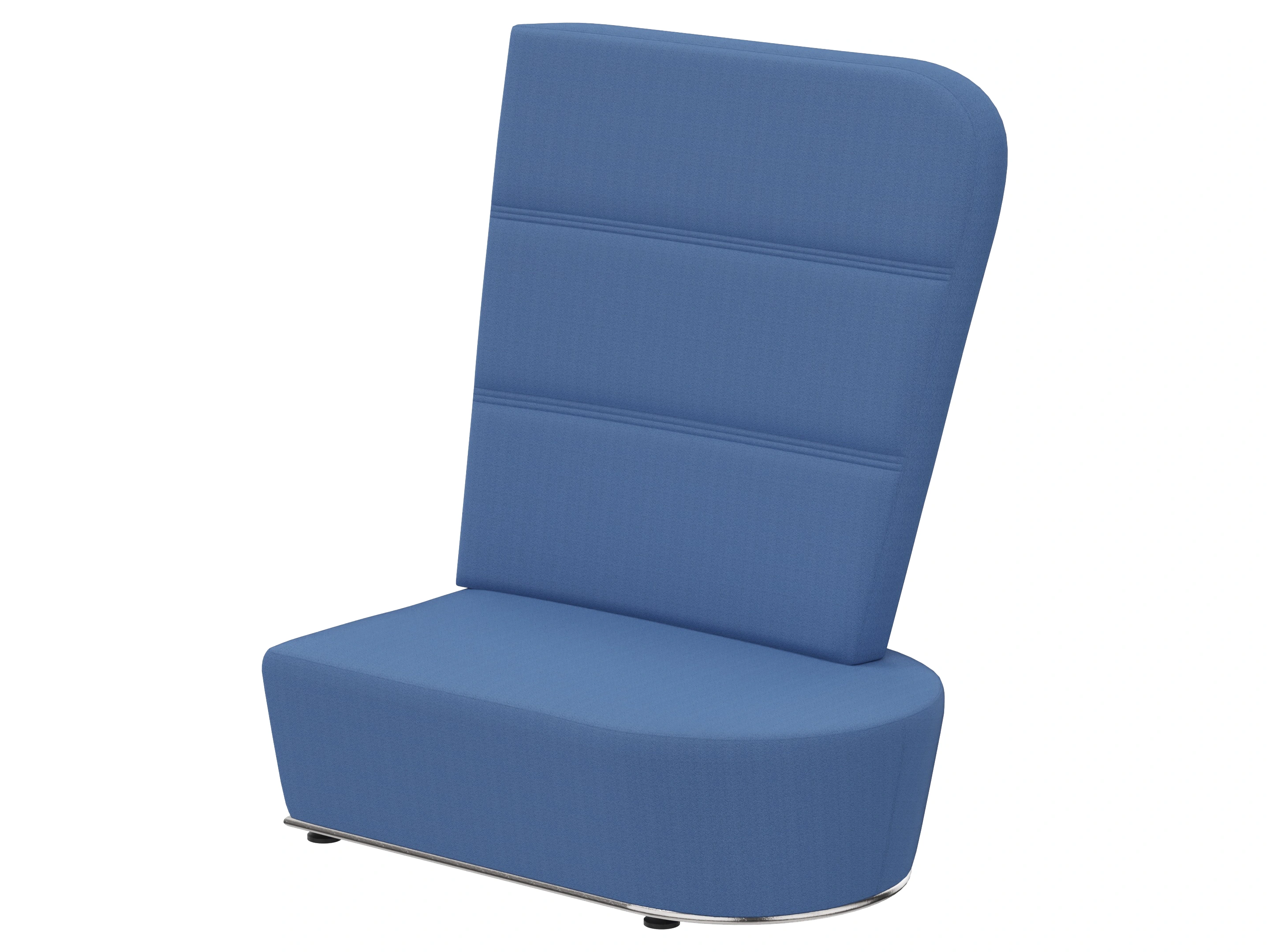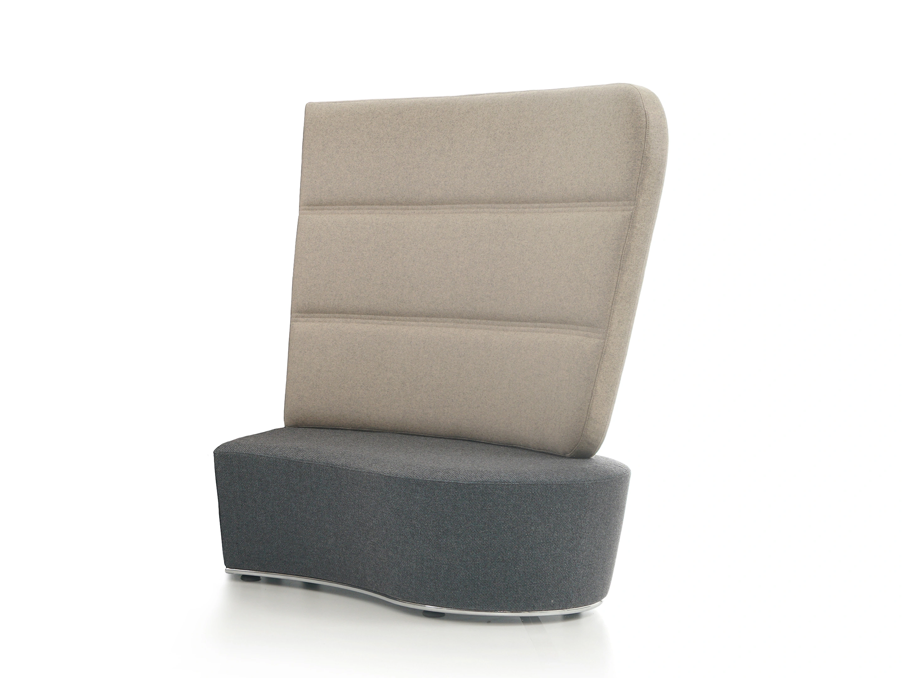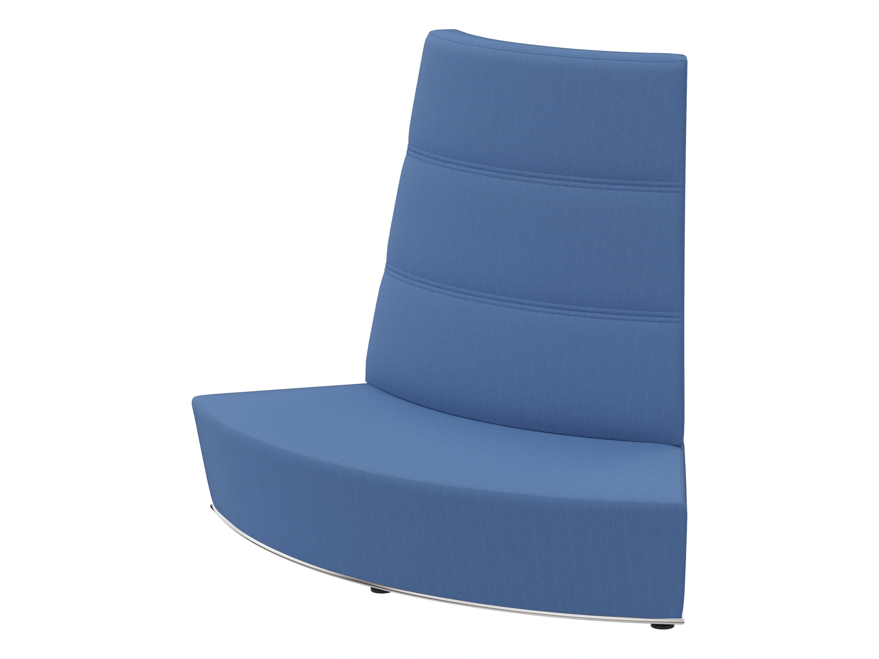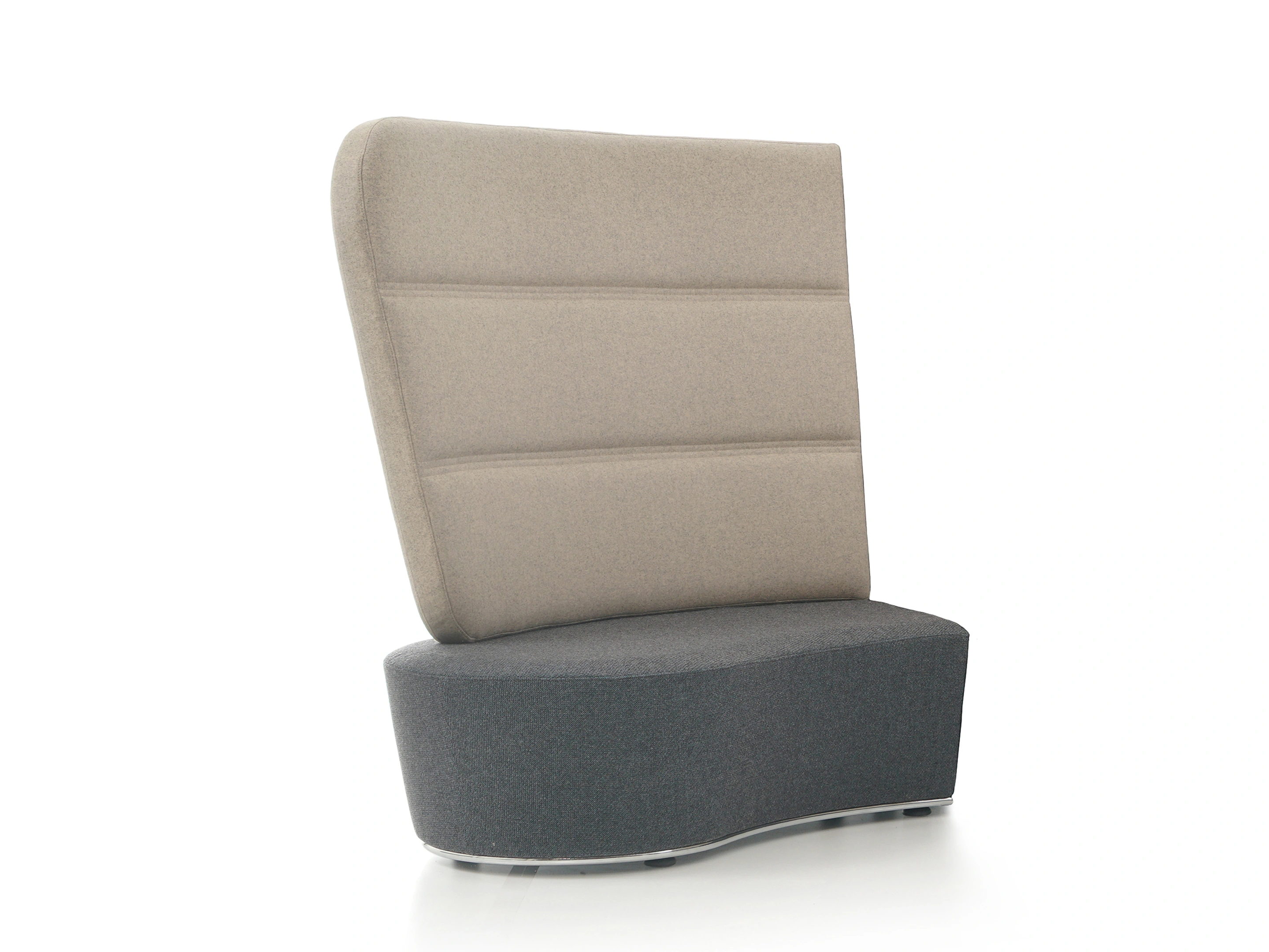 Volledig gestoffeerd modulair zitelement met hoge rug, waarvan rechts koppelbaar (vanaf zittende positie) is en links gesloten. Vorm: hol