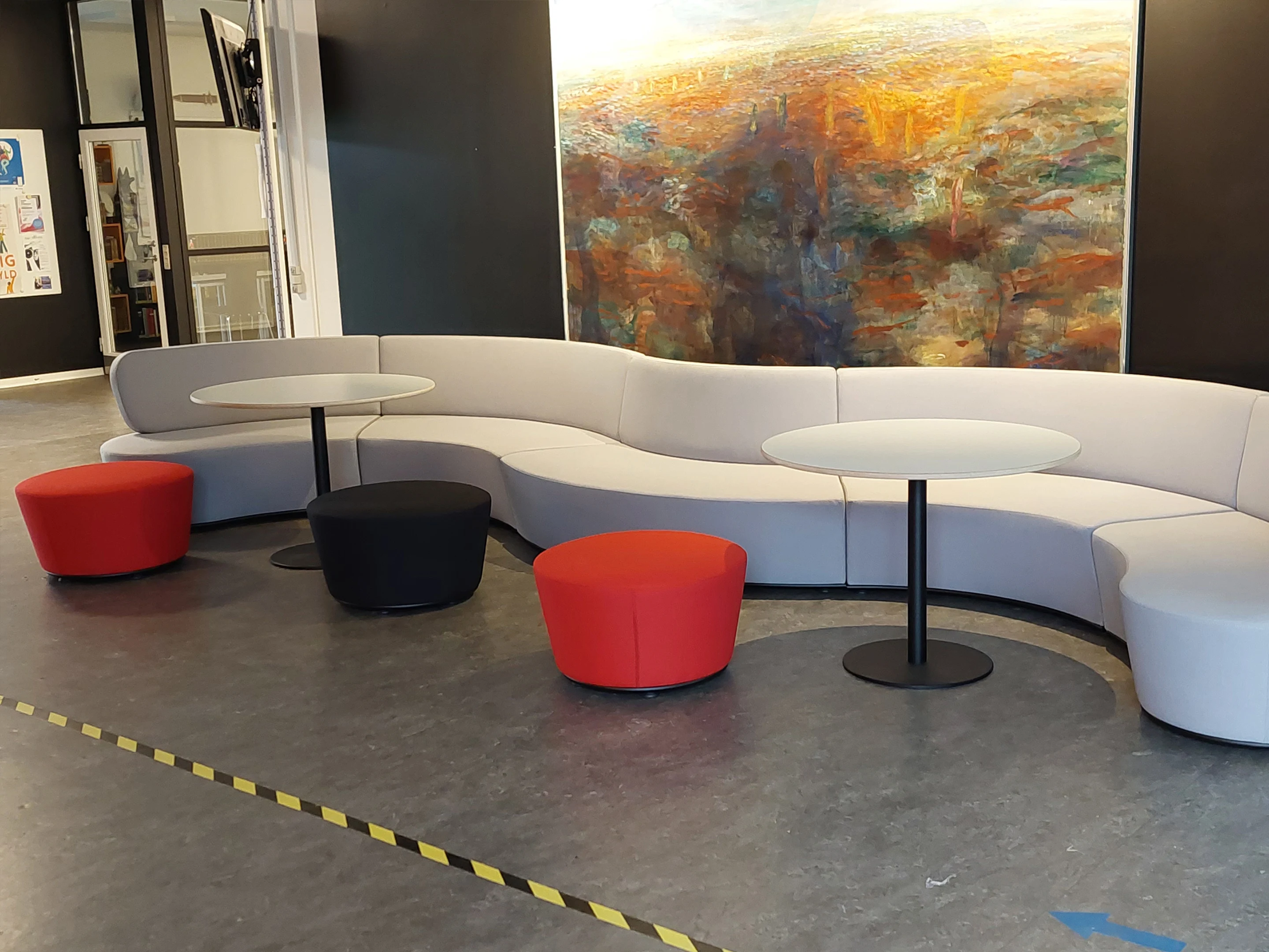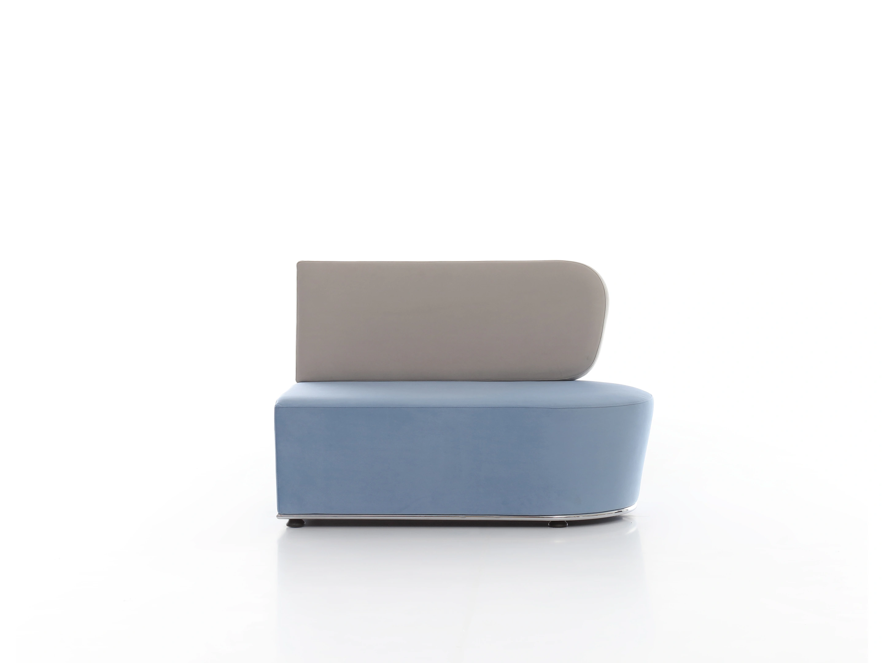 Volledig gestoffeerd modulair zitelement, waarvan rechts koppelbaar is en links gesloten (vanuit zittende positie). Vorm: hol
