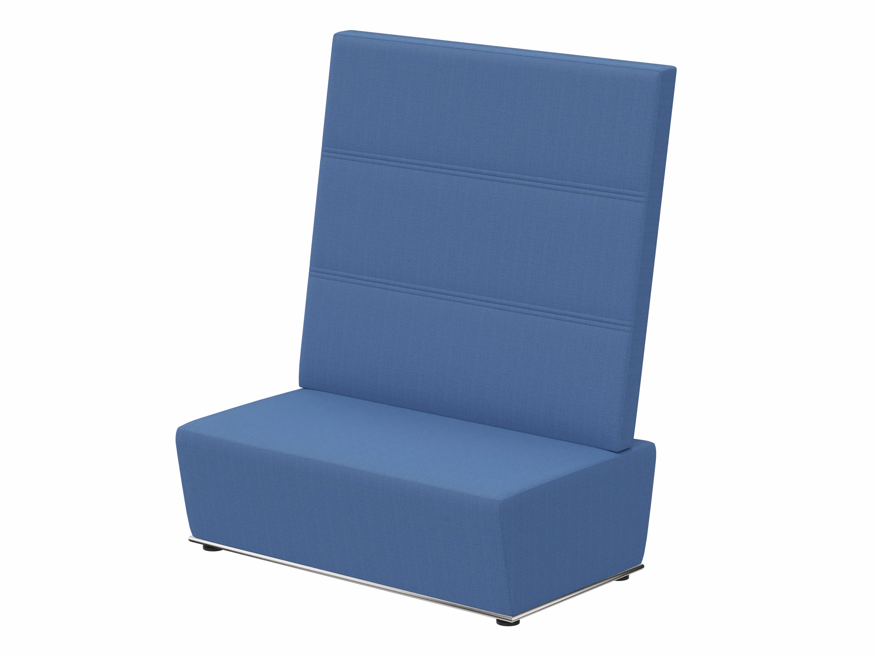 Volledig gestoffeerd modulair zitelement met hoge rug waarvan links koppelbaar is en rechts gesloten (vanuit zittende positie). Vorm recht