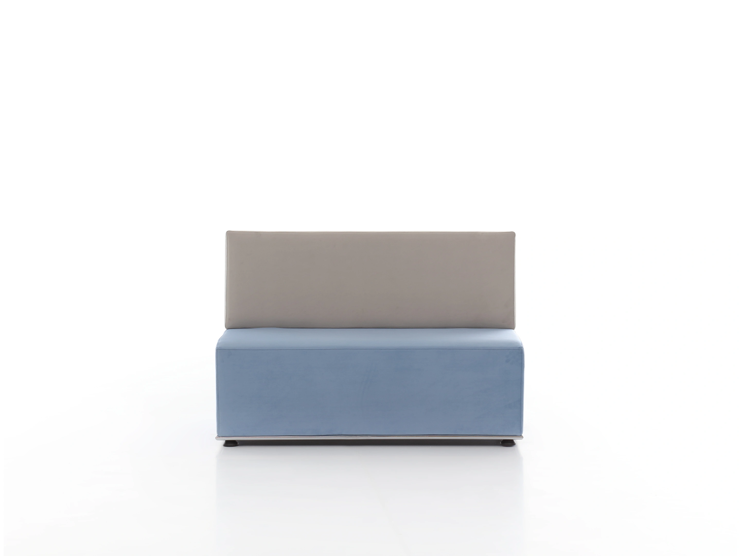 Volledig gestoffeerd modulair zitelement met hoge rug, zowel links als rechts koppelbaar. Vorm: recht