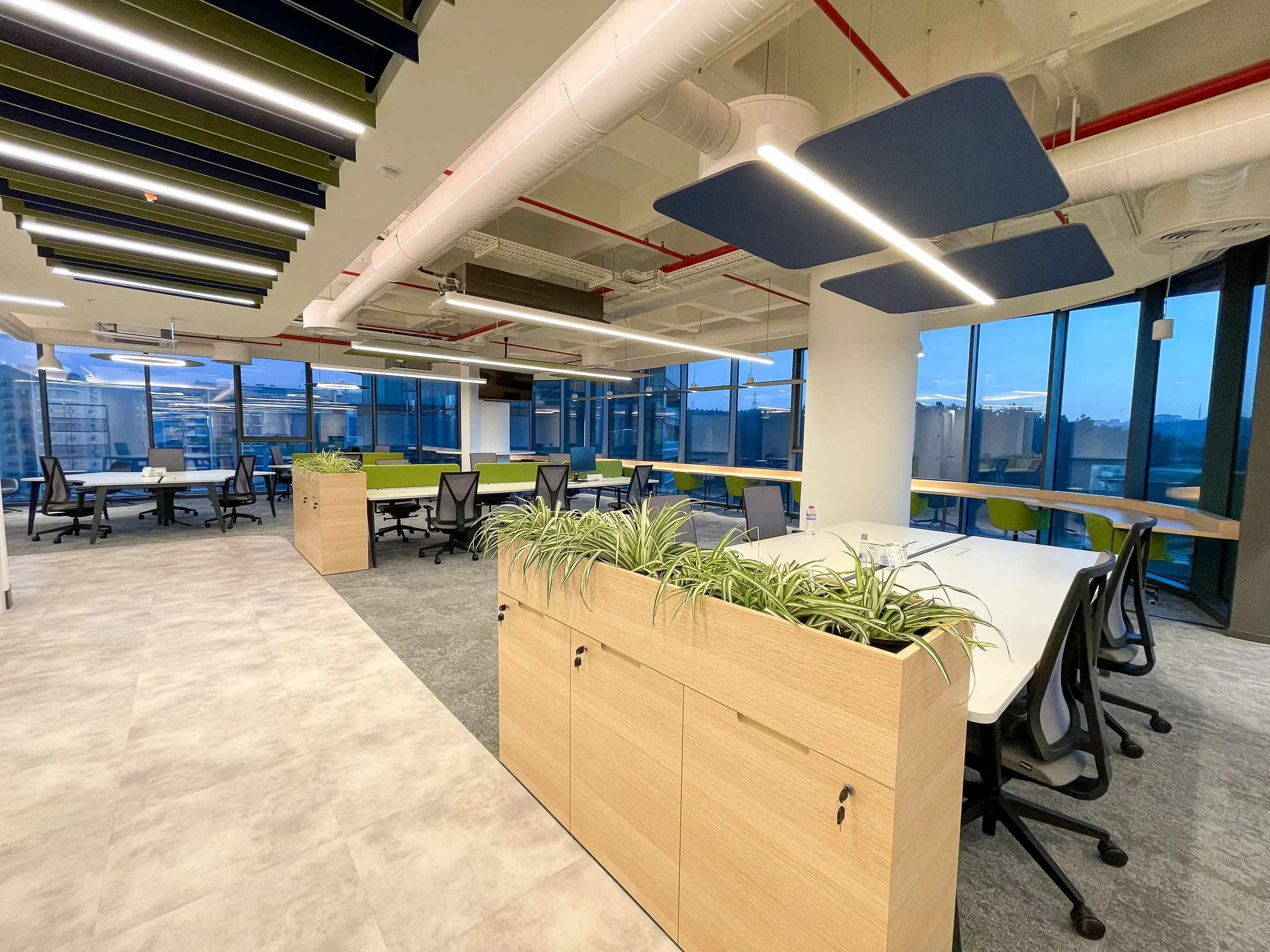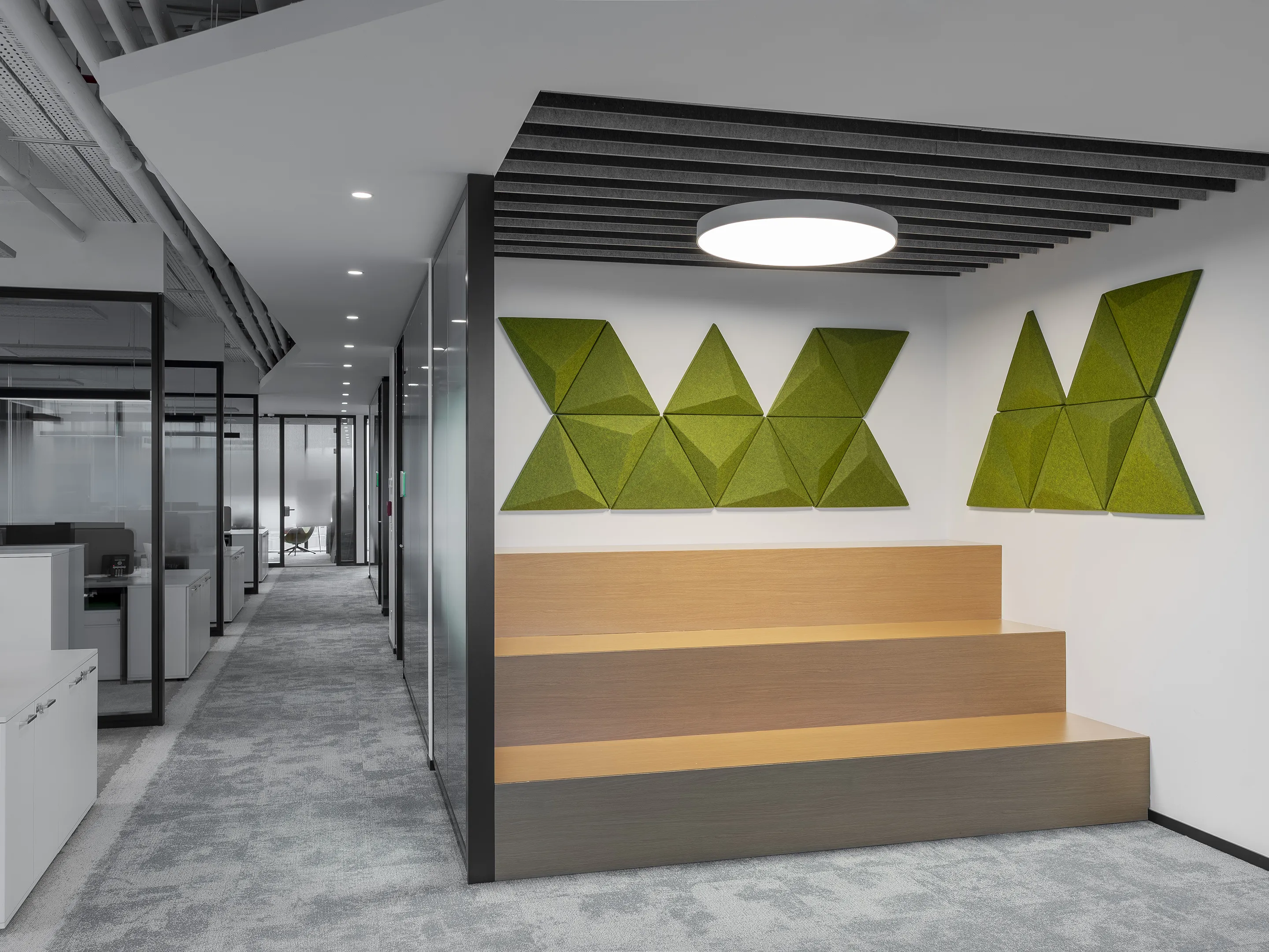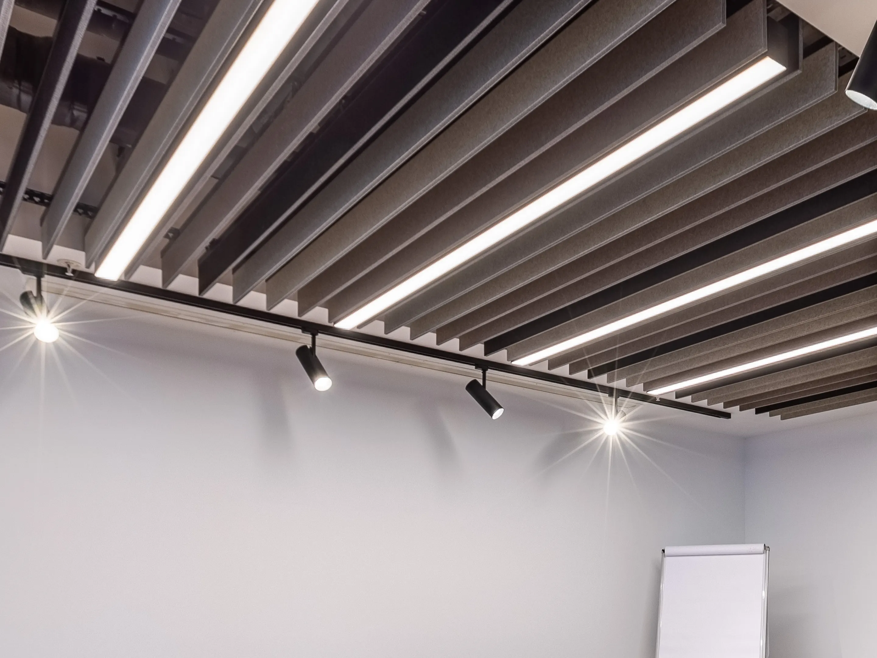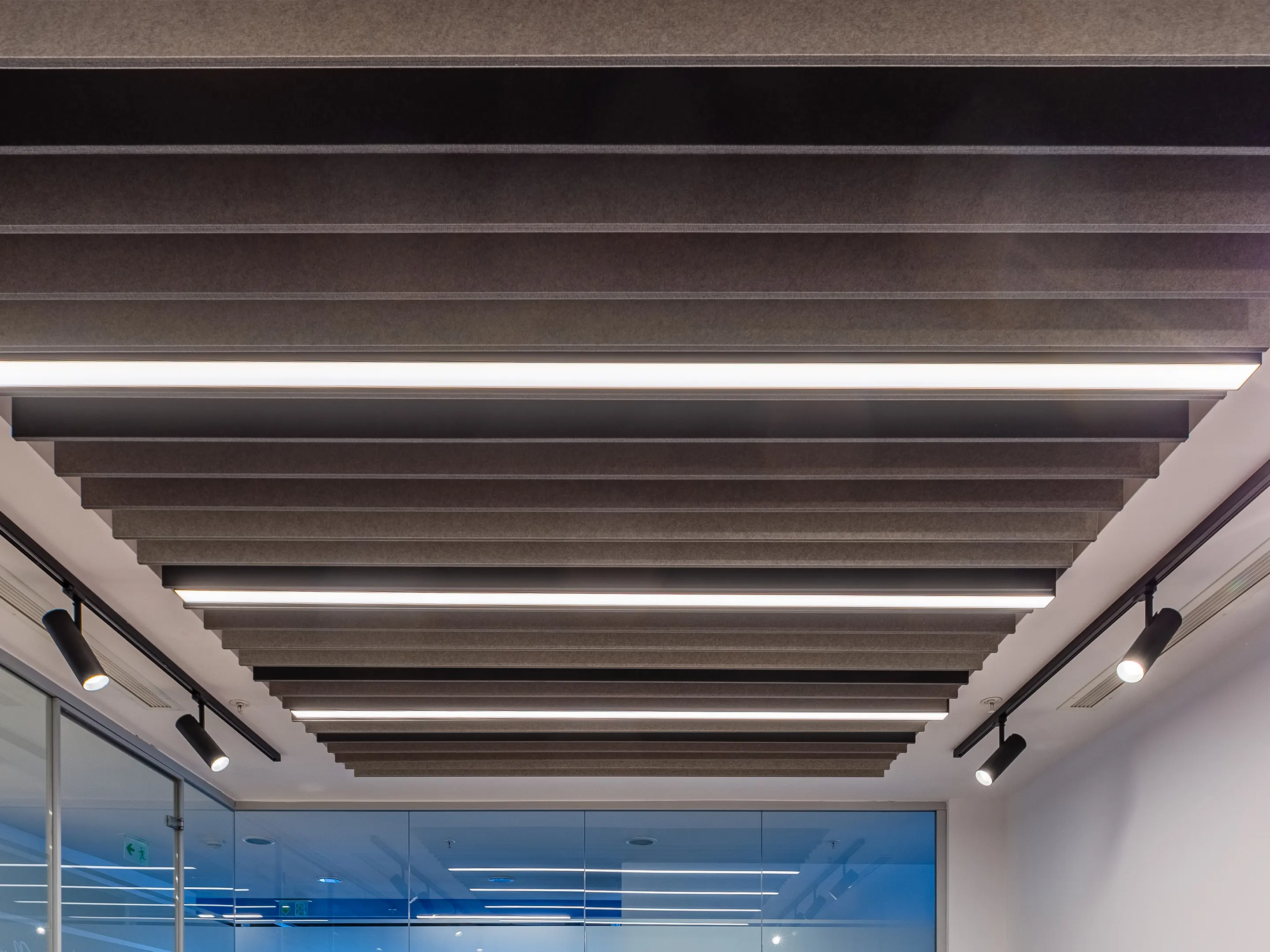 Een akoestisch open baffle systeem bestaande uit een frame met rechte baffles voor montage aan het plafond en een Sabins Waarde van 2,08 (m2). Incl. frame, ophangset en installatiehandleiding.