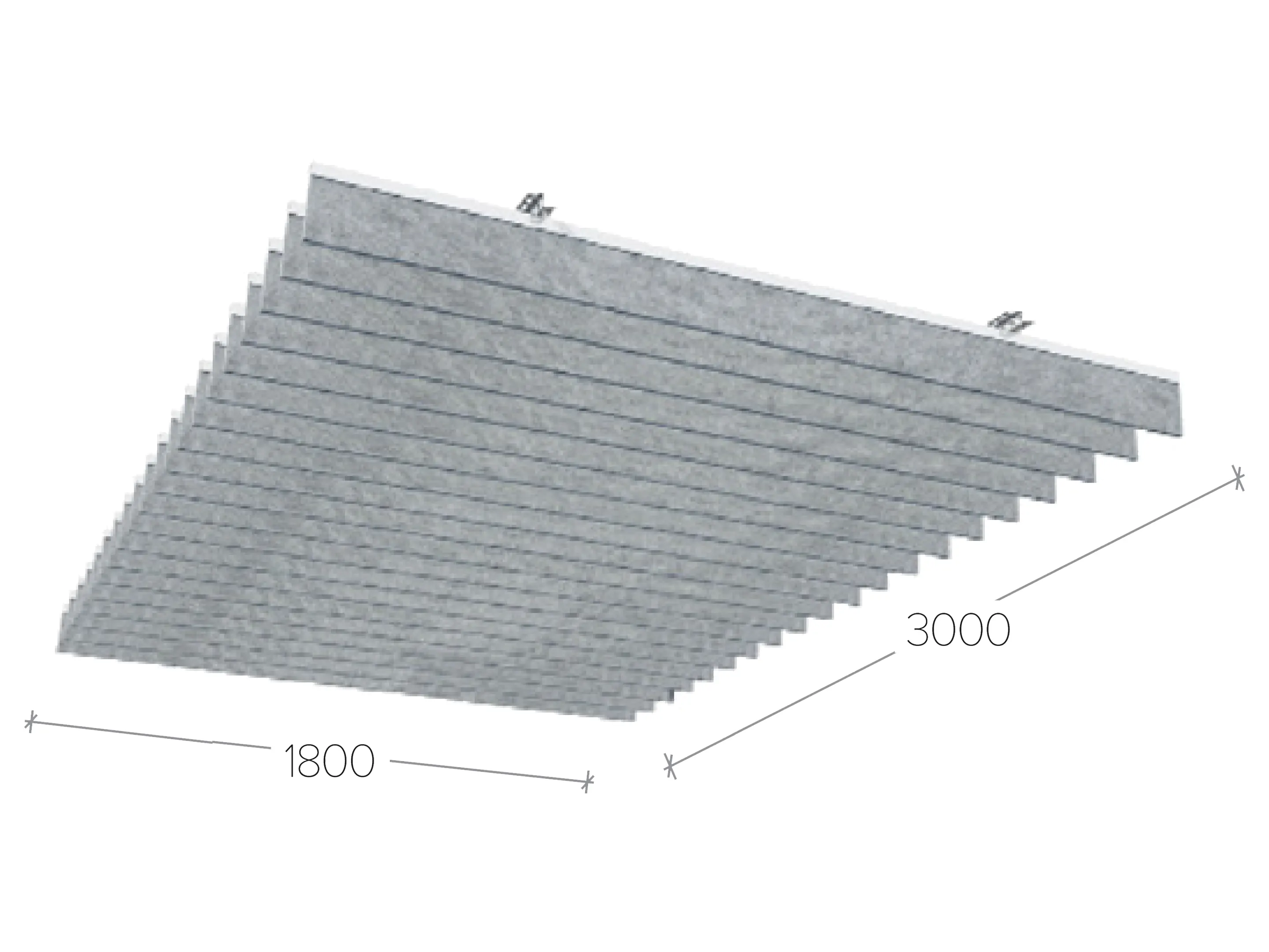 Plativity Baffle Straight - 180x300x10cm (bxdxh), Ruimte tussen baffles 12cm