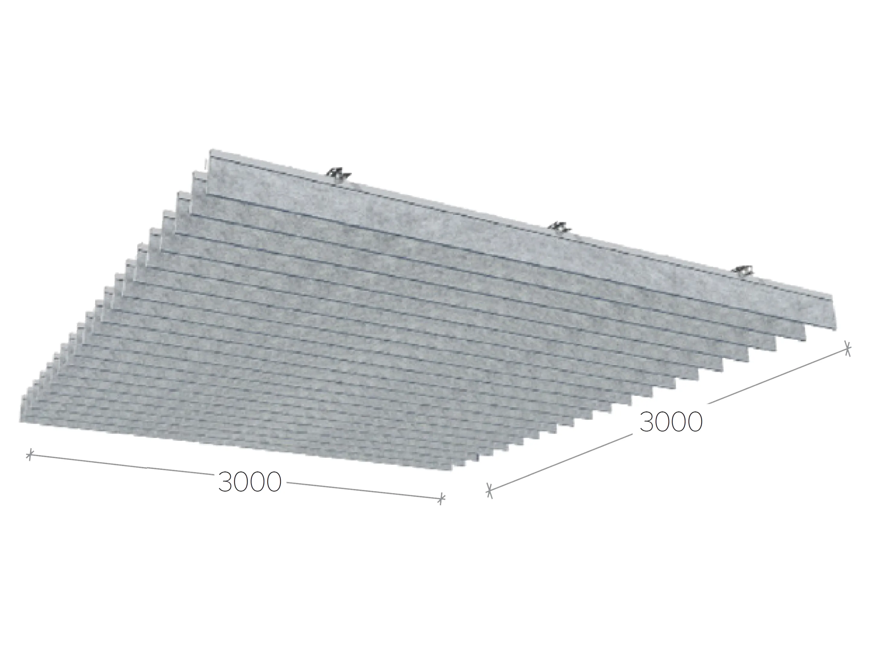 Plativity Baffle Straight - 300x300x10cm (bxdxh), Ruimte tussen baffles 12cm